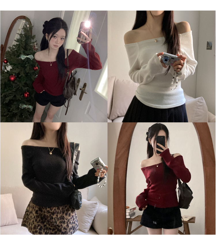 STS74277 수아 포근 오프숄더 기모 티셔츠