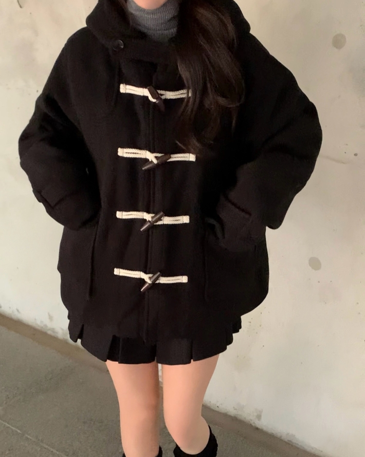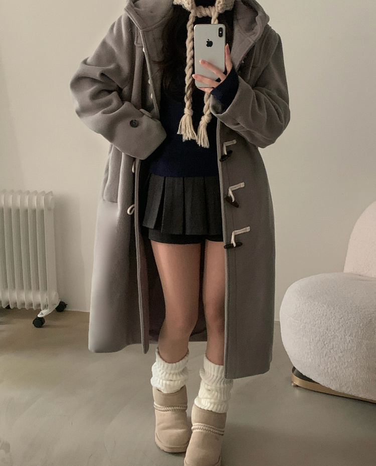 SJP19774 덤버 후드 떡볶이 더블 하이넥 롱숏 코트
