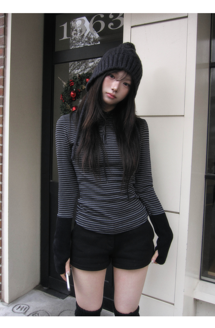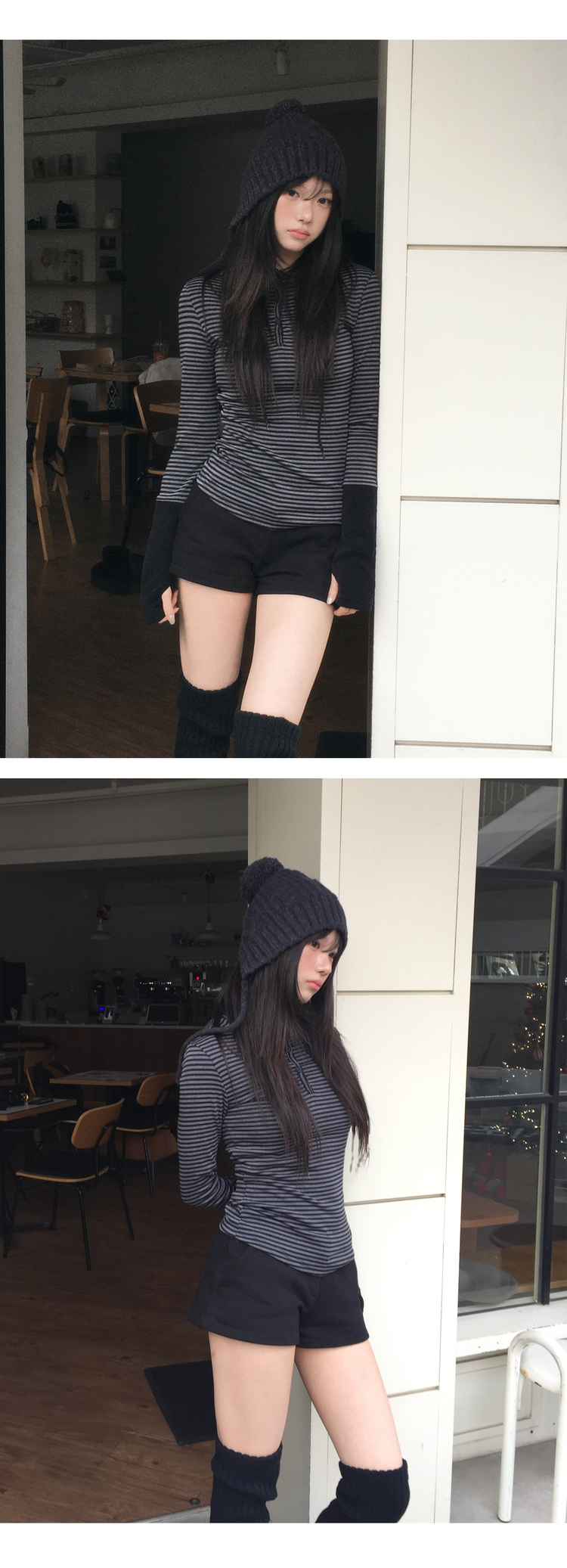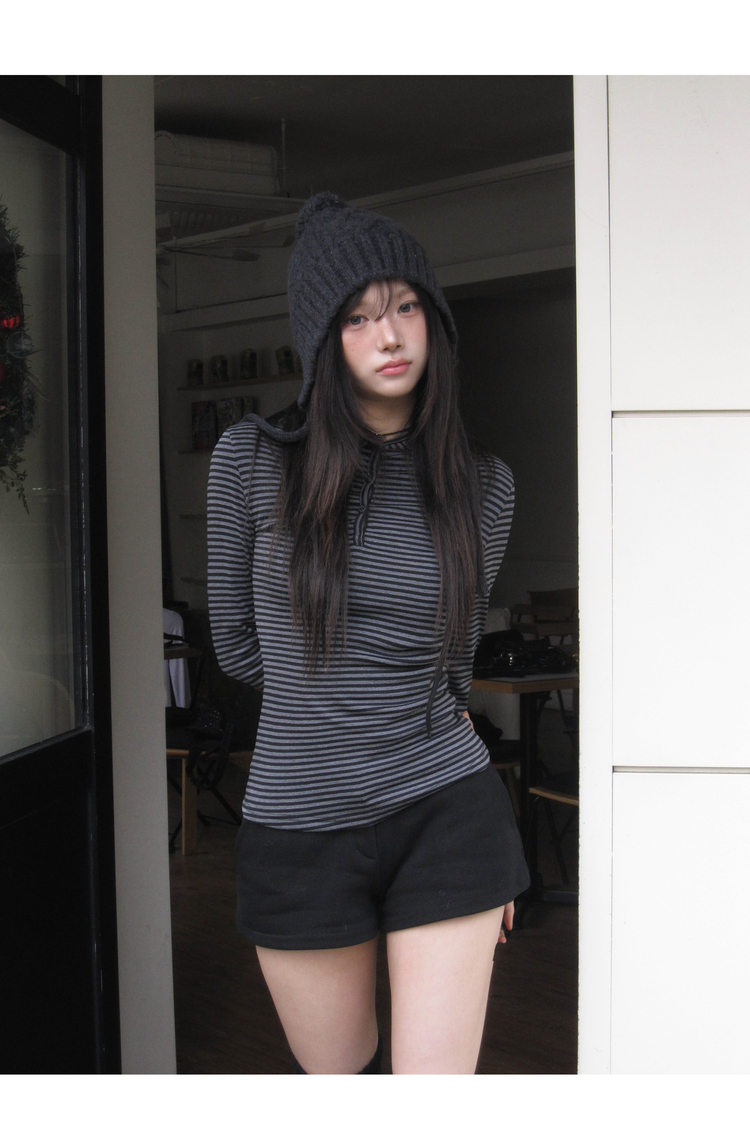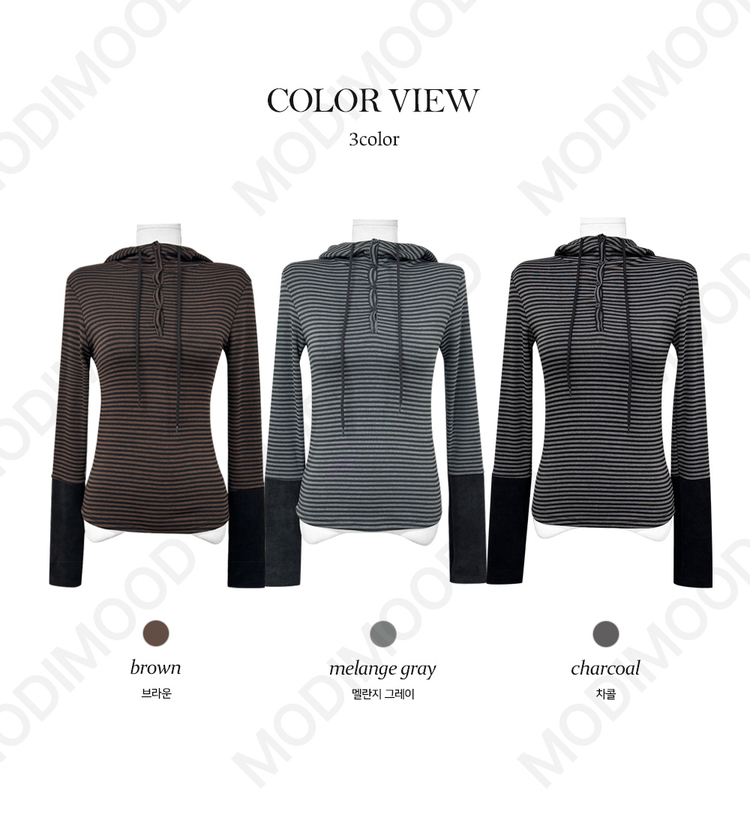 STS74267 톡톡 슬림핏 단가라 후드 티셔츠
