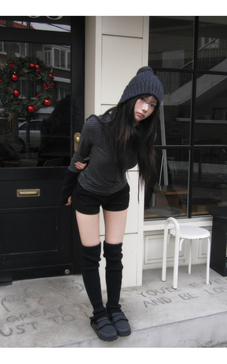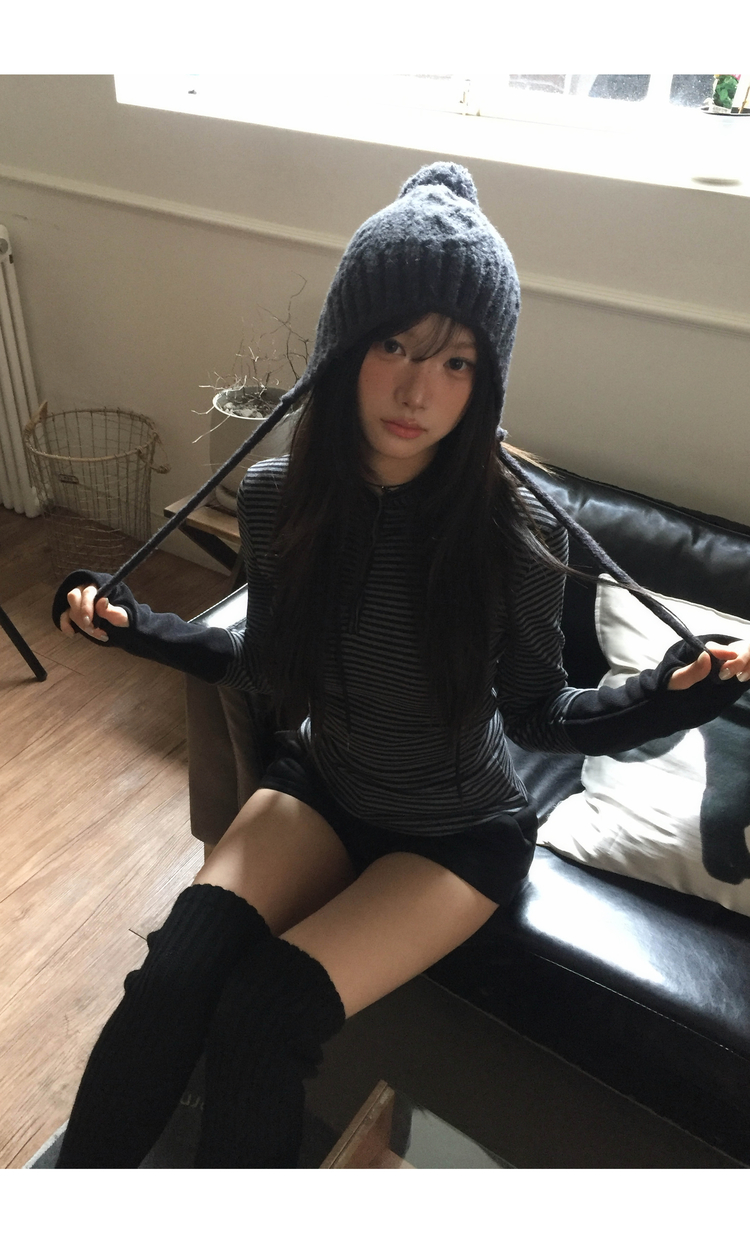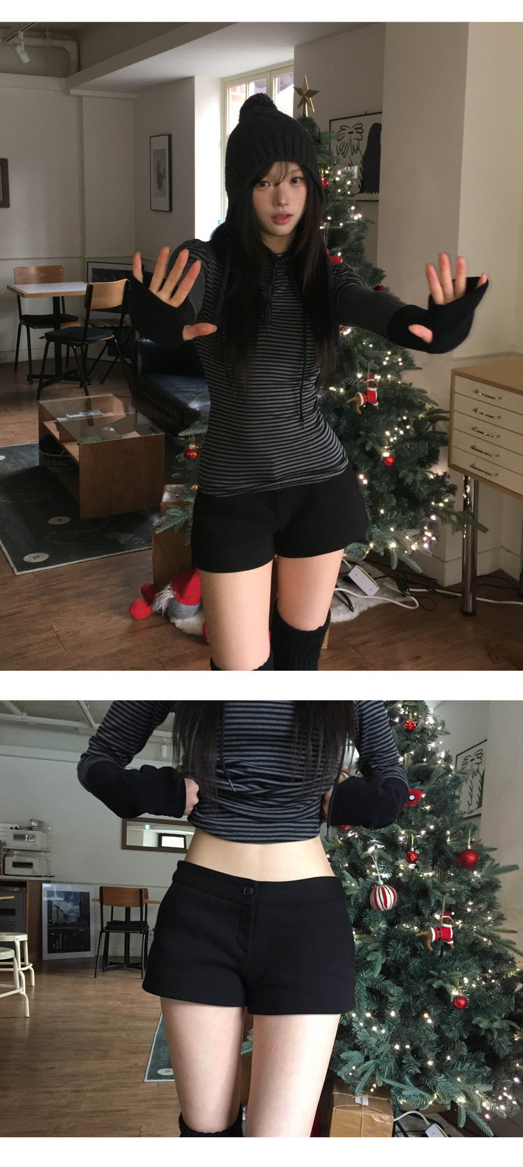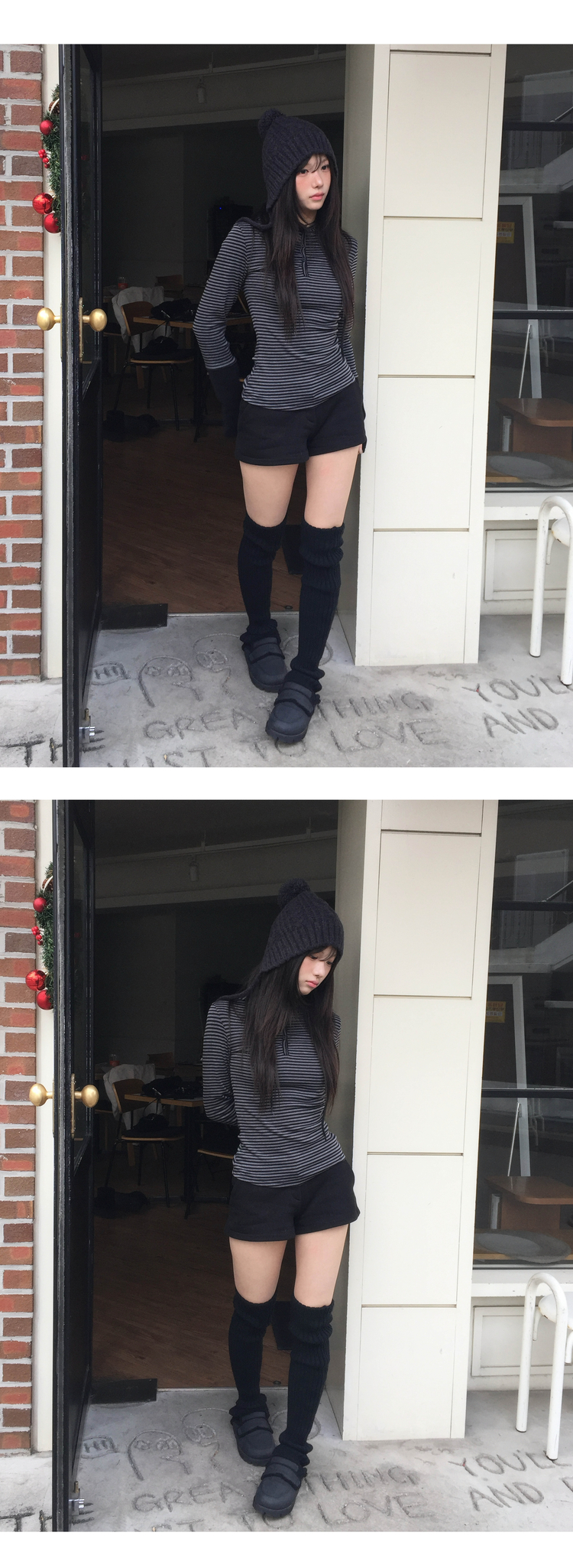 STS74267 톡톡 슬림핏 단가라 후드 티셔츠