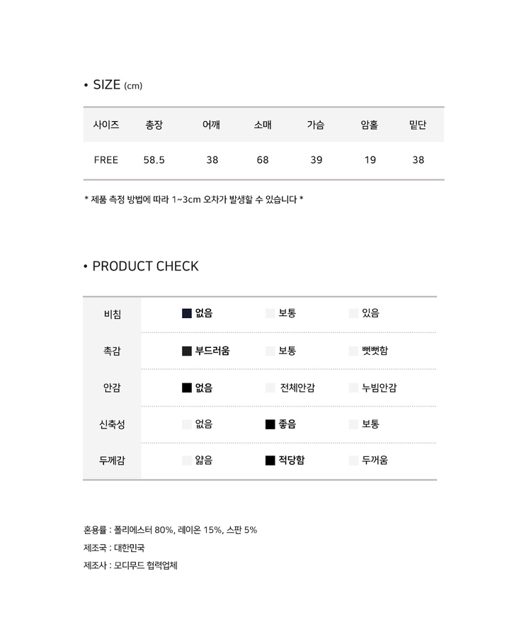 | 素材 | 폴리(80%), 레이온(15%), 스판(5%) |