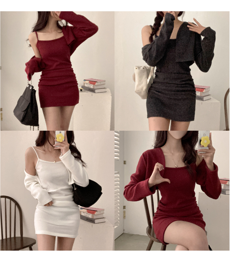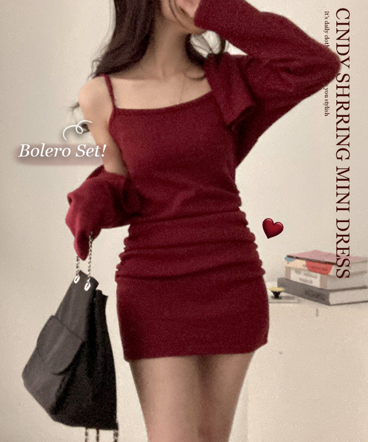 SOP30536 신디 포근 기모 나시 원피스 볼레로 가디건 투피스 세트