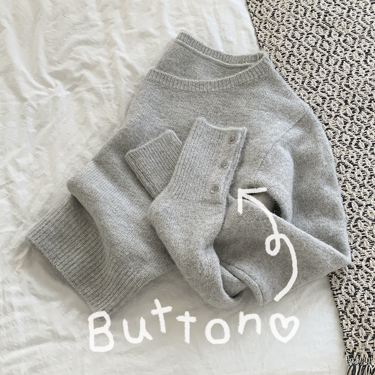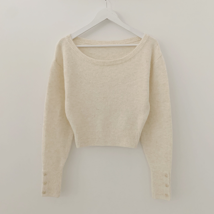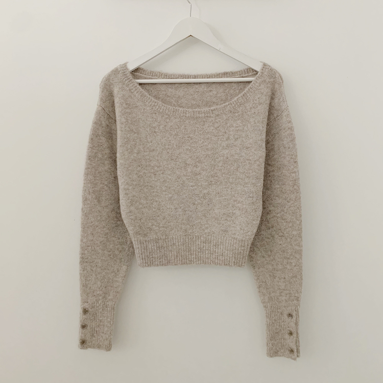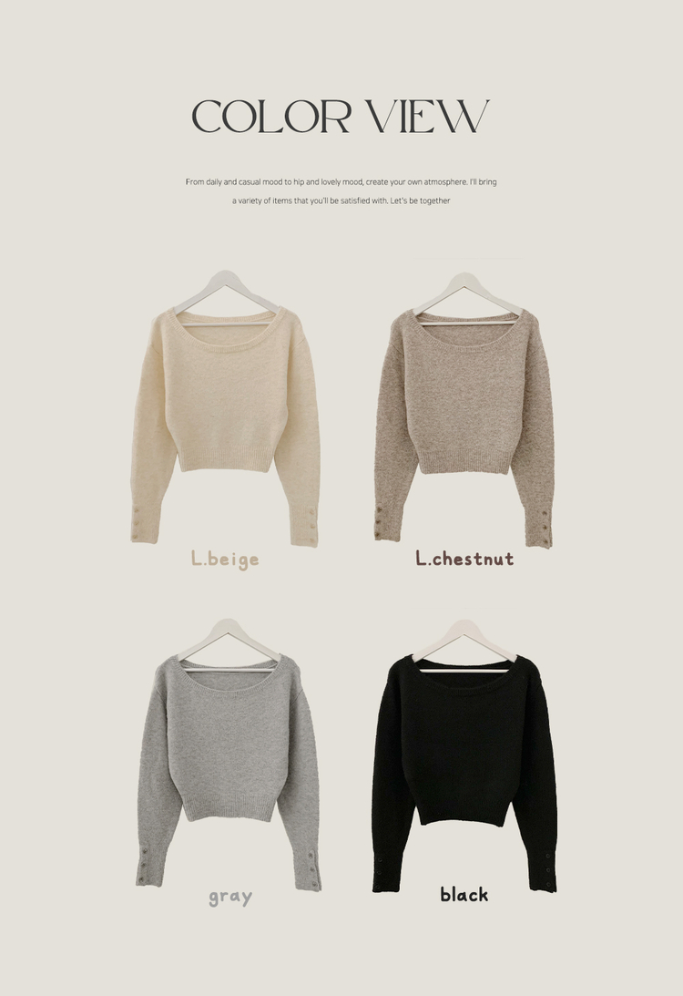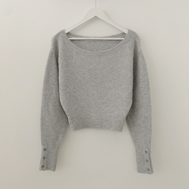 SNT34431 뽀송따뜻 연말룩 보트넥 원 오프숄더 소매 버튼 아방핏 크롭 워머니트