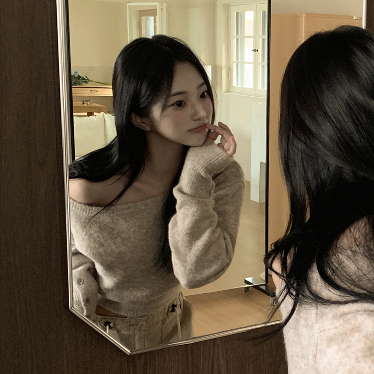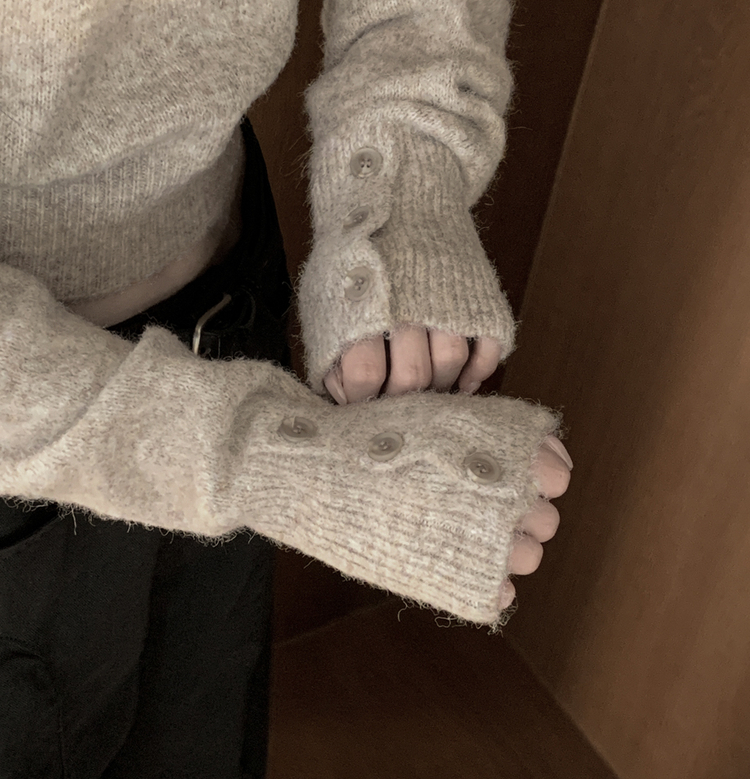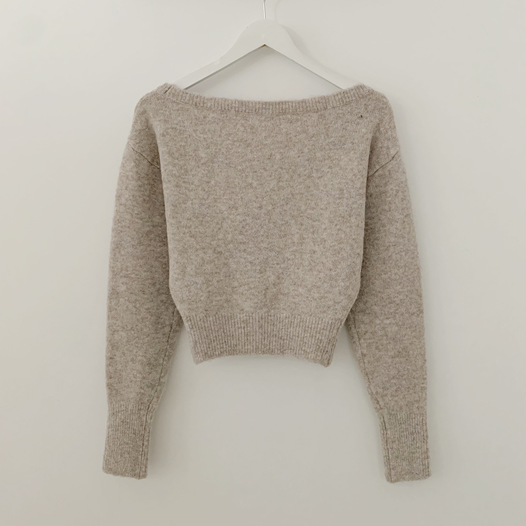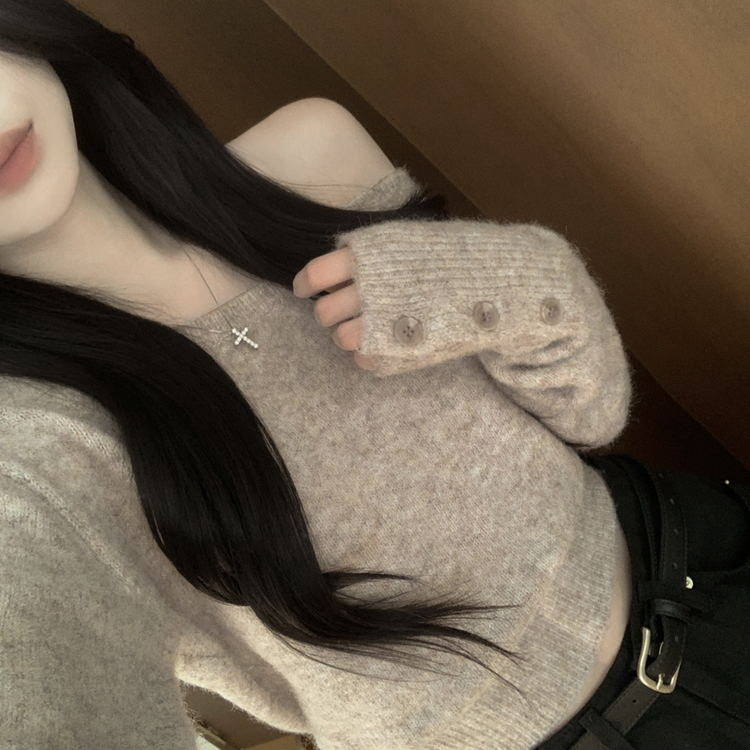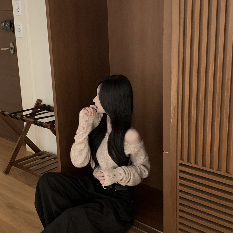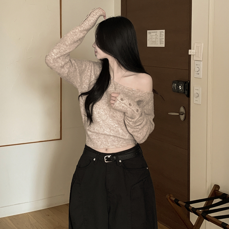 SNT34431 뽀송따뜻 연말룩 보트넥 원 오프숄더 소매 버튼 아방핏 크롭 워머니트