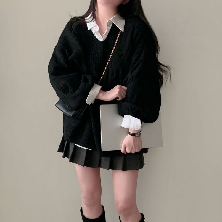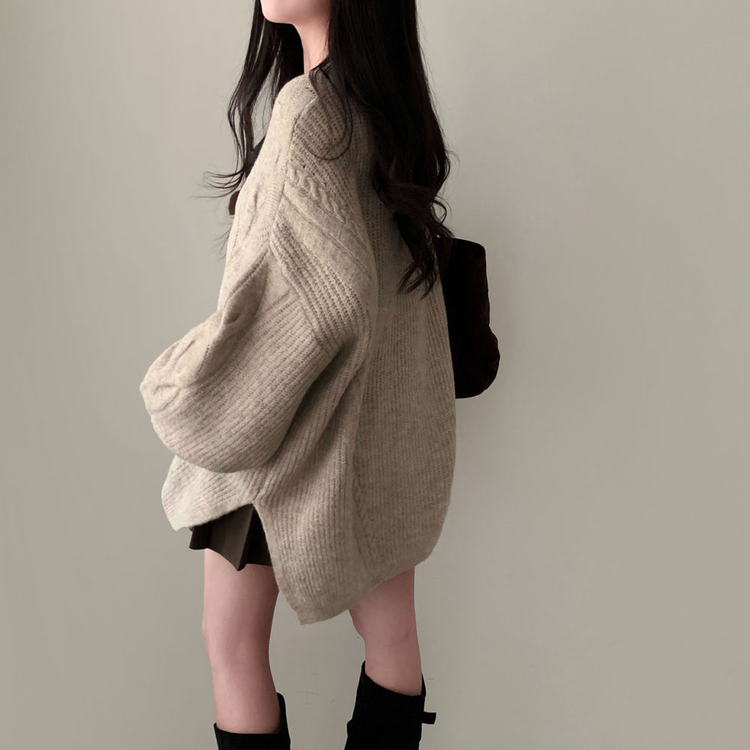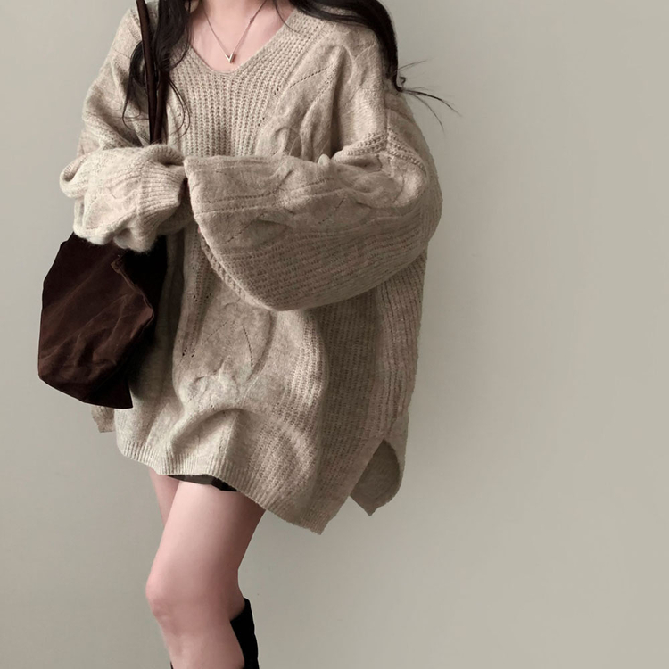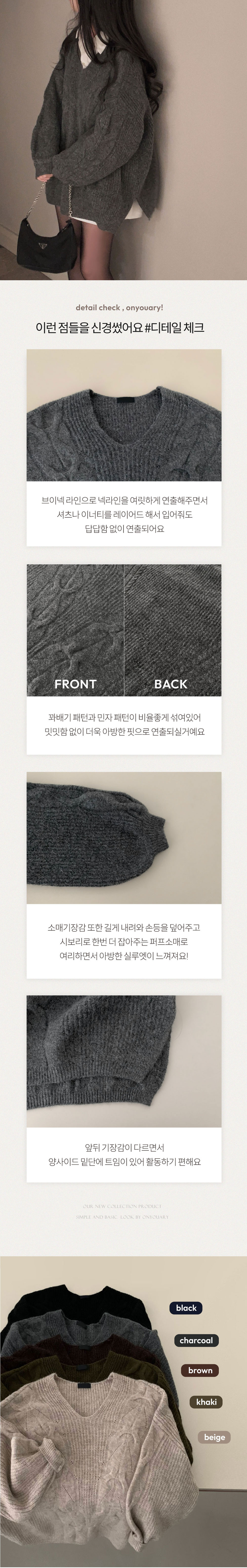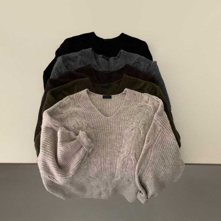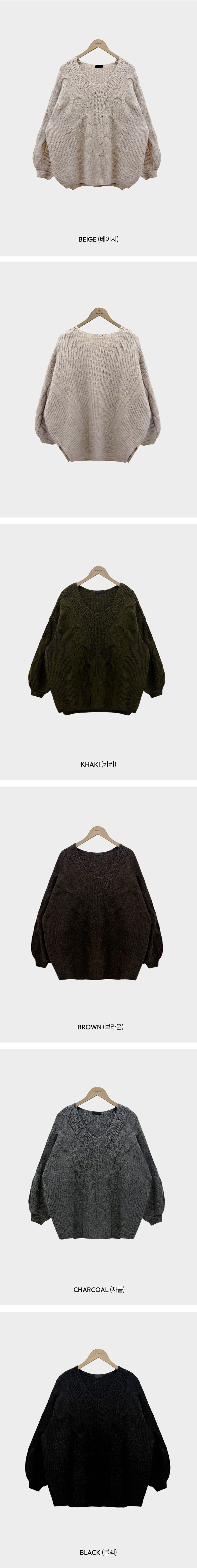 SNT34492 보호본능 자극핏여리함 플러스 꽈배기 꼬임 브이넥 오버핏 니트