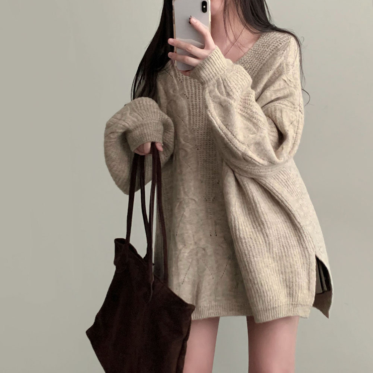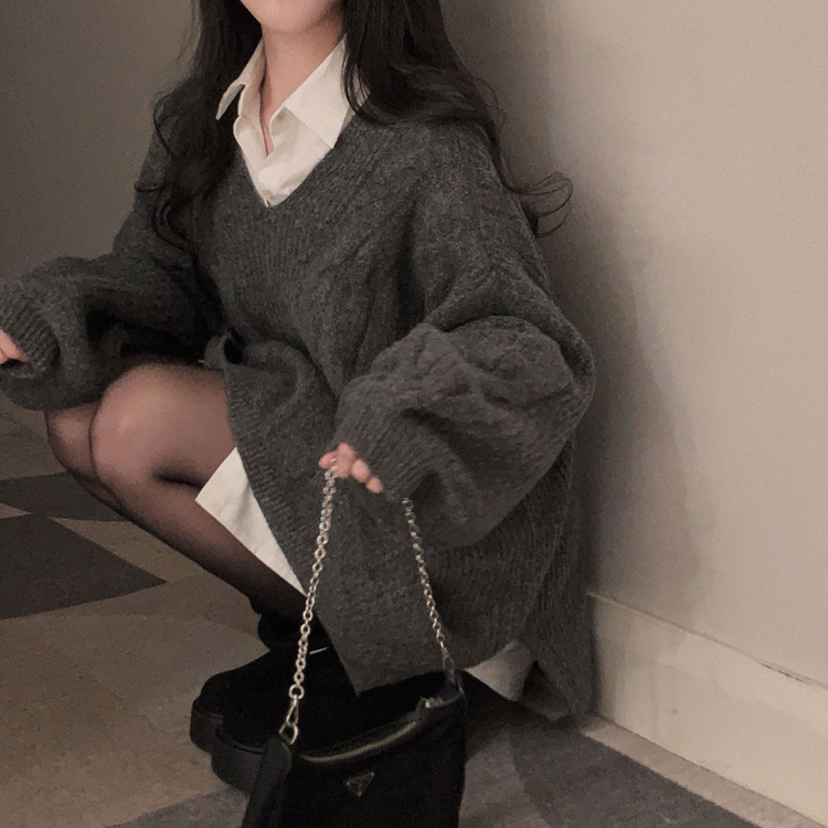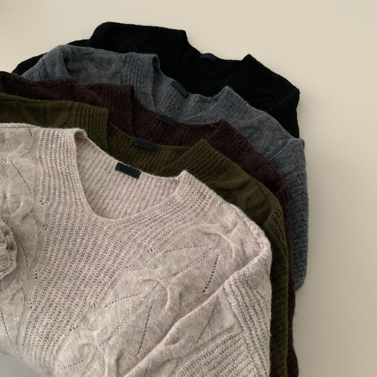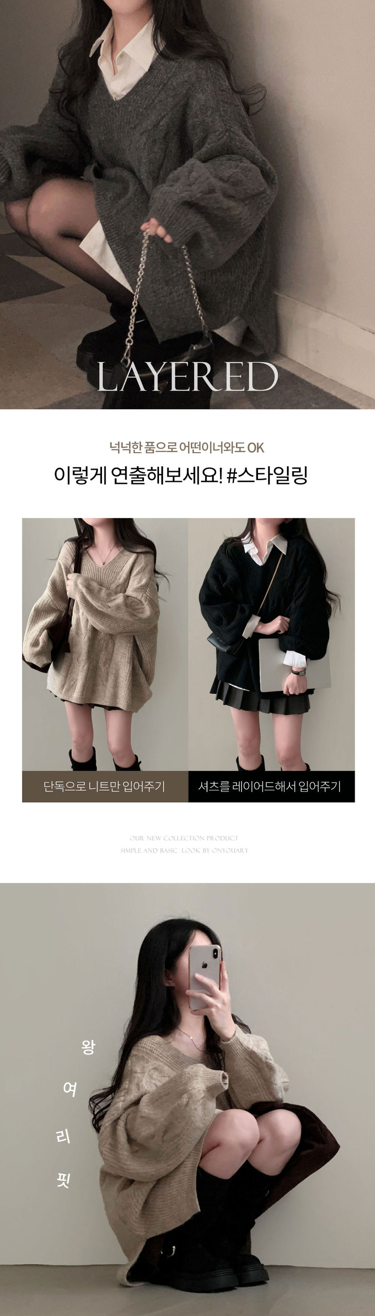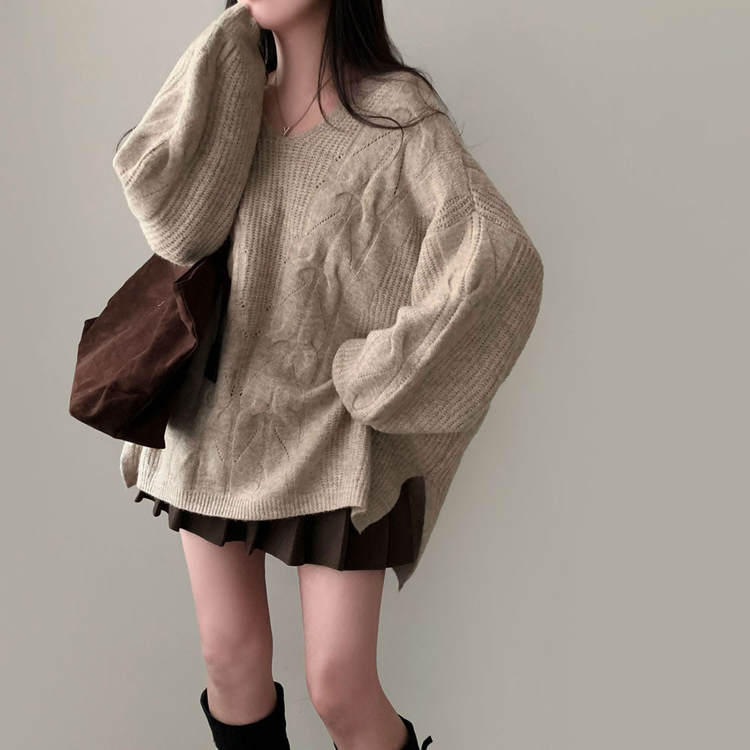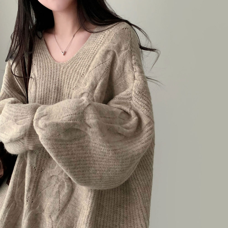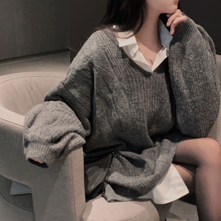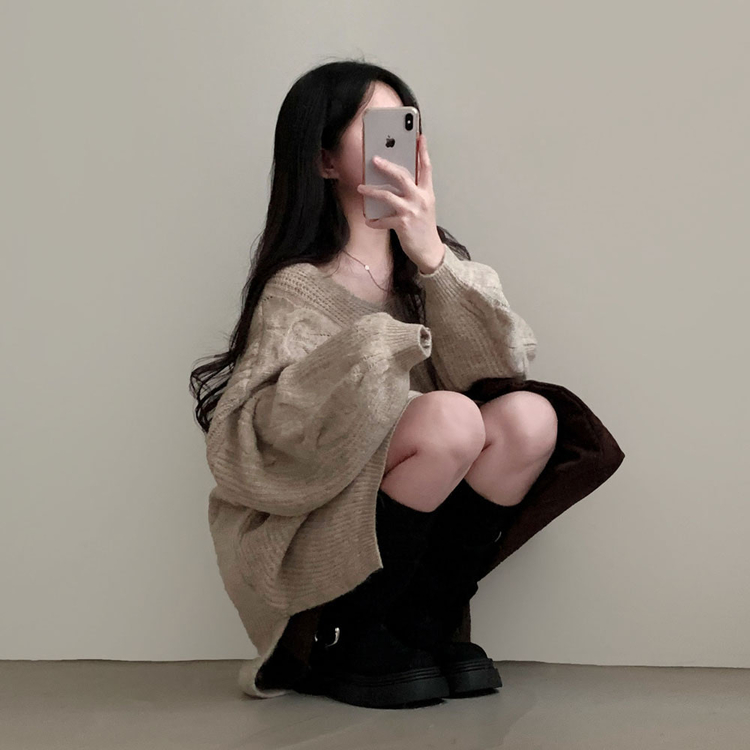 SNT34492 보호본능 자극핏여리함 플러스 꽈배기 꼬임 브이넥 오버핏 니트