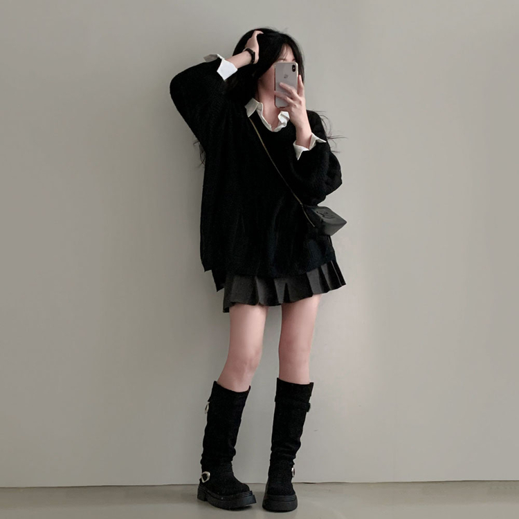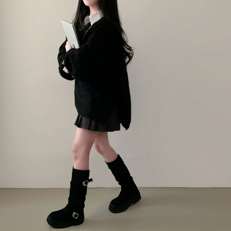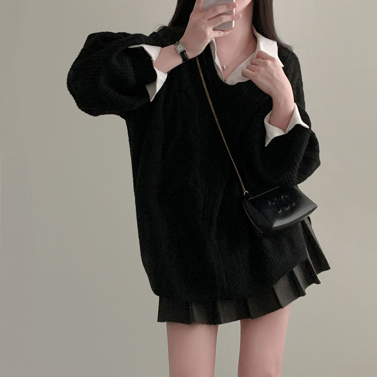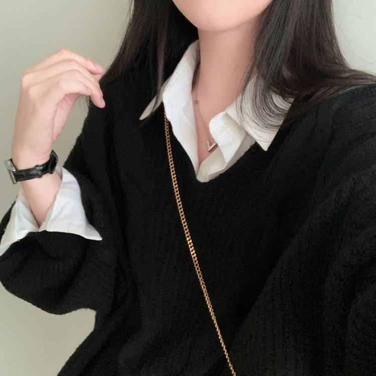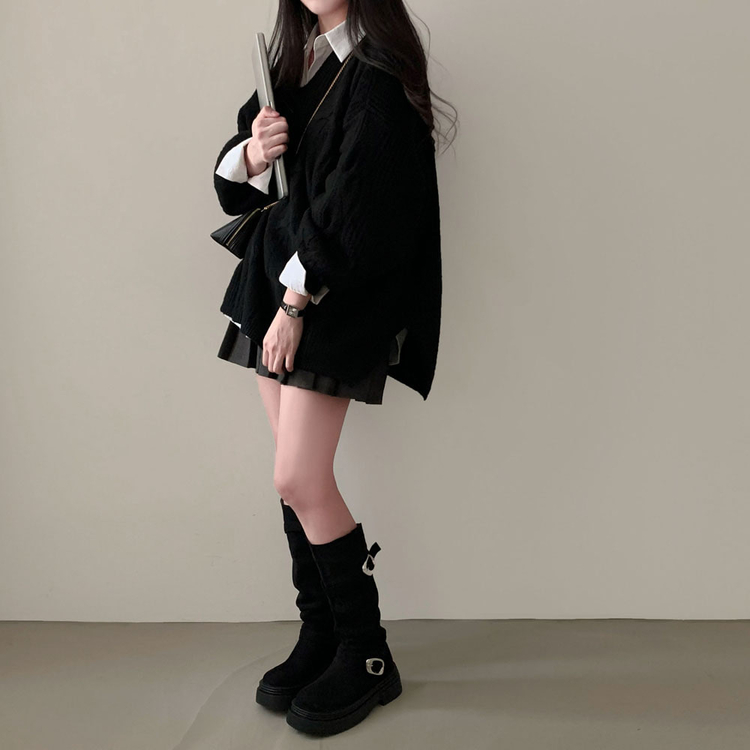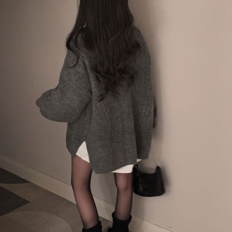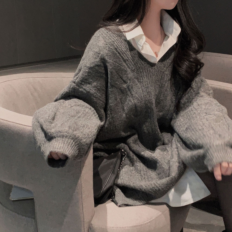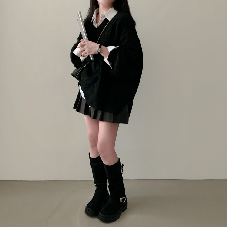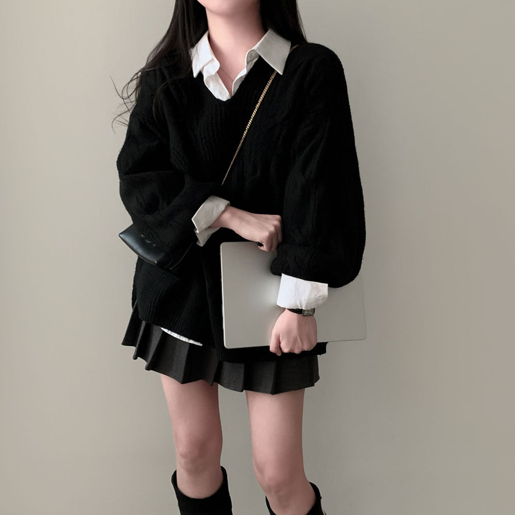 SNT34492 보호본능 자극핏여리함 플러스 꽈배기 꼬임 브이넥 오버핏 니트