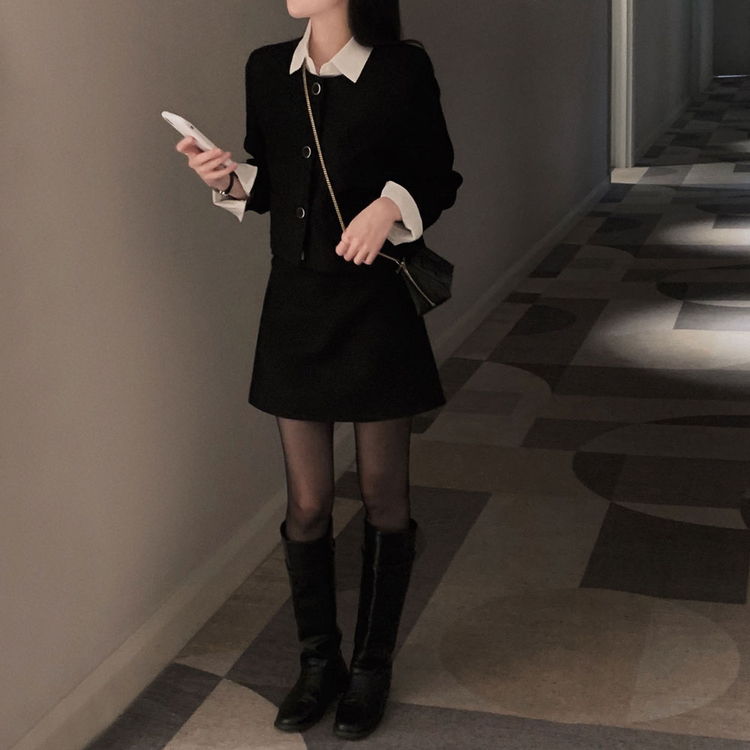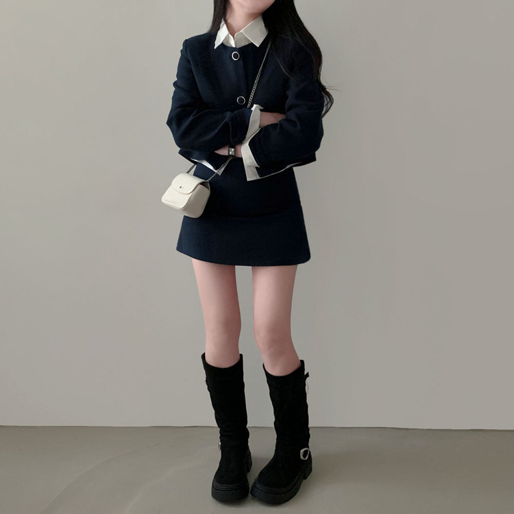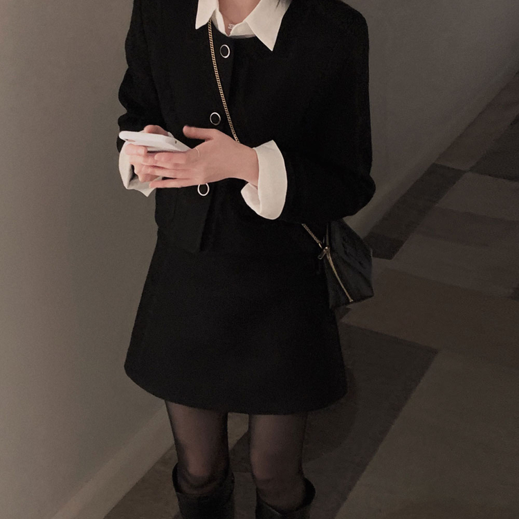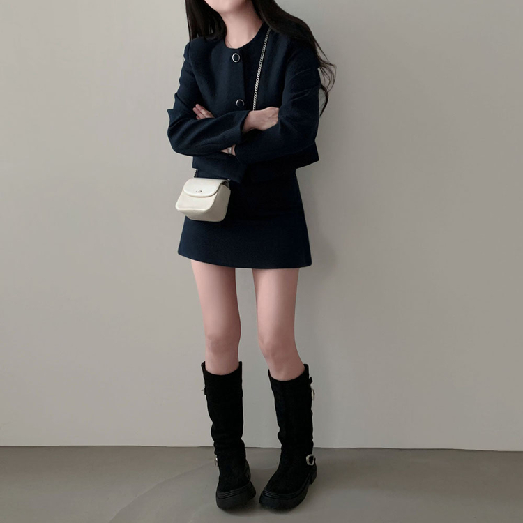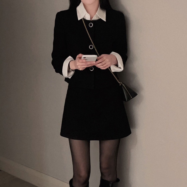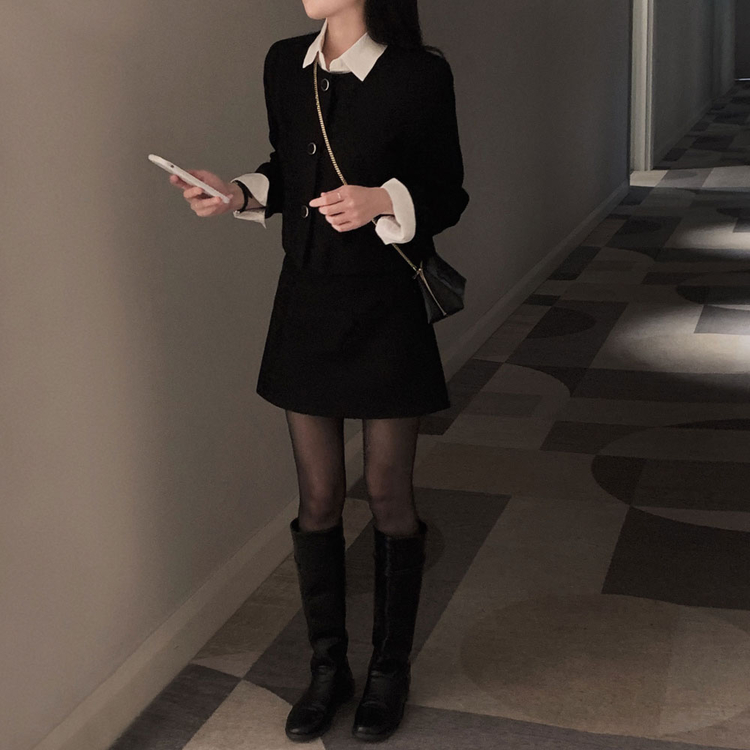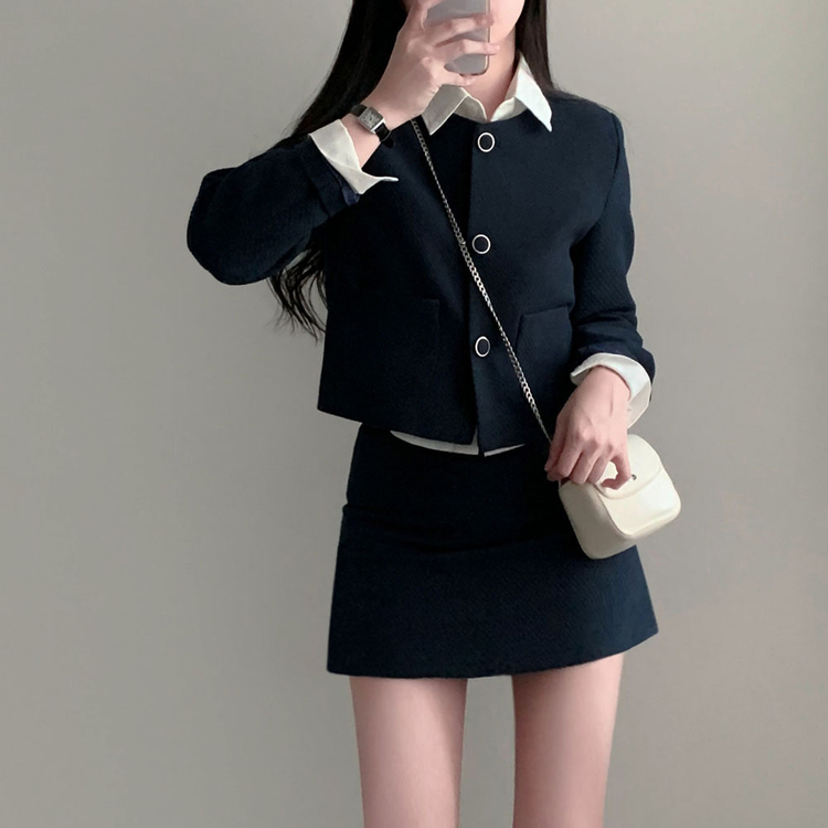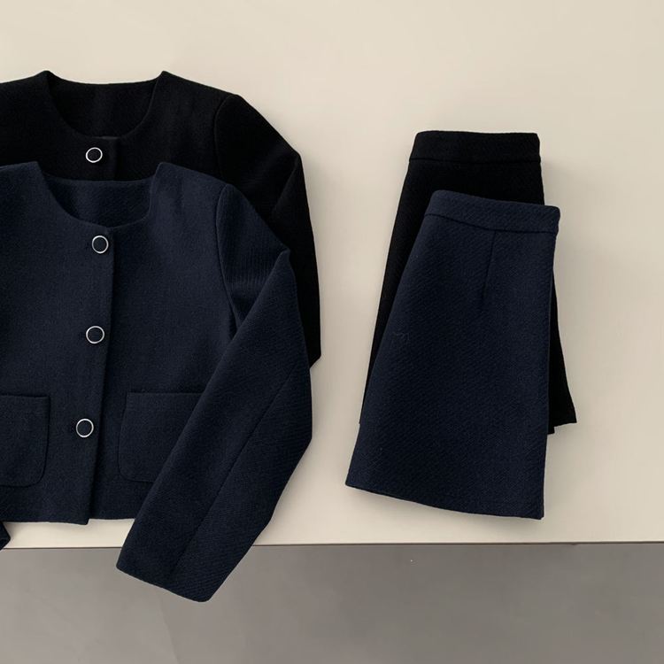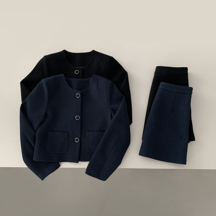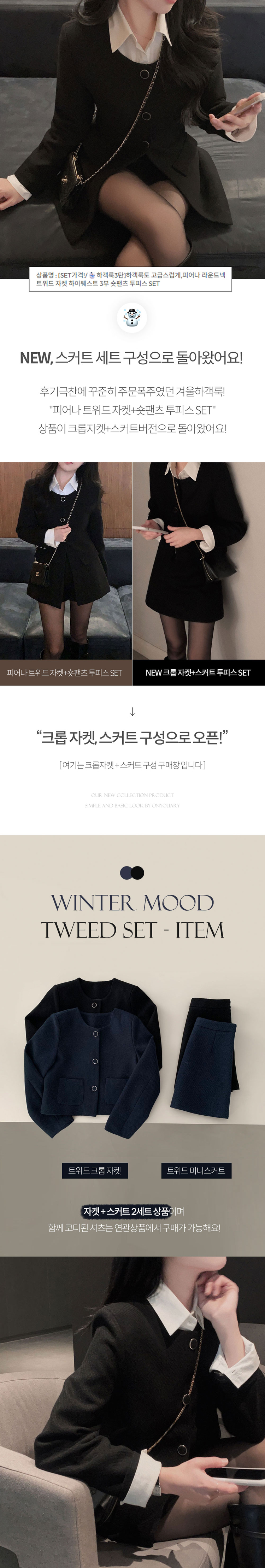 SOP30559 트와일라잇 세미크롭 트위드 라운드 자켓 스커트 투피스 세트