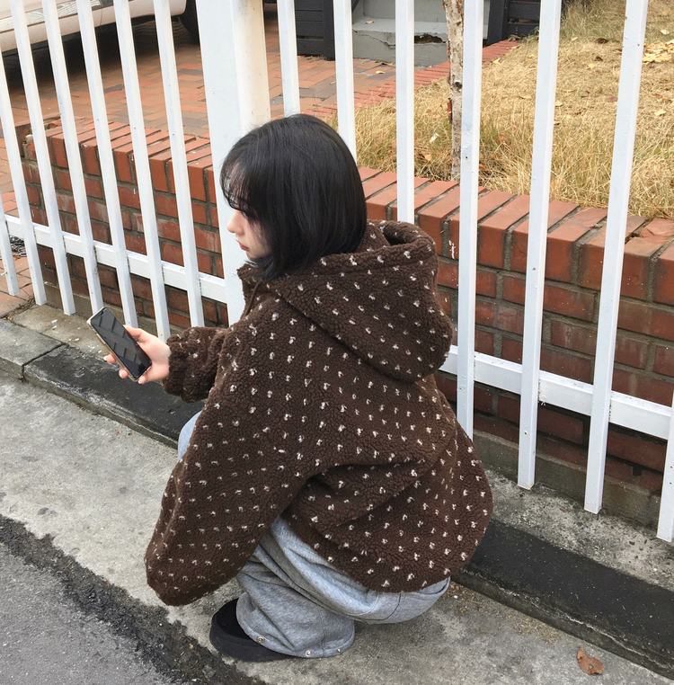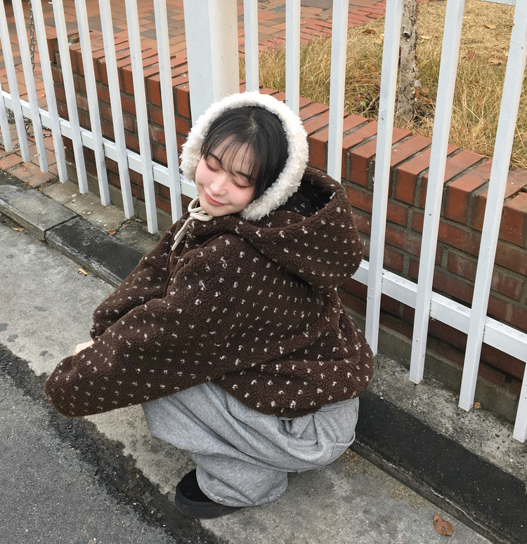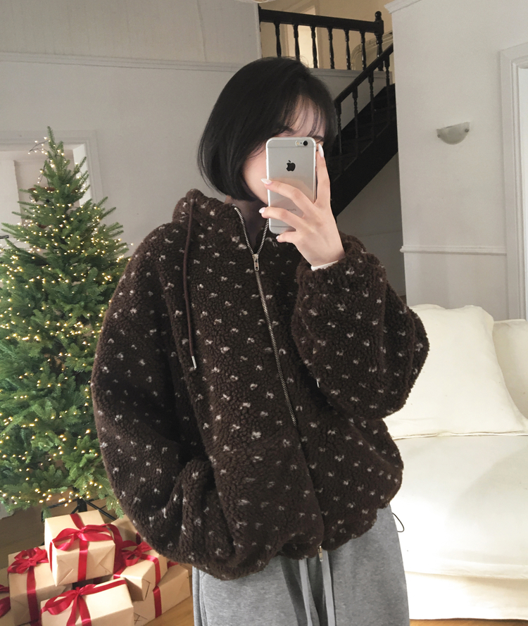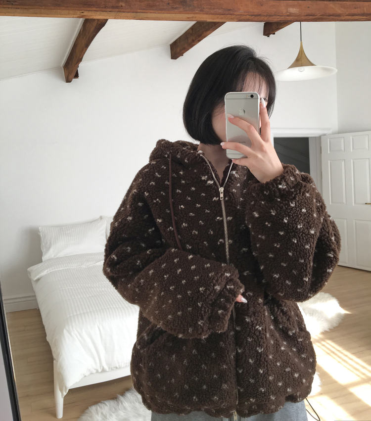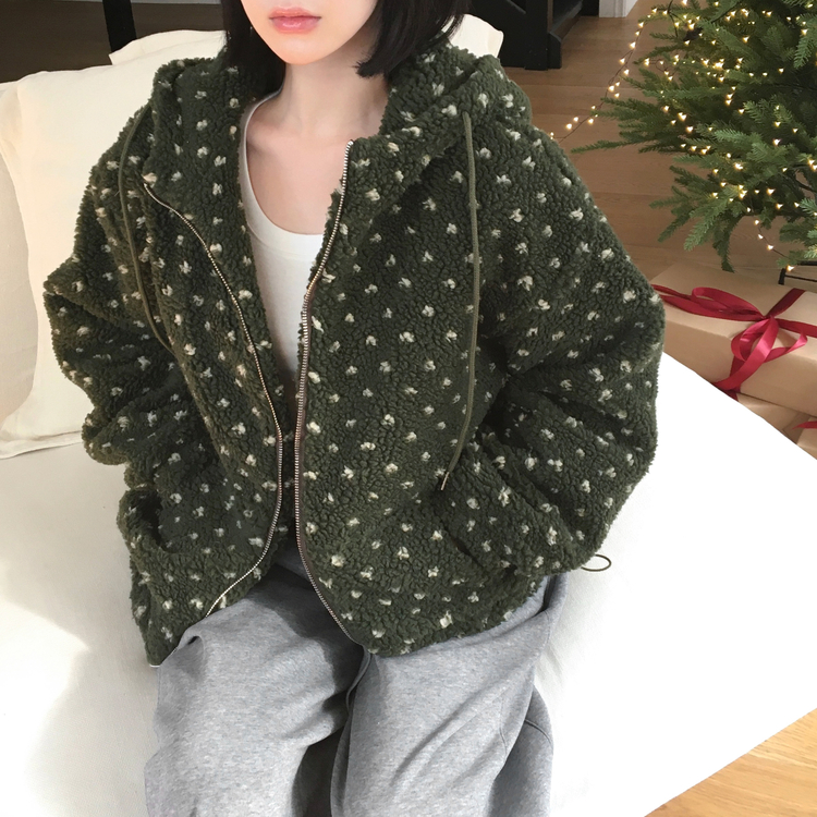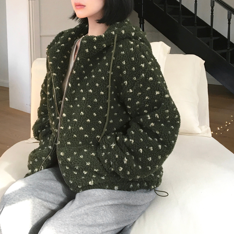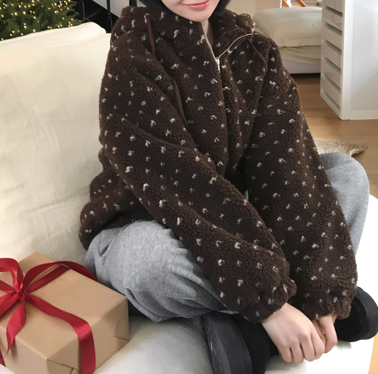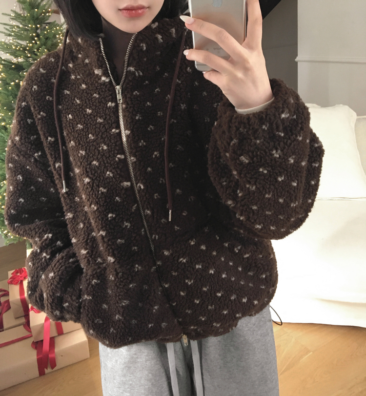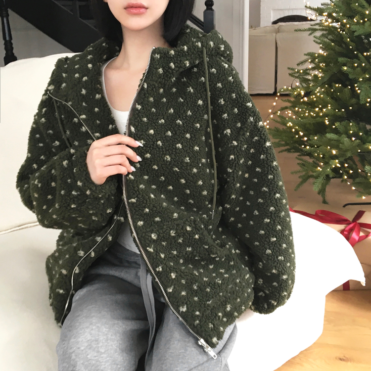 SJP19858 미찌 누빔 안감 도트 뽀글이 스트링 후드 집업 점퍼