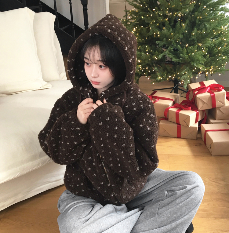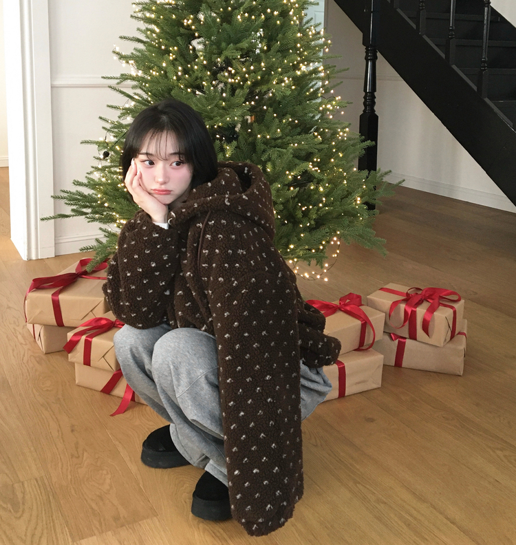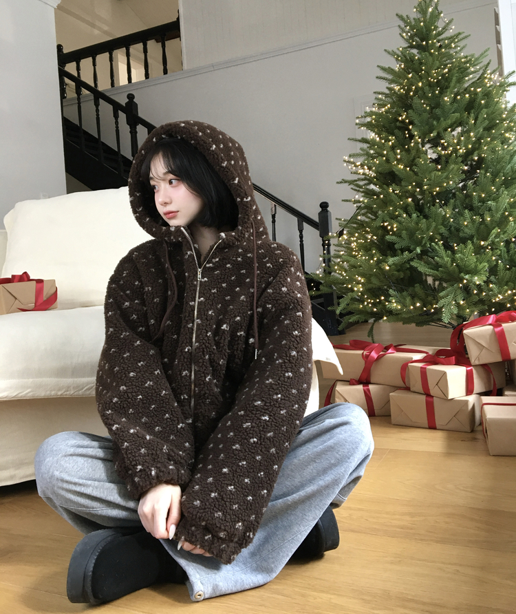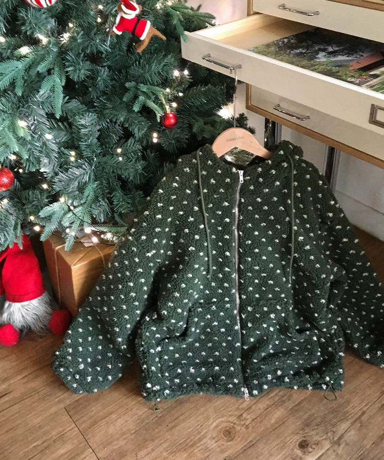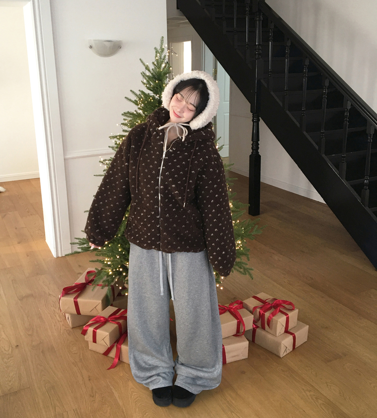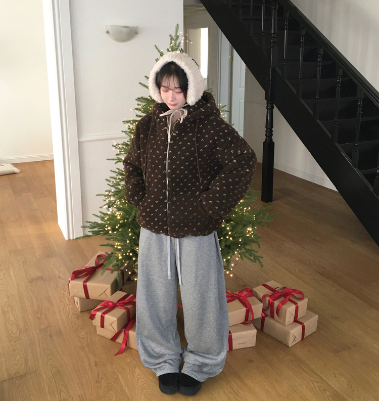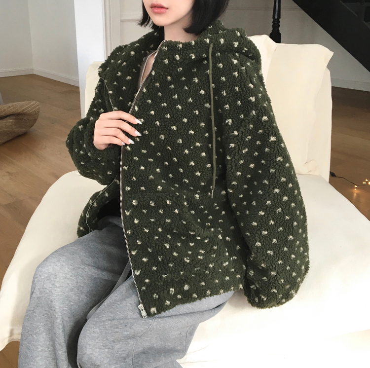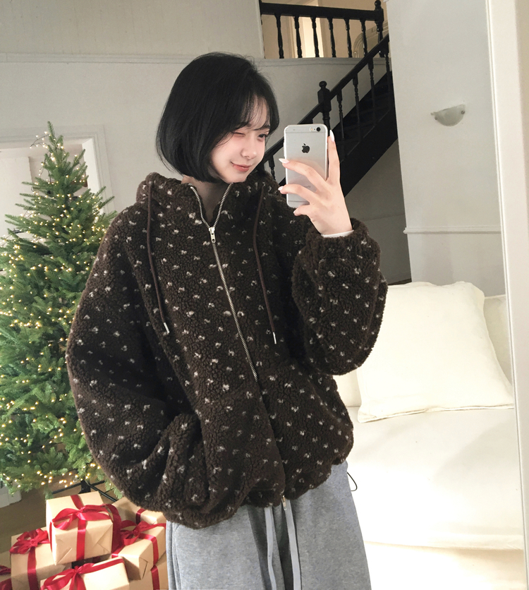 SJP19858 미찌 누빔 안감 도트 뽀글이 스트링 후드 집업 점퍼