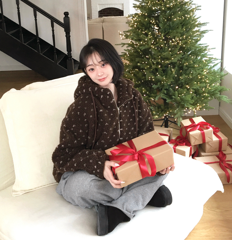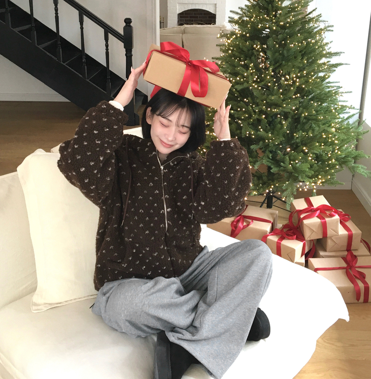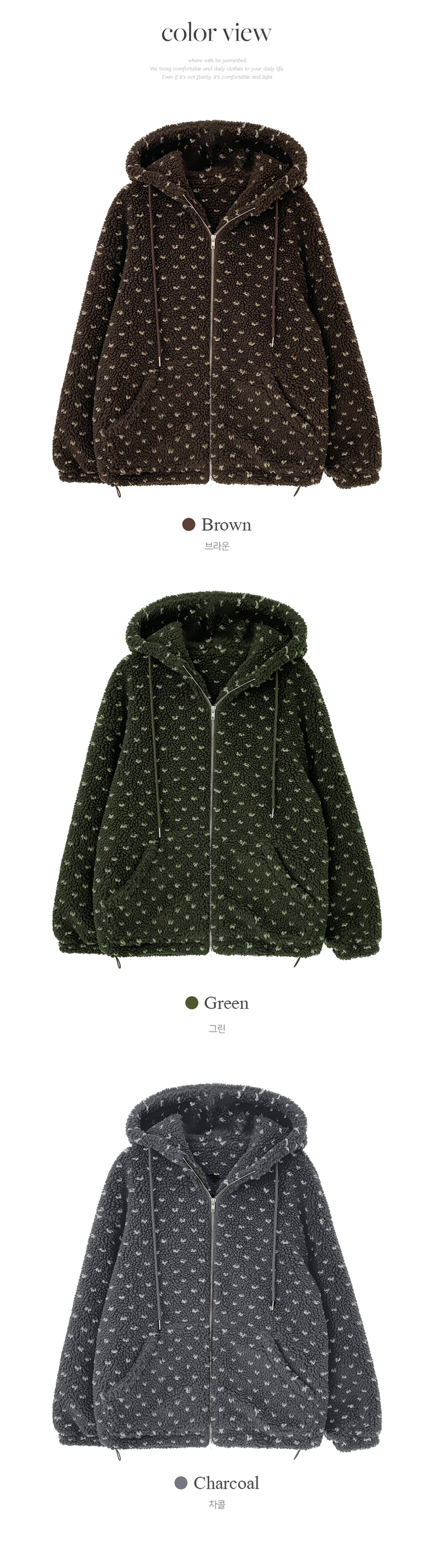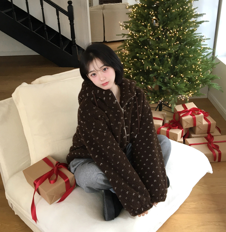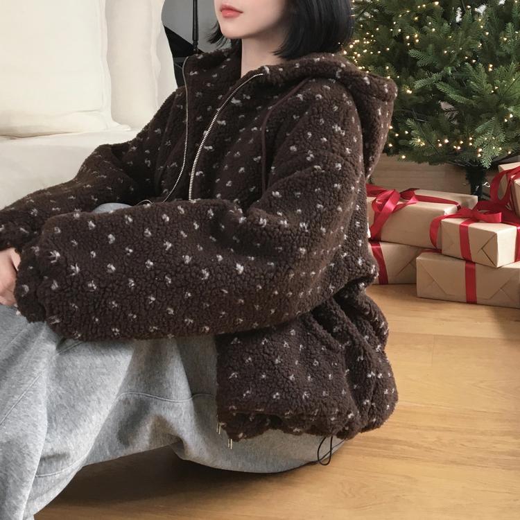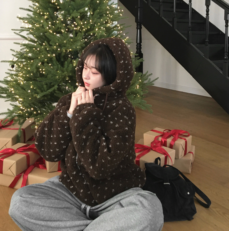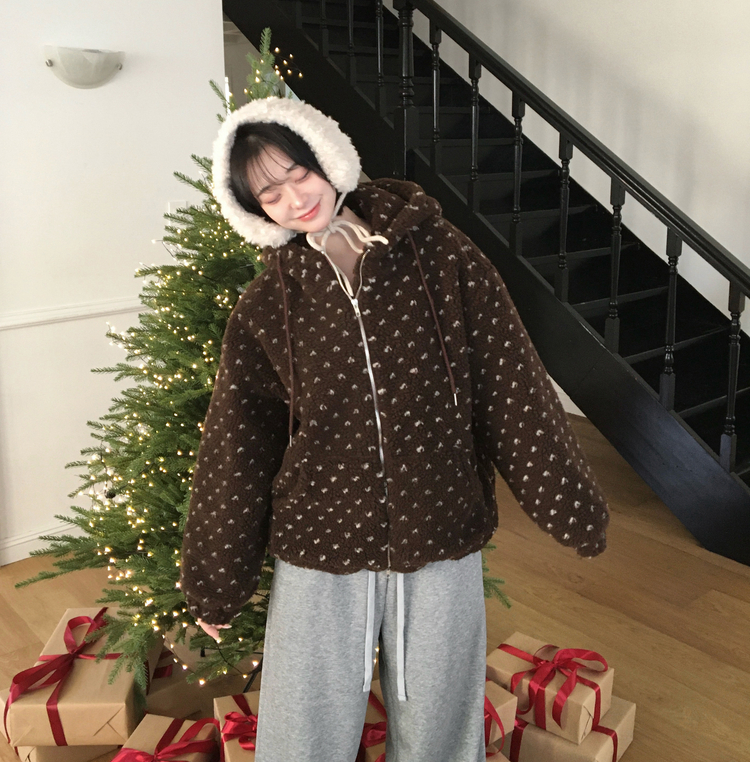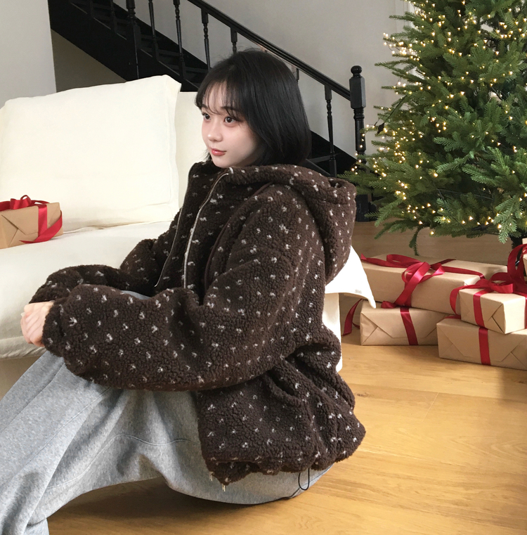 SJP19858 미찌 누빔 안감 도트 뽀글이 스트링 후드 집업 점퍼