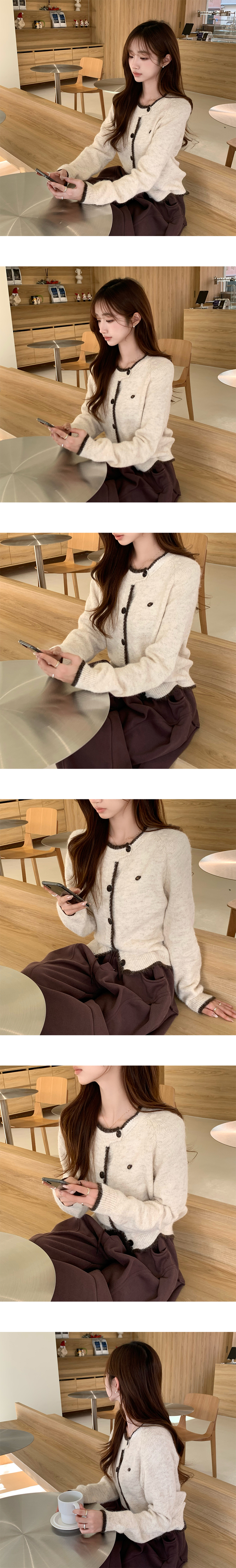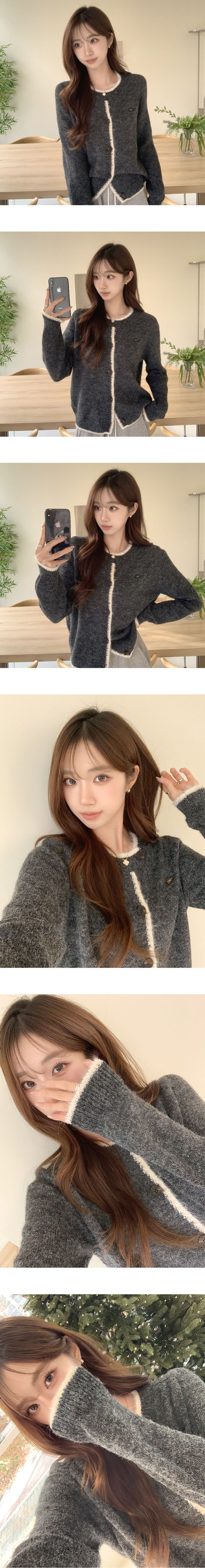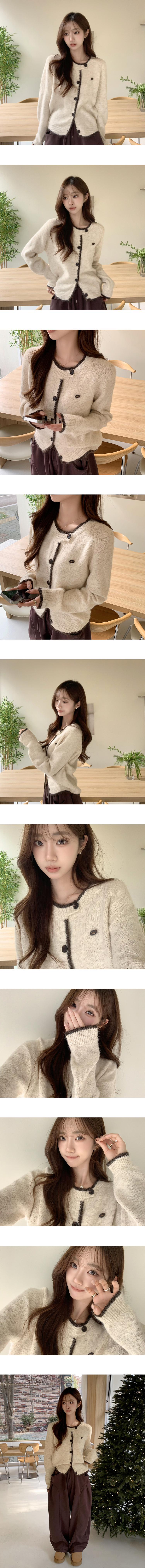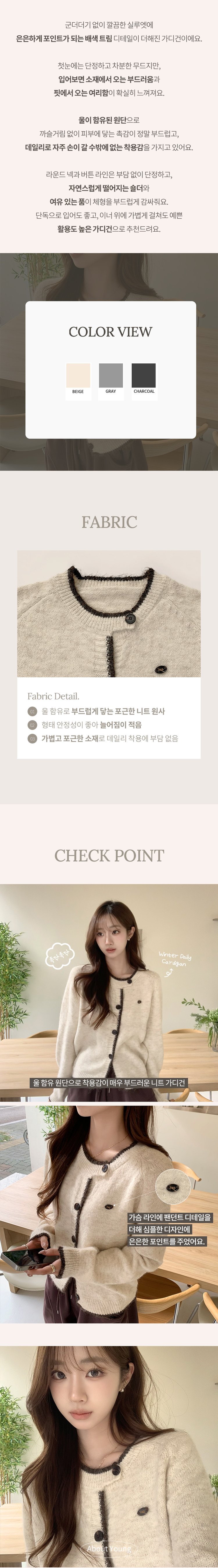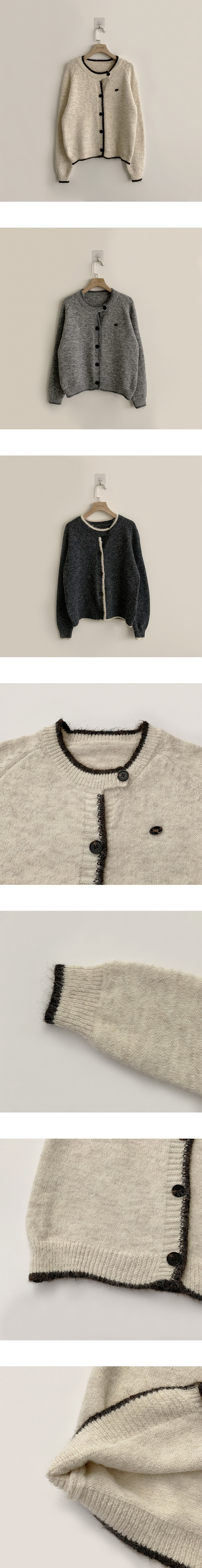 SGD30375 극강의 부드러움 바닐라 라운드 배색 루즈핏 버튼 긴팔 팬던트 겨울 와펜 여리핏 니트 가디건