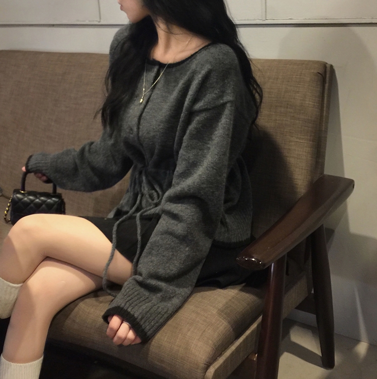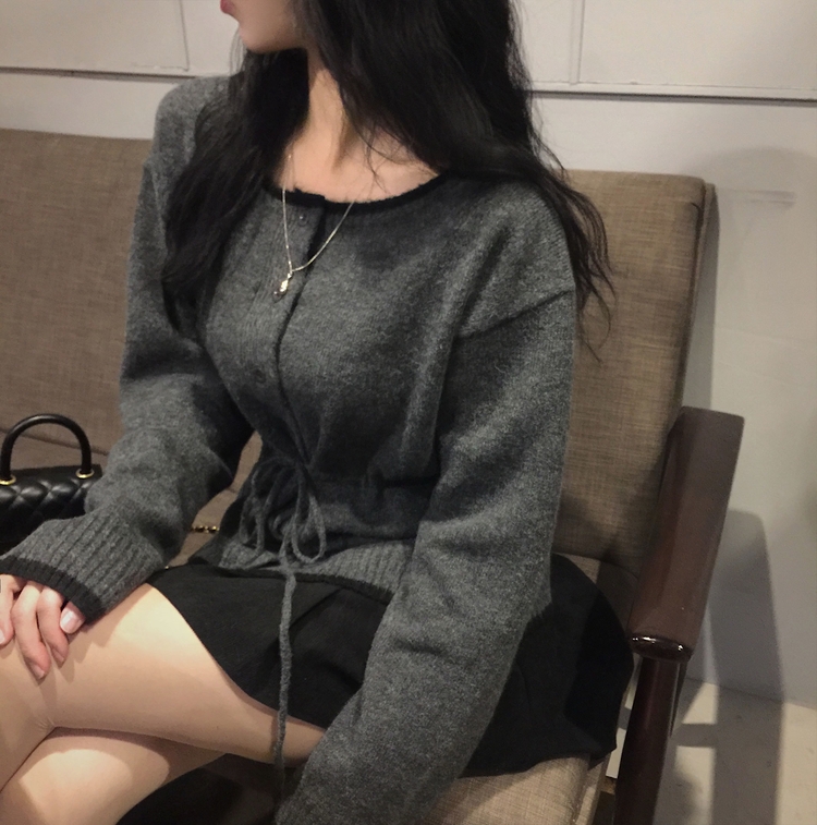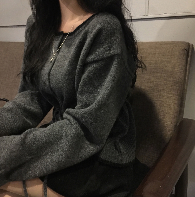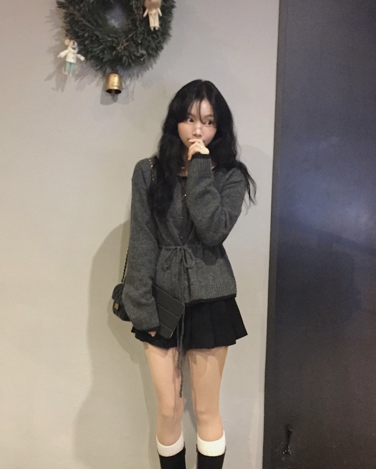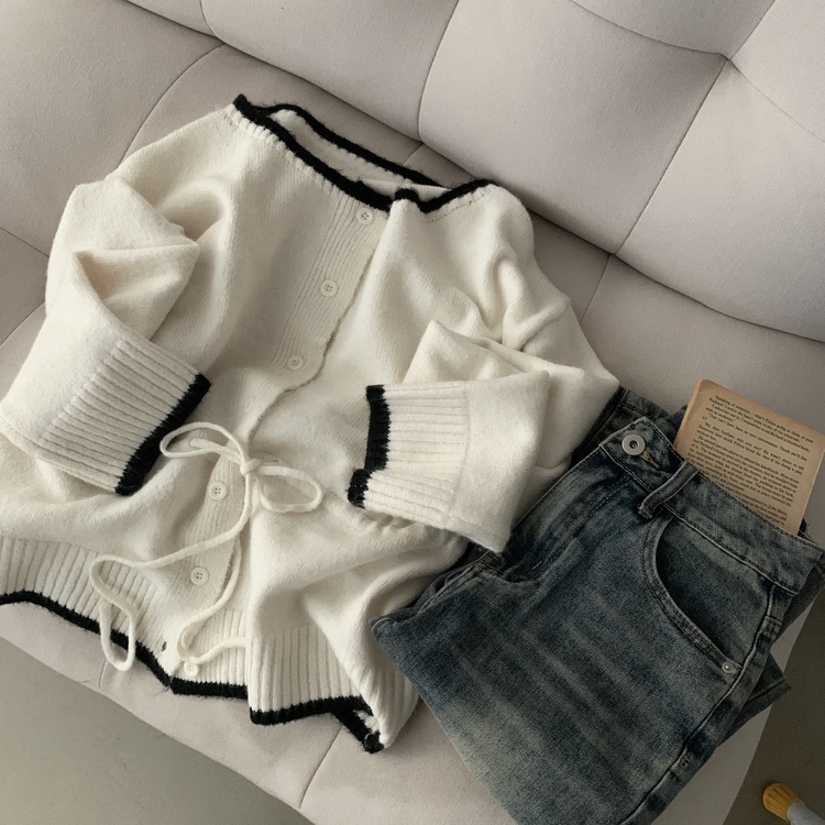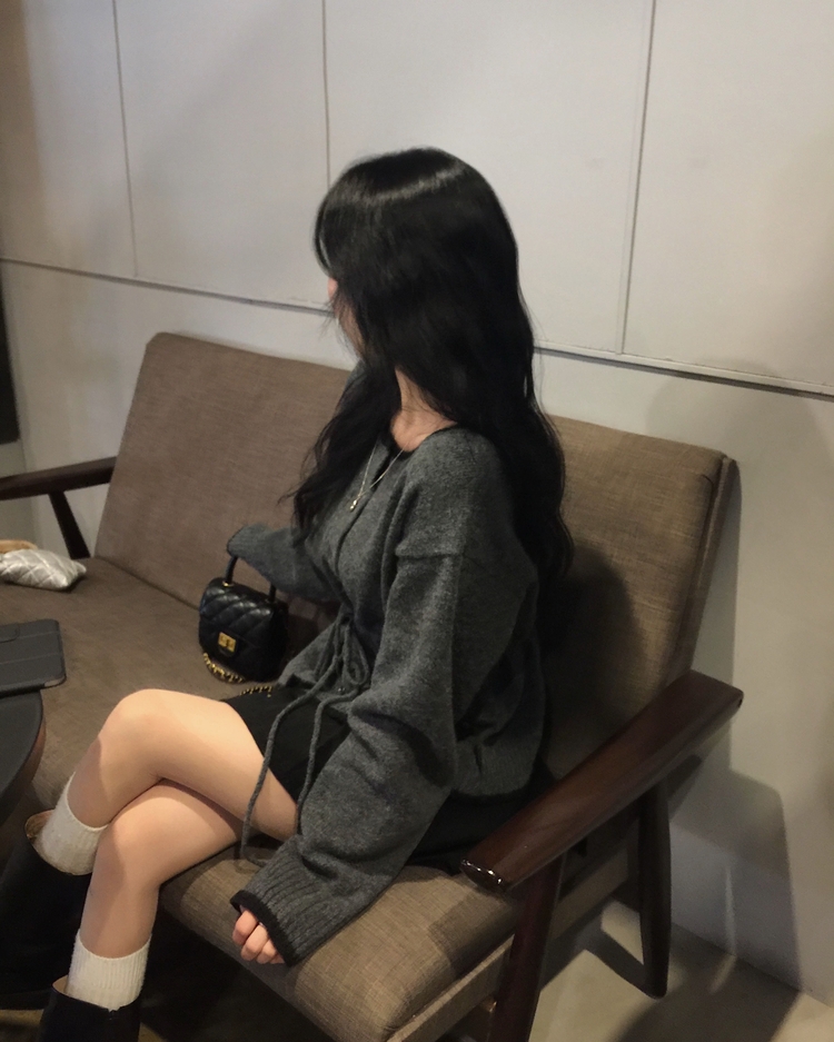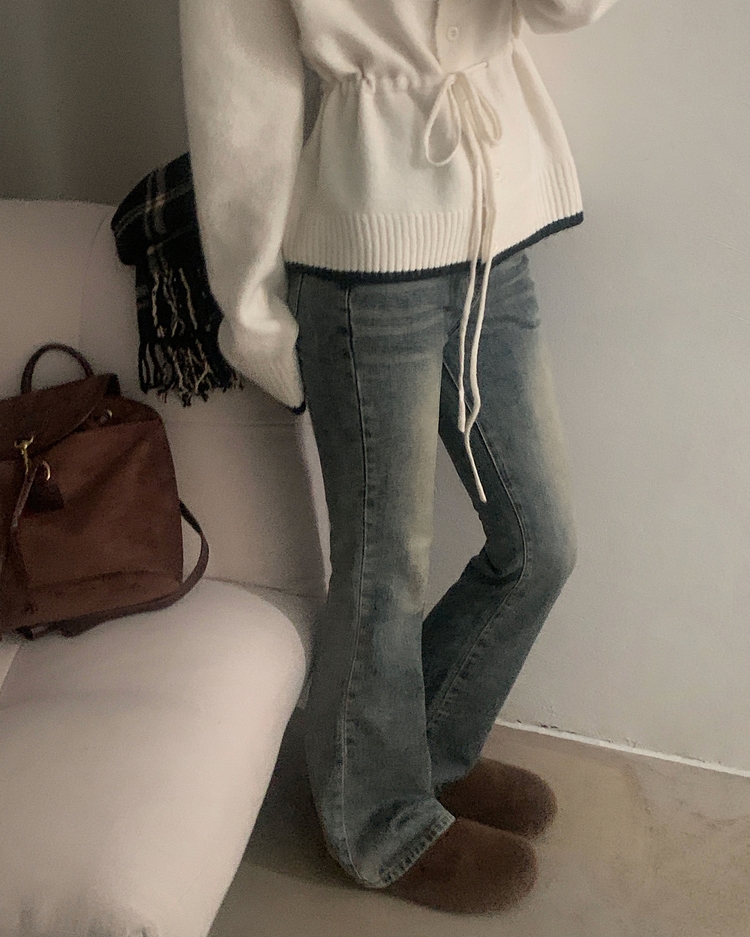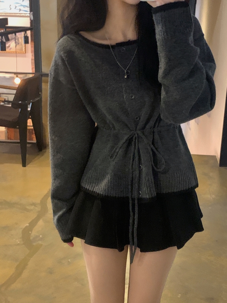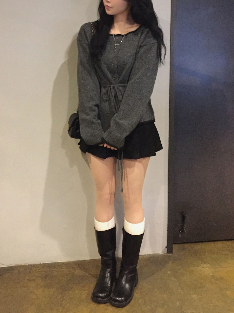 SGD30388 포니 배색 보트넥 허리스트링 울 니트가디건