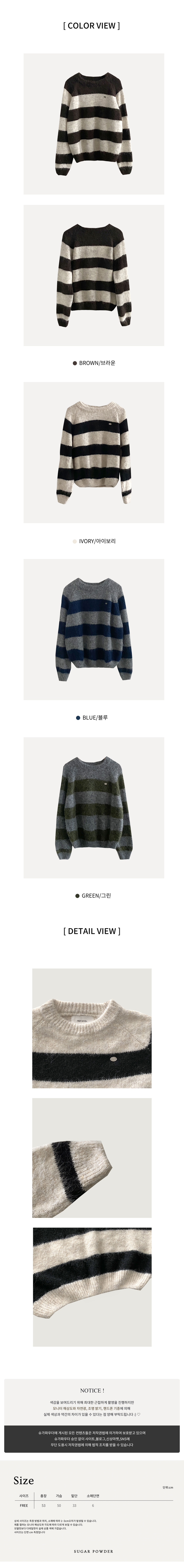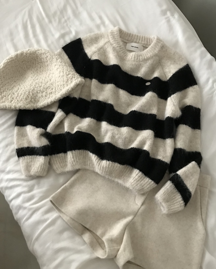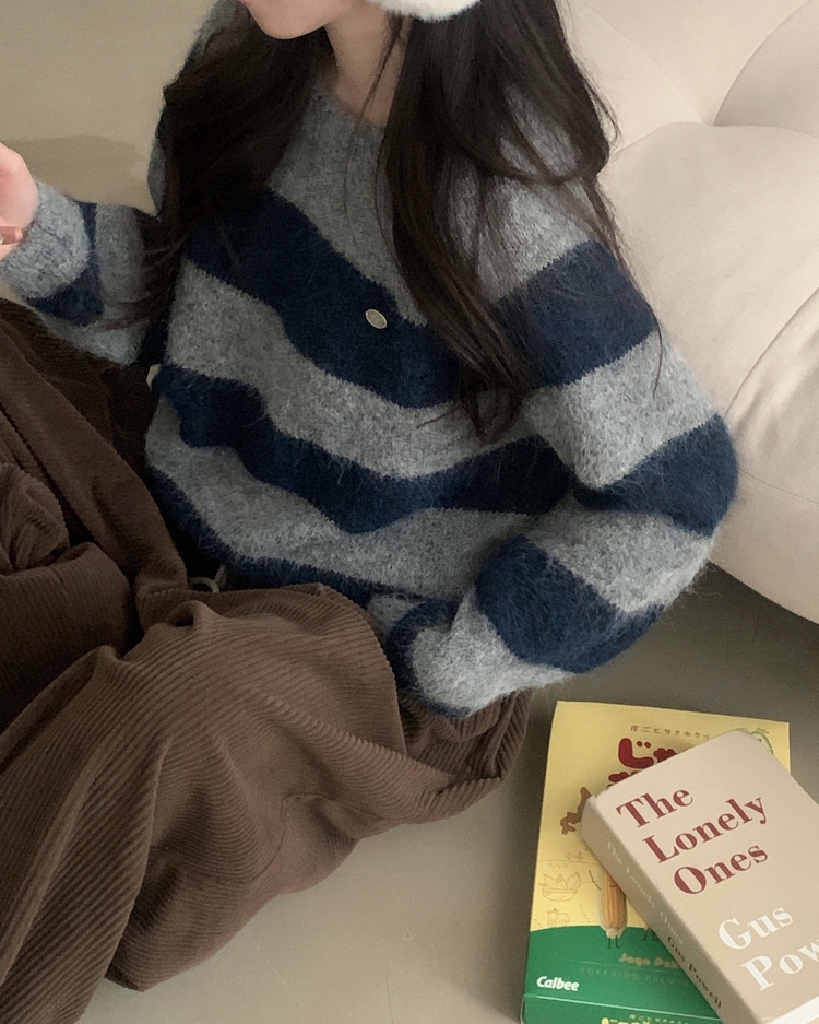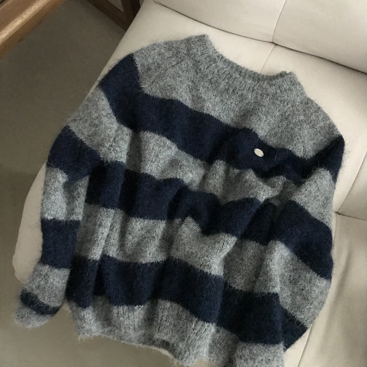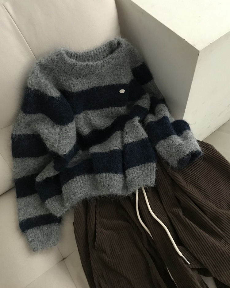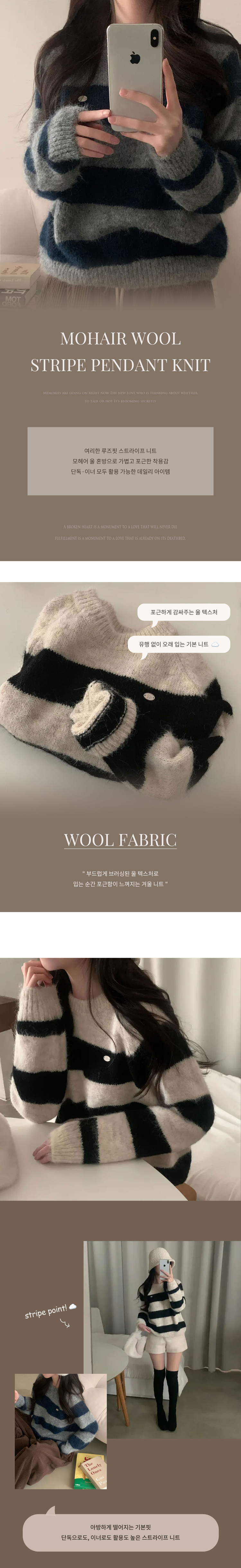 SNT34536 바론 모헤어 단가라 스트라이프 소프트울 펜던트 라운드 니트