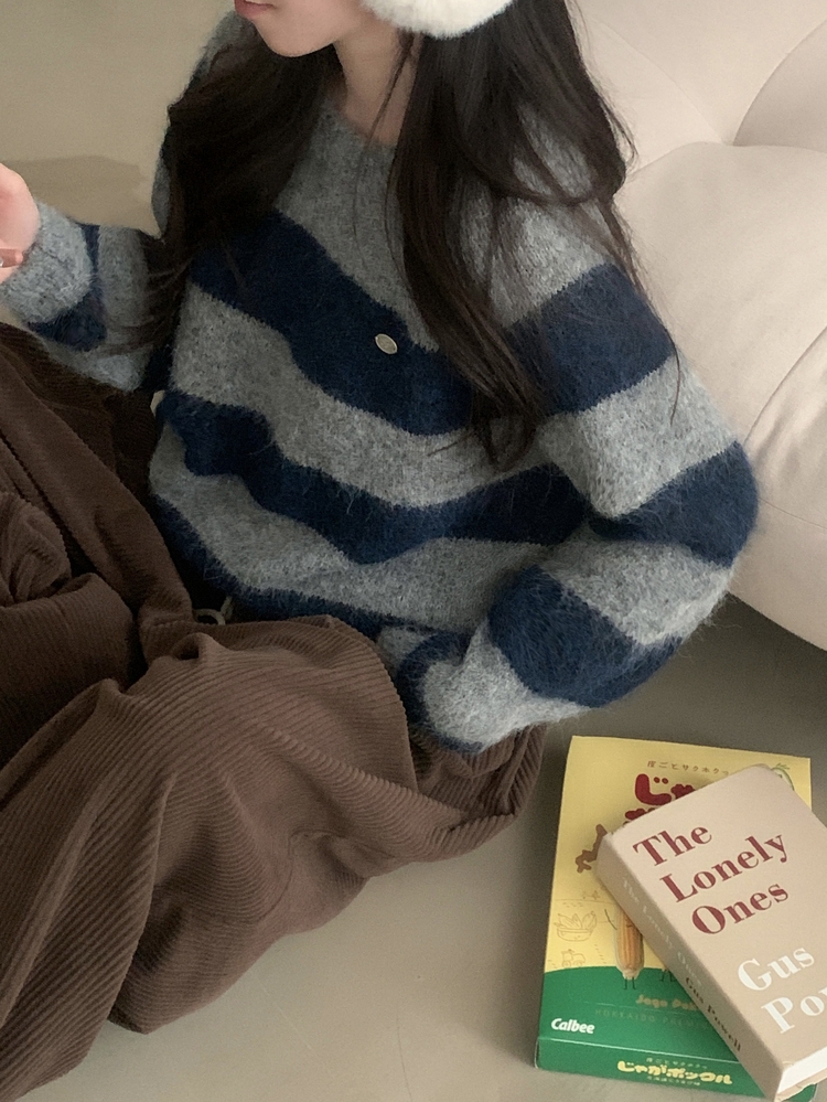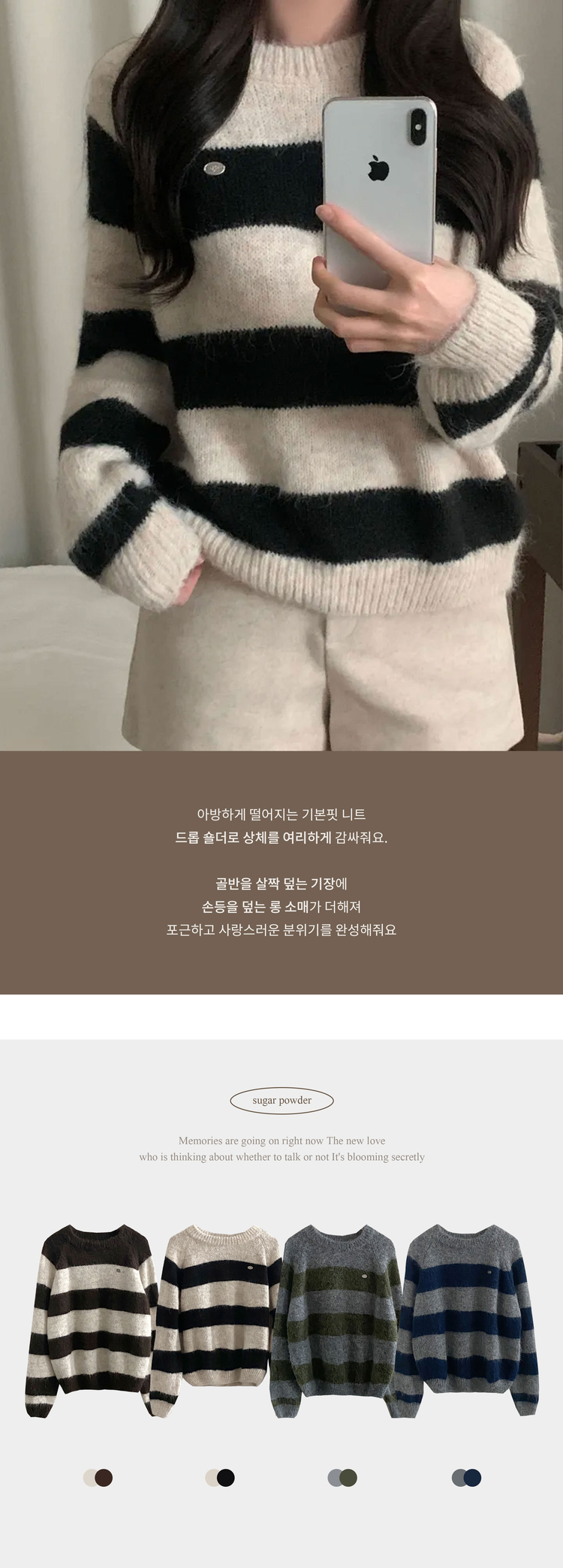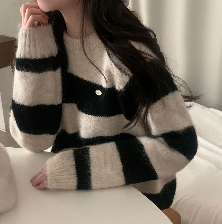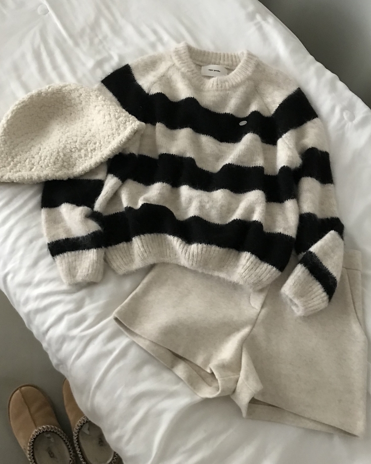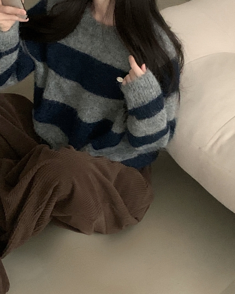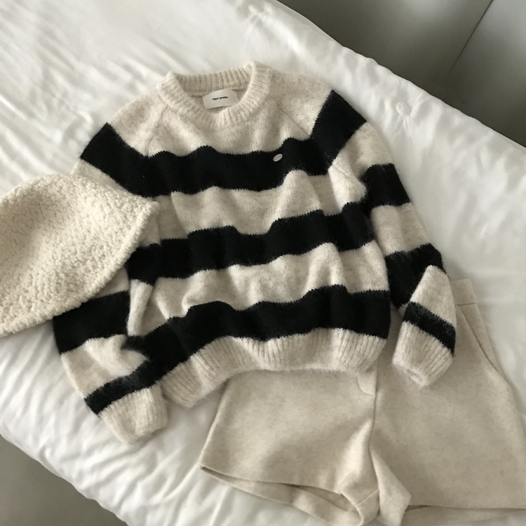SNT34536 바론 모헤어 단가라 스트라이프 소프트울 펜던트 라운드 니트