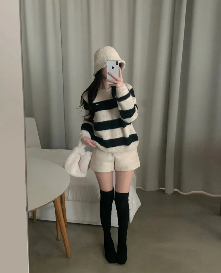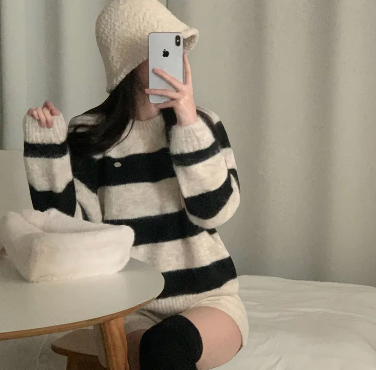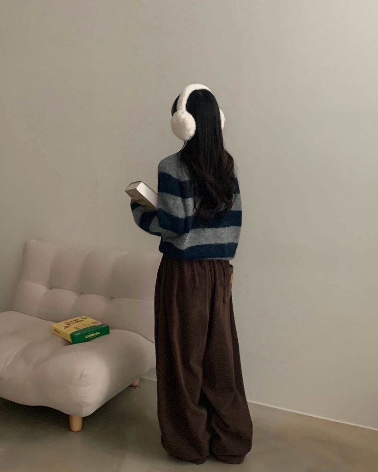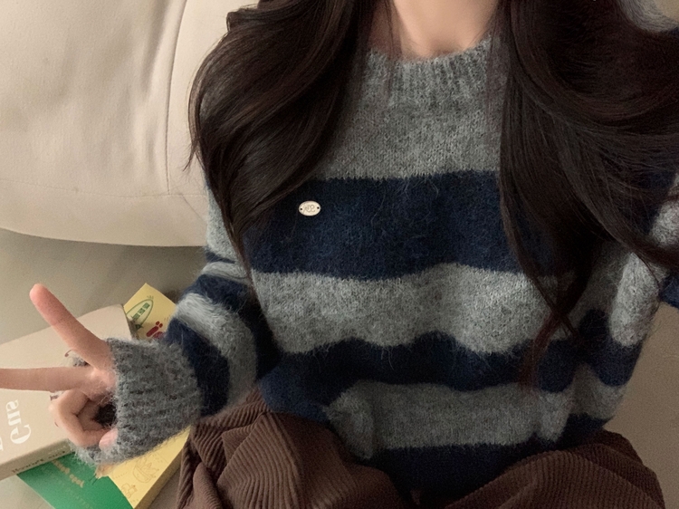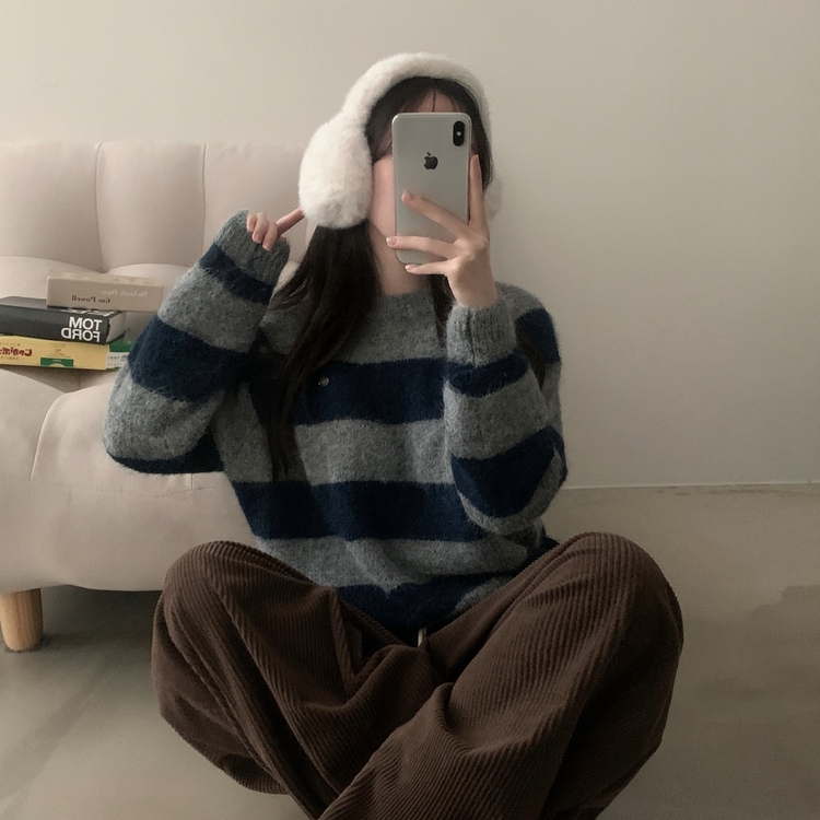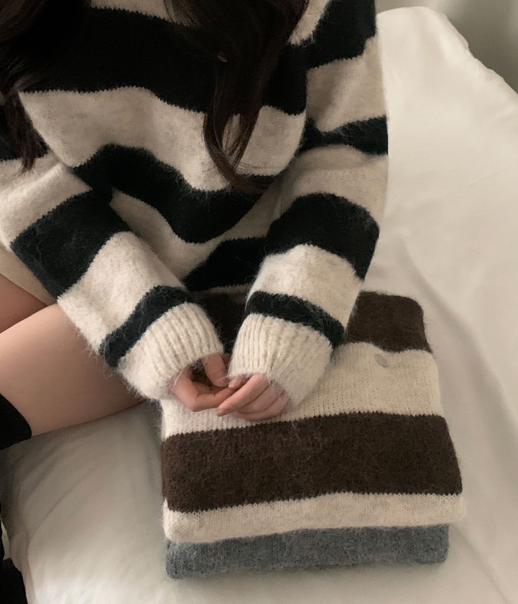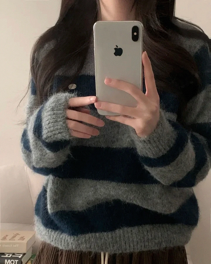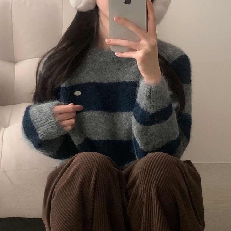 SNT34536 바론 모헤어 단가라 스트라이프 소프트울 펜던트 라운드 니트