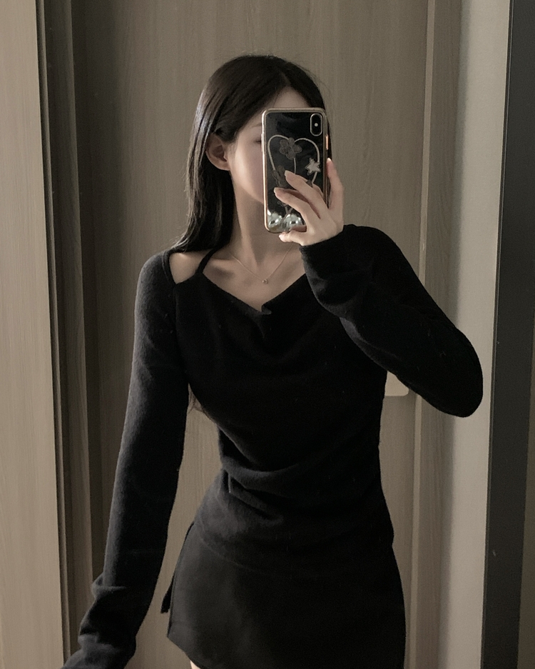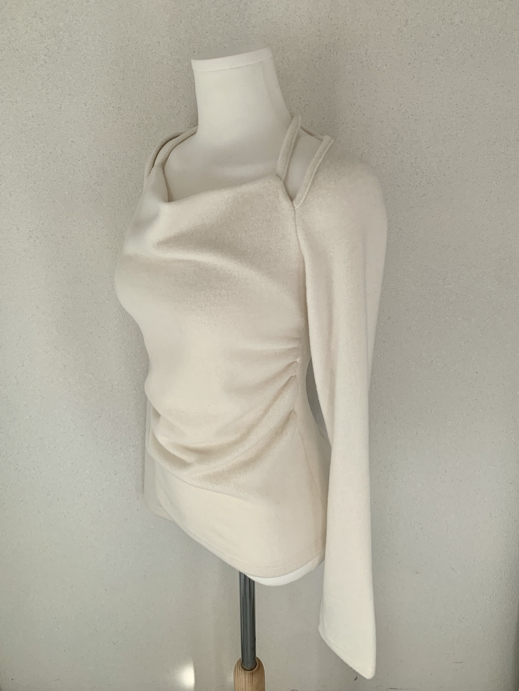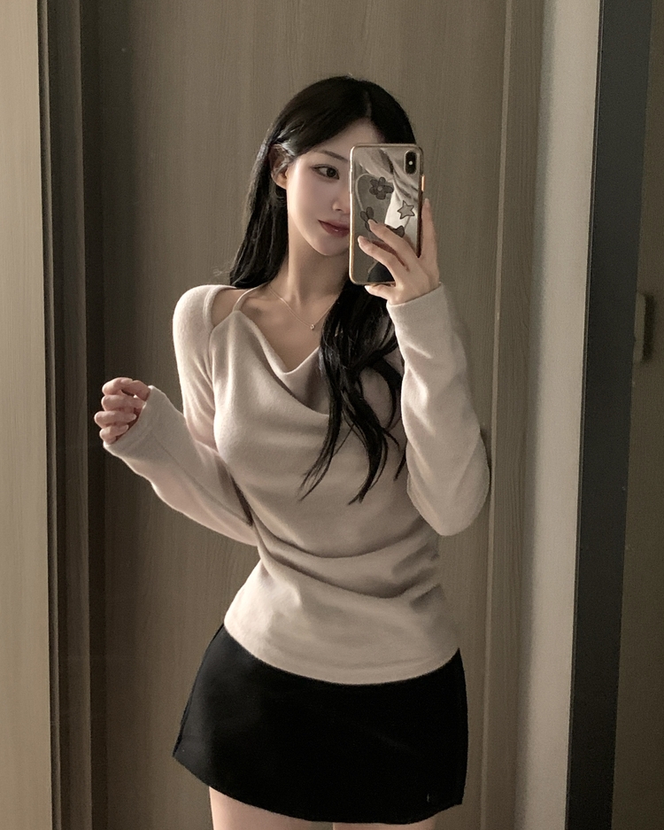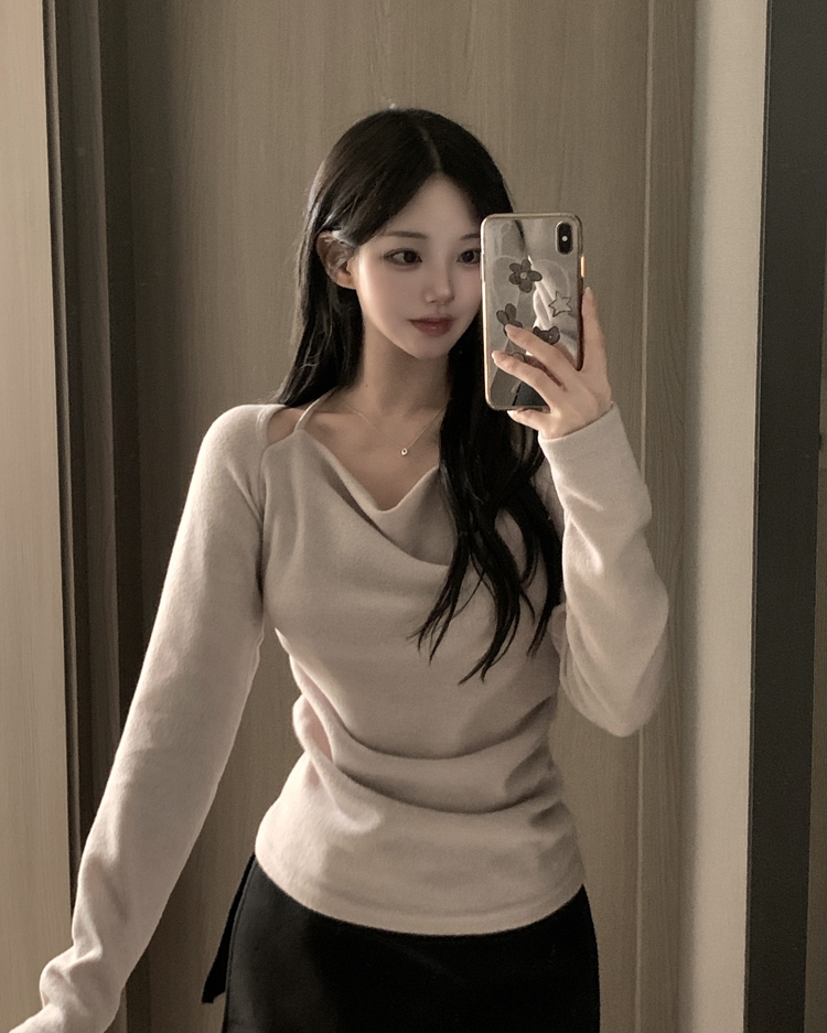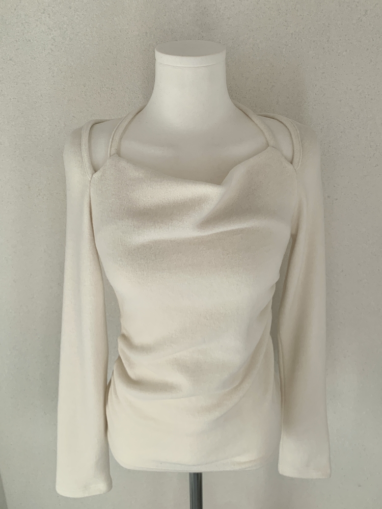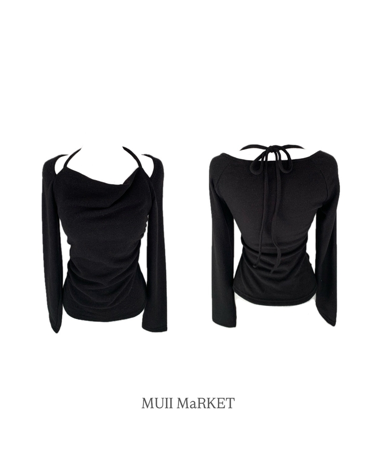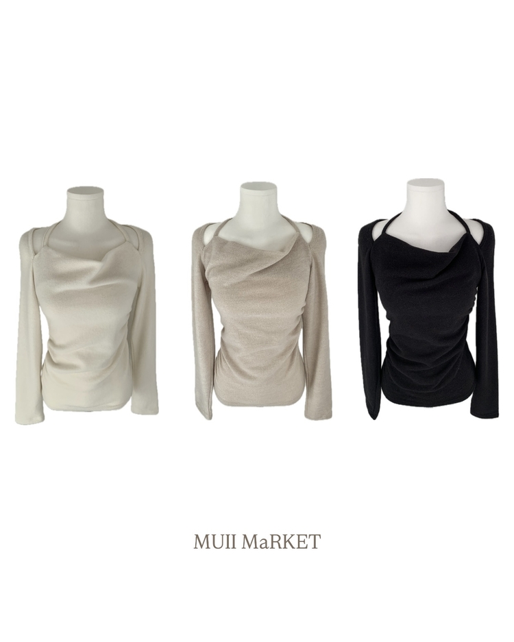 SNT34556 수지 홀터넥 드레이프 옆셔링 기모 니트 티셔츠