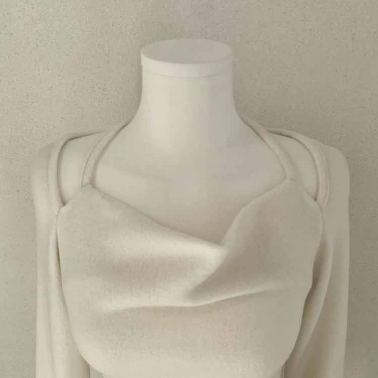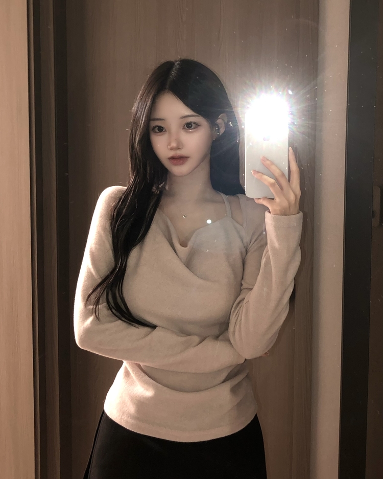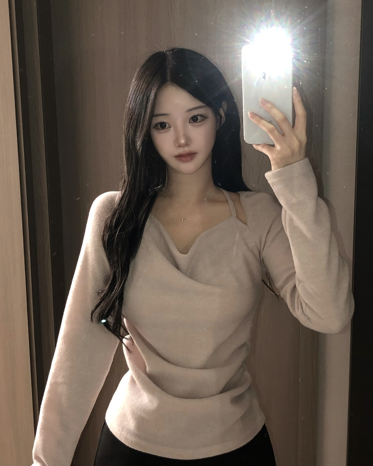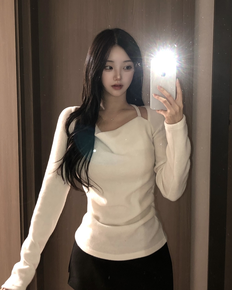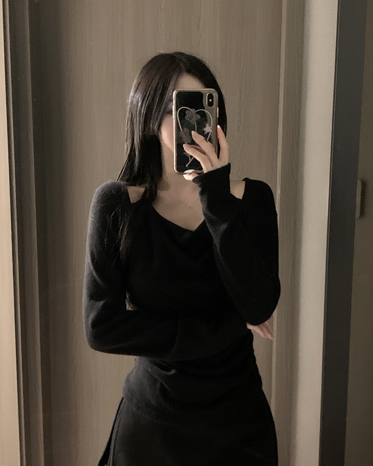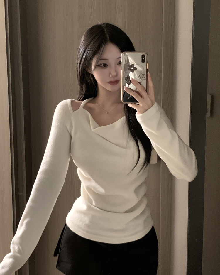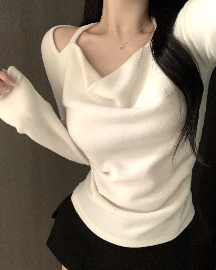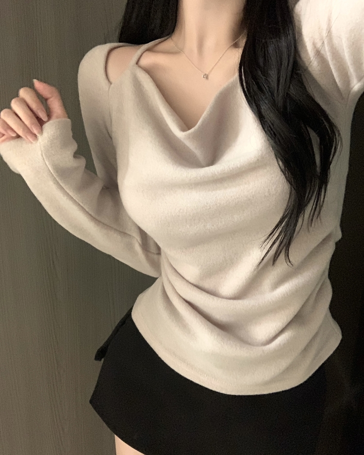 SNT34556 수지 홀터넥 드레이프 옆셔링 기모 니트 티셔츠