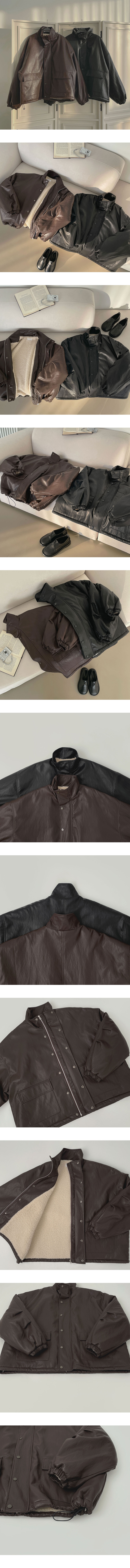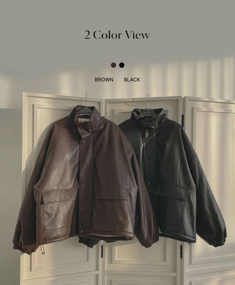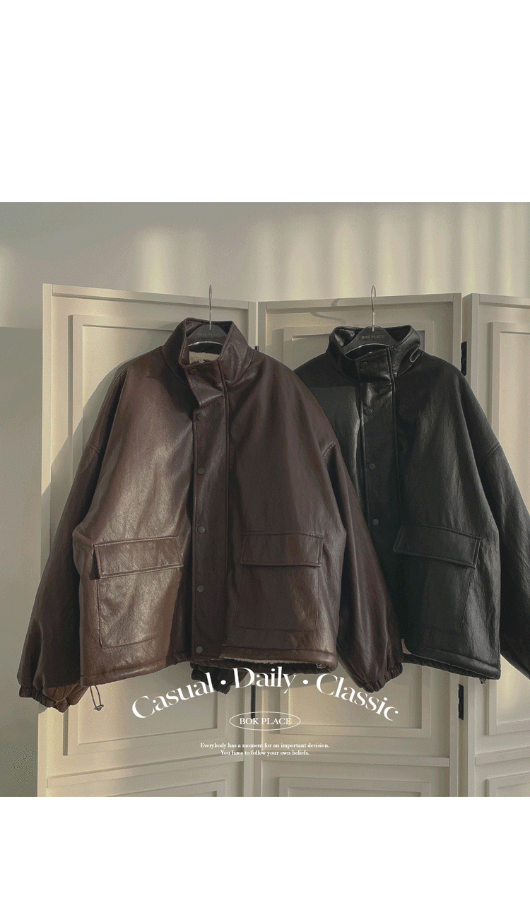 SJK15305 클래식 루즈핏 스트링 전체 안감 도톰 하이넥 레더 무스탕