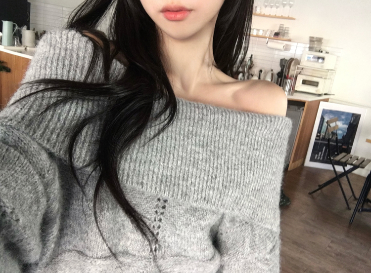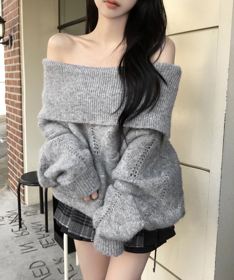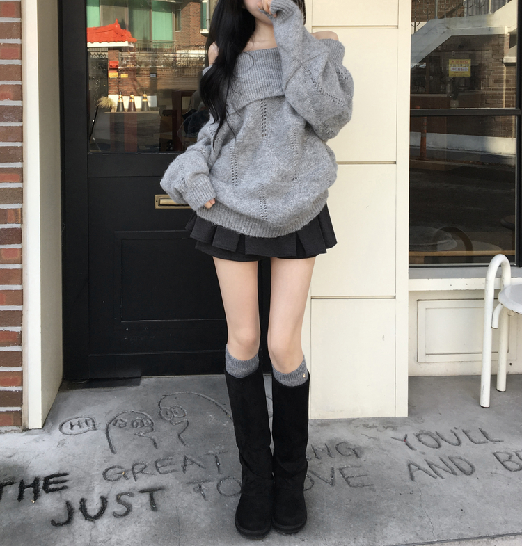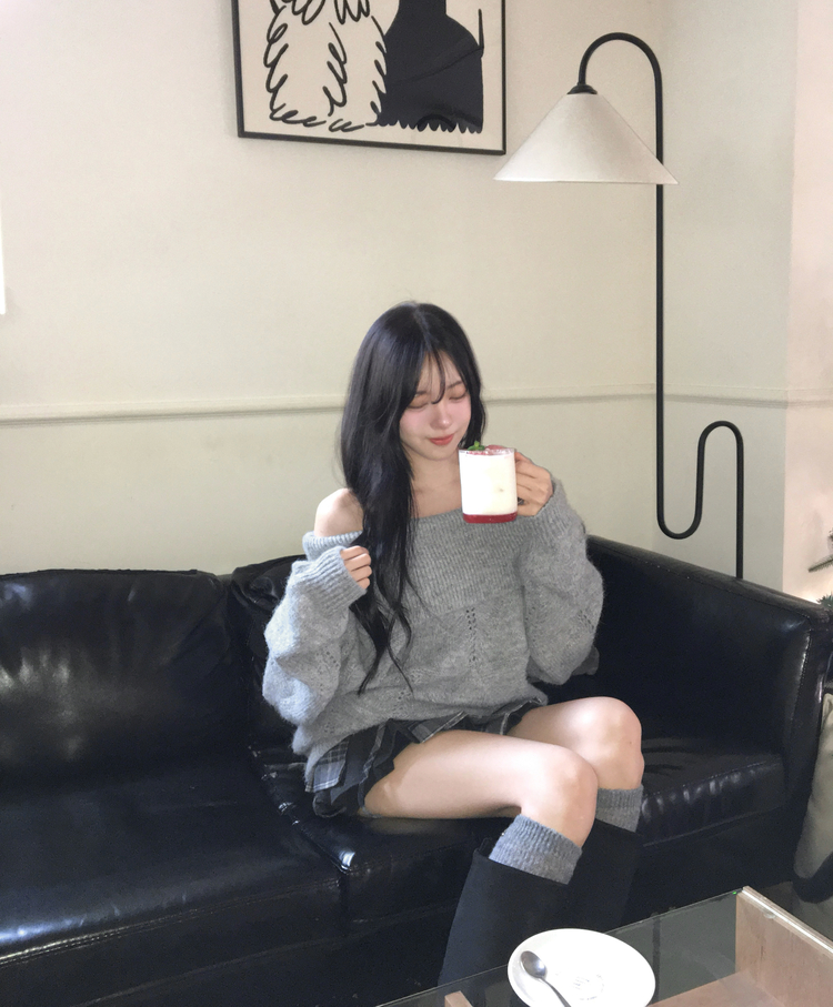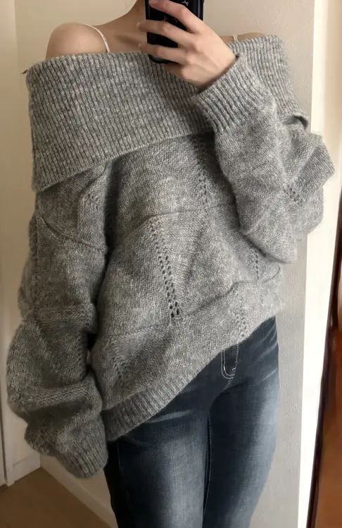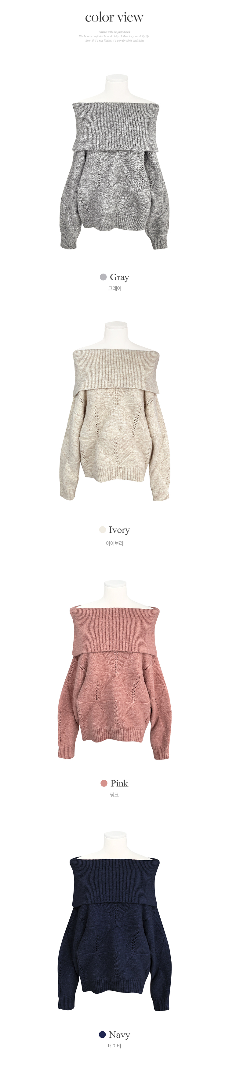 SNT34567 모니카 다이아 펀칭 오프숄더 오버핏 아방 도톰 긴팔 니트
