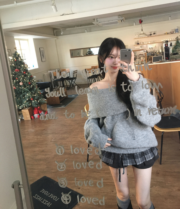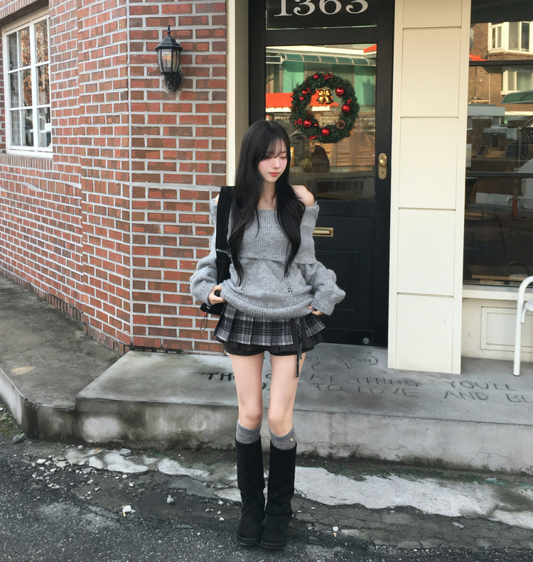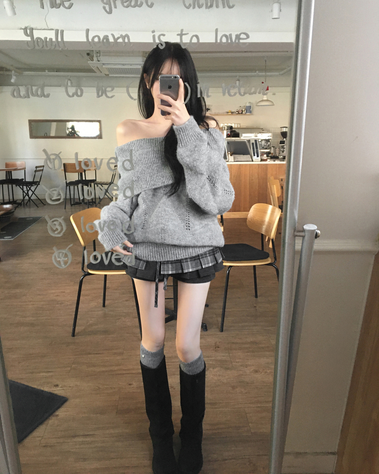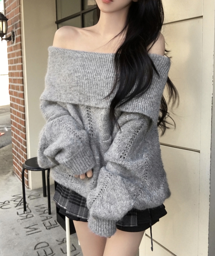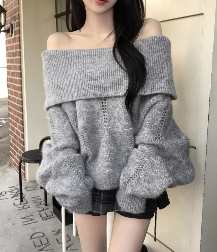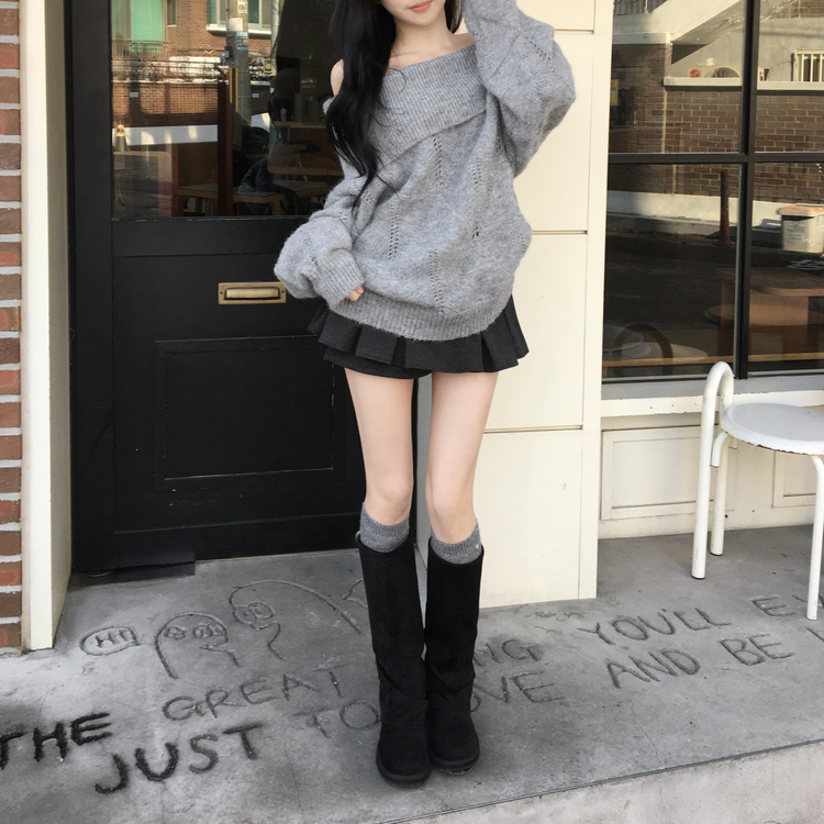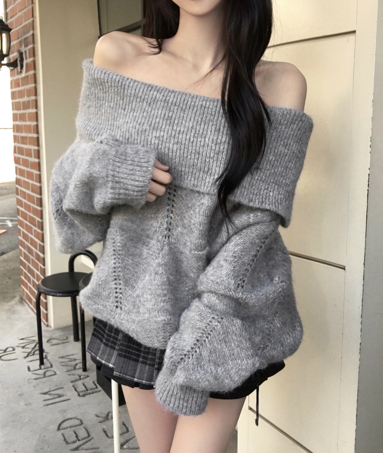 SNT34567 모니카 다이아 펀칭 오프숄더 오버핏 아방 도톰 긴팔 니트