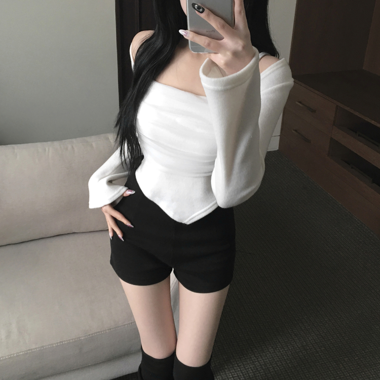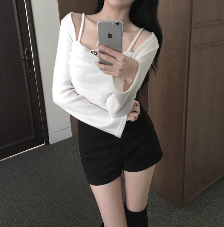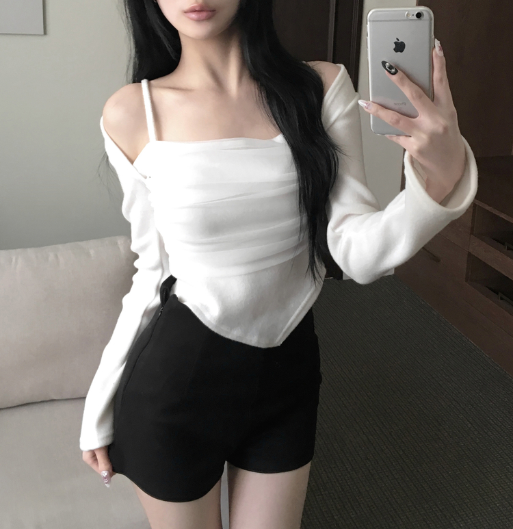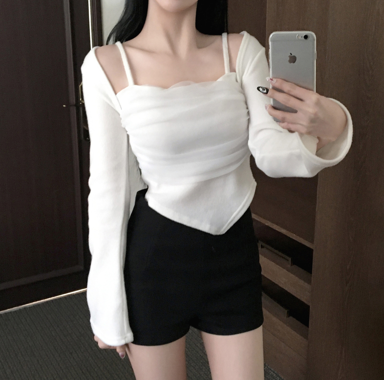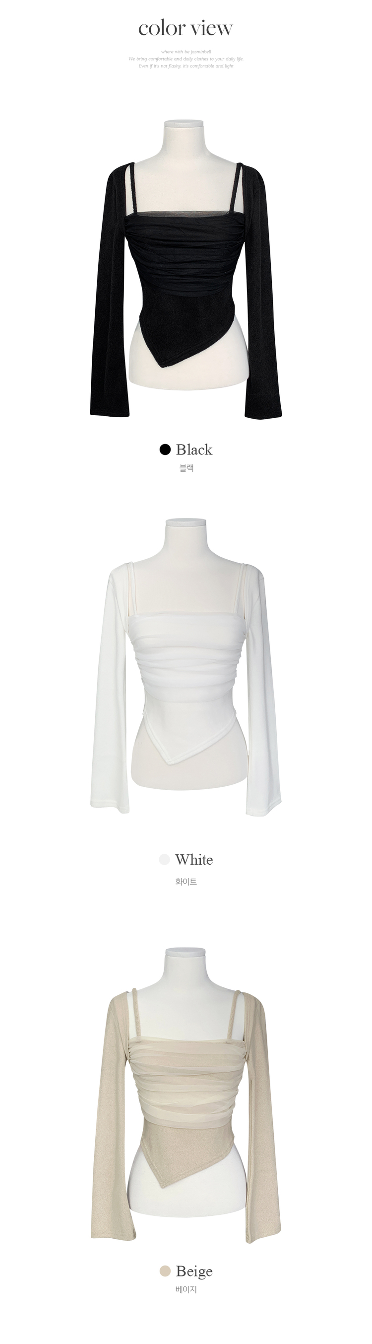 STS74437 나밋 셔링 레이스 망사 볼레로 겉기모 언발 사선트임 티셔츠