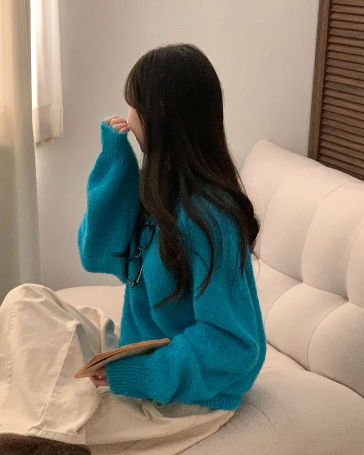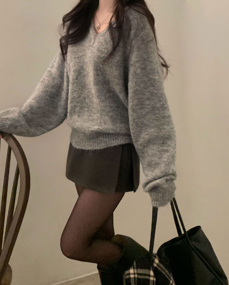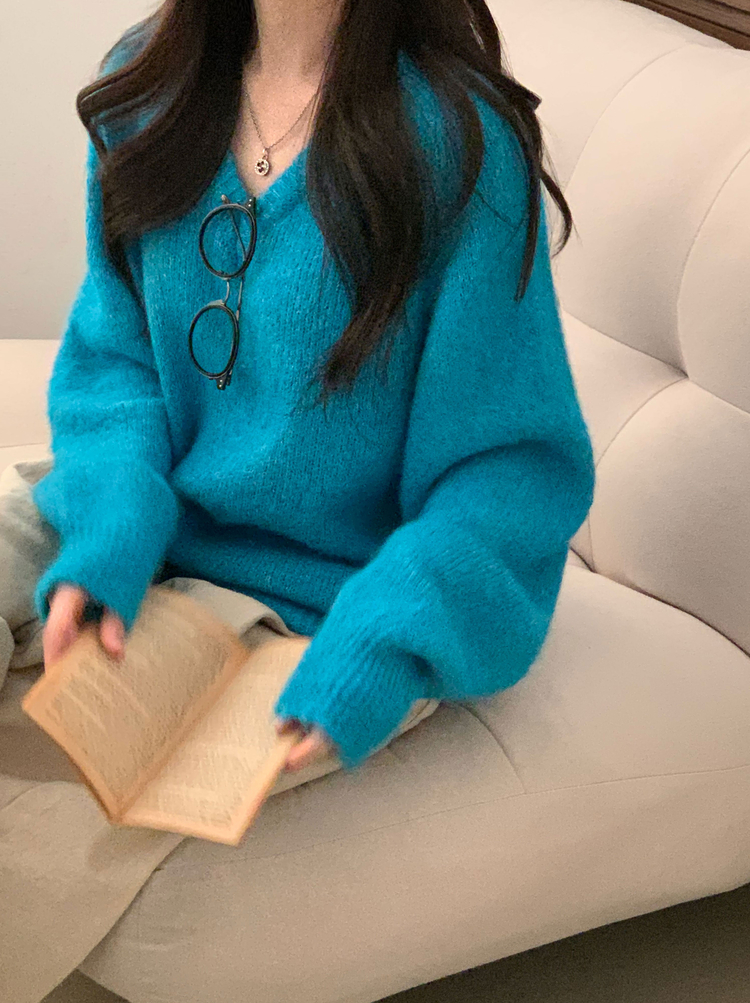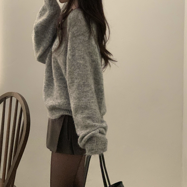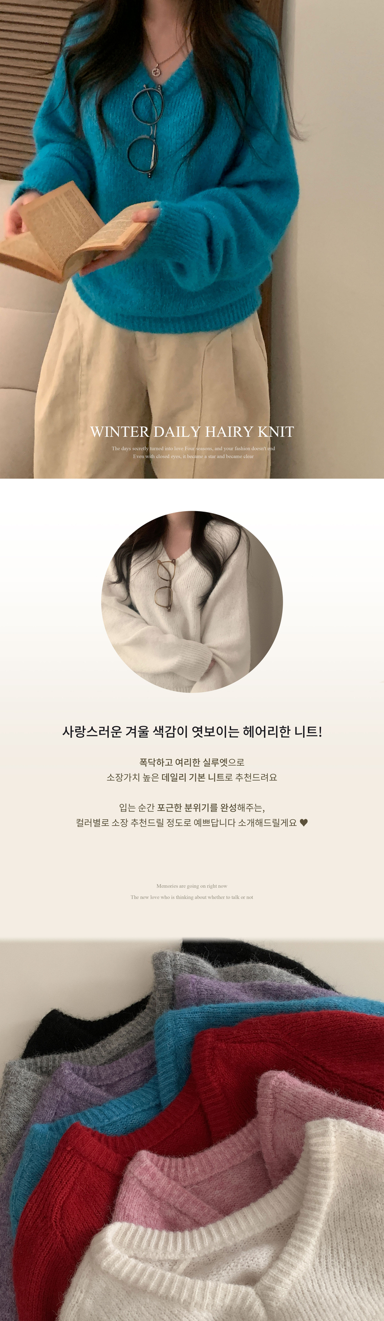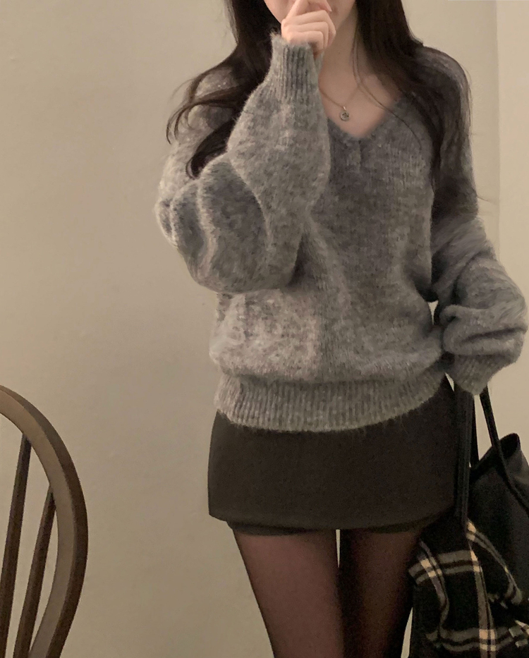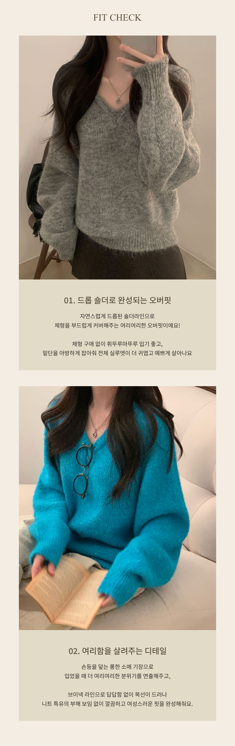 SNT34657 스웰 모헤어 브이넥 루즈핏 긴팔니트