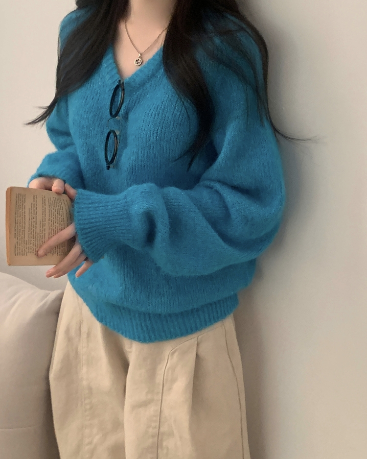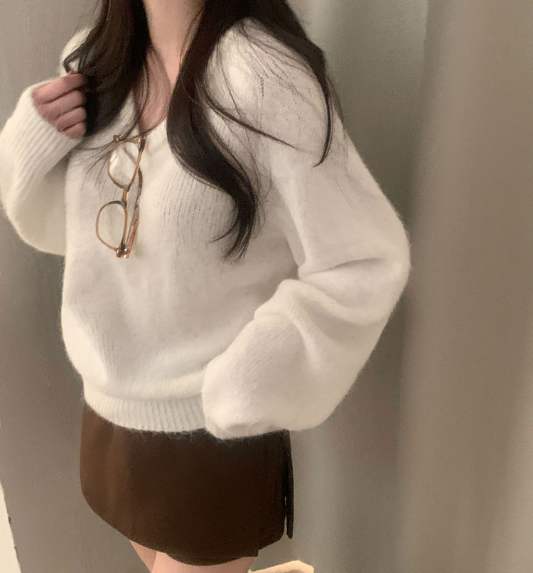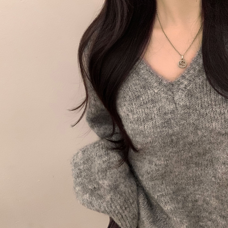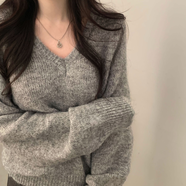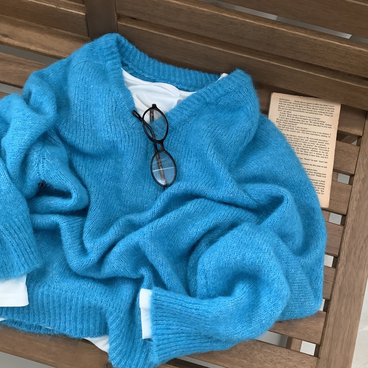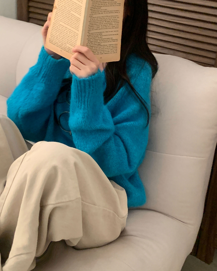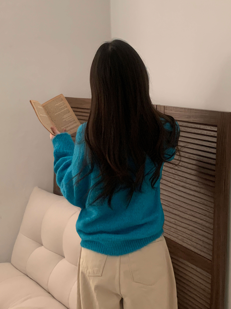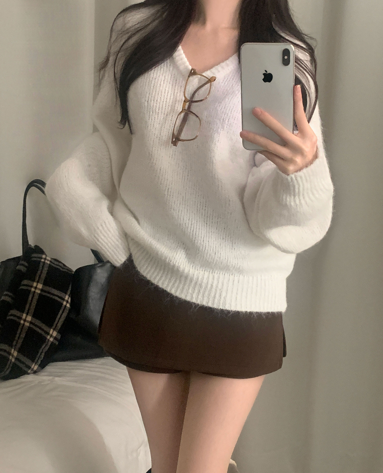SNT34657 스웰 모헤어 브이넥 루즈핏 긴팔니트