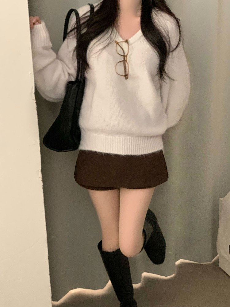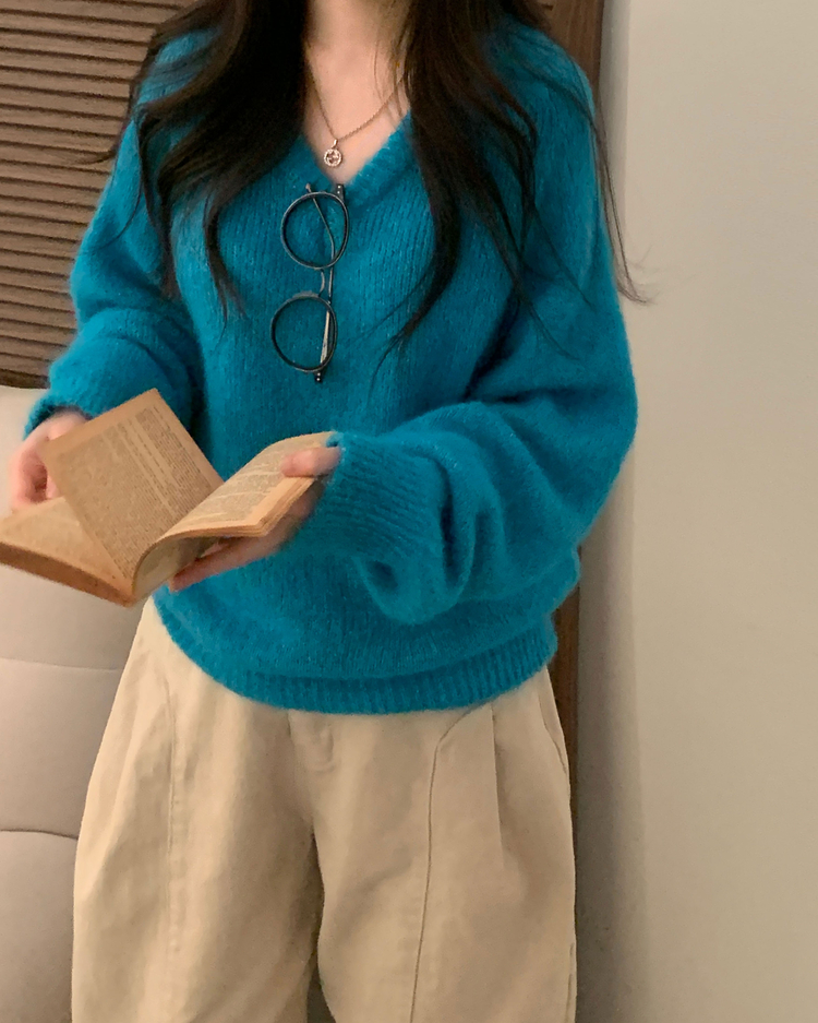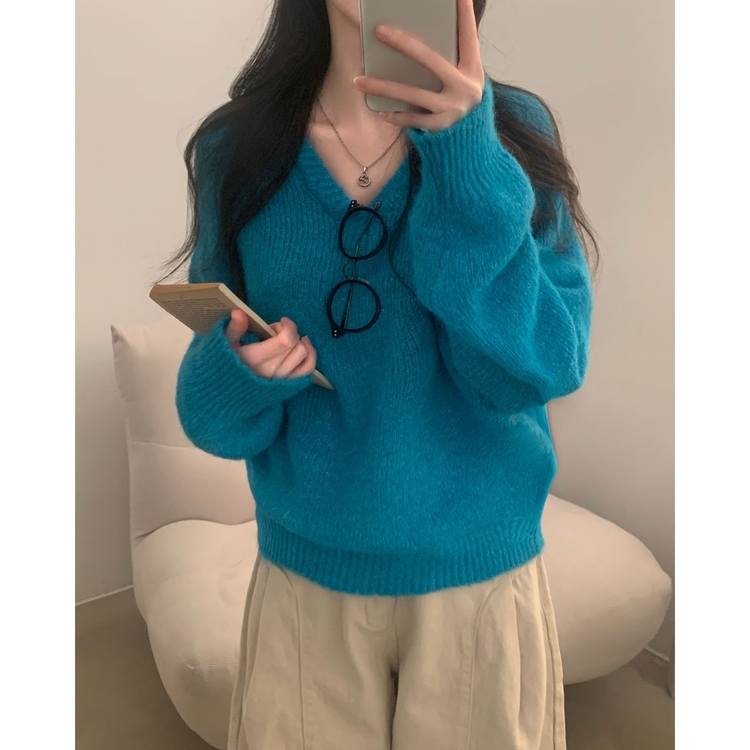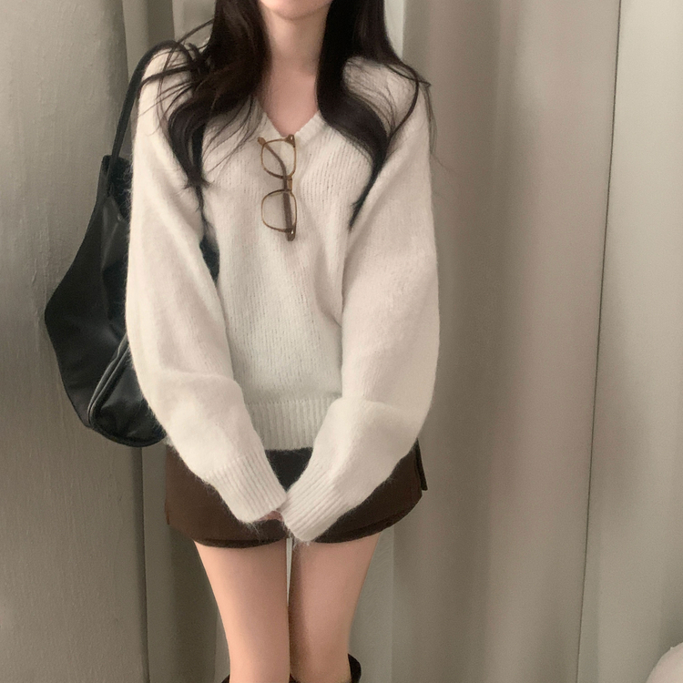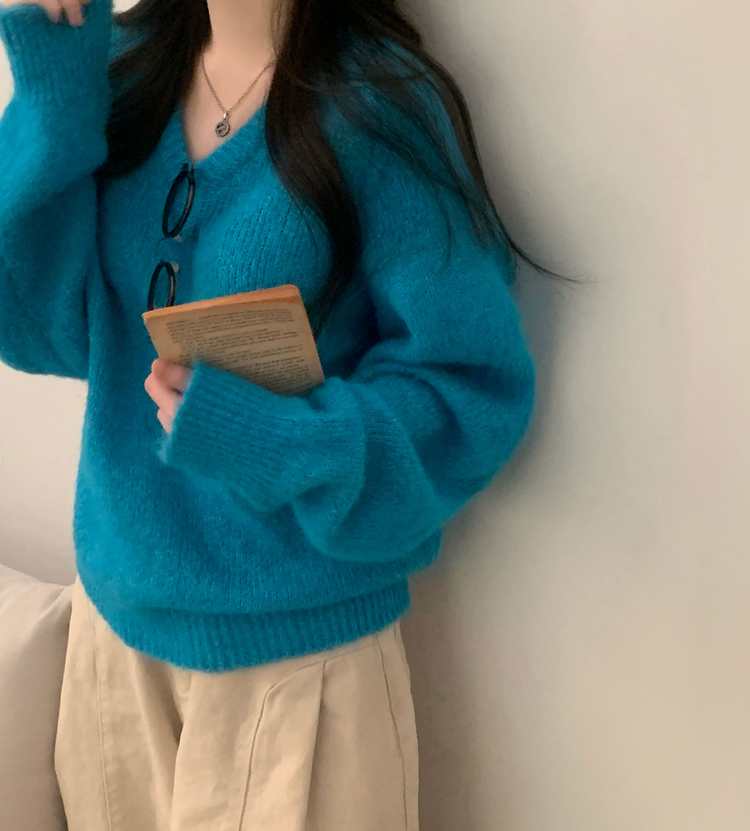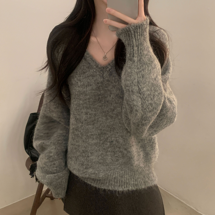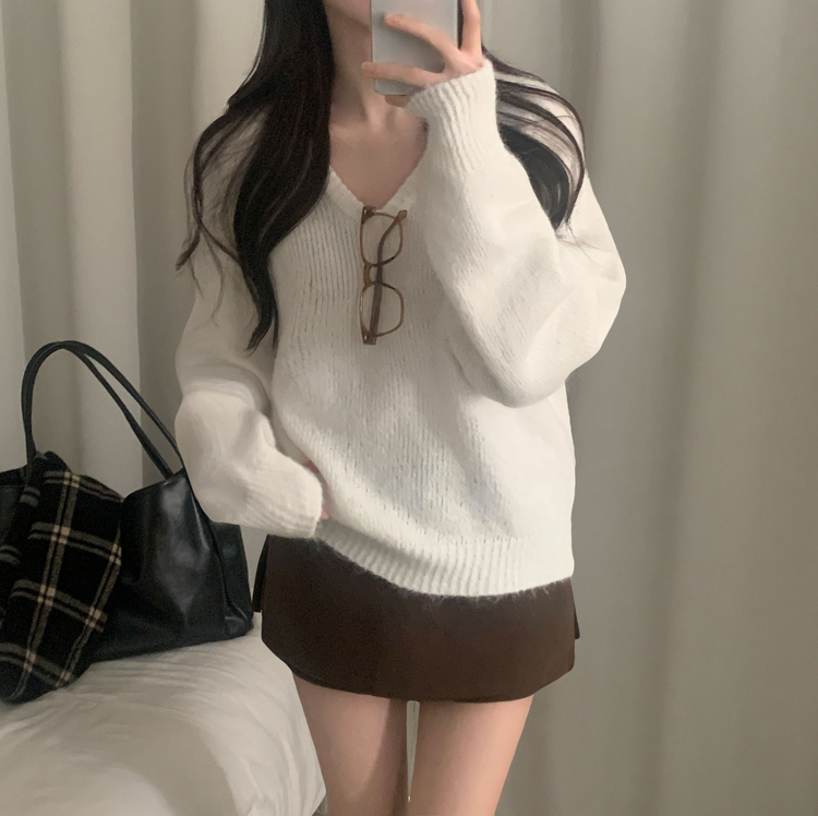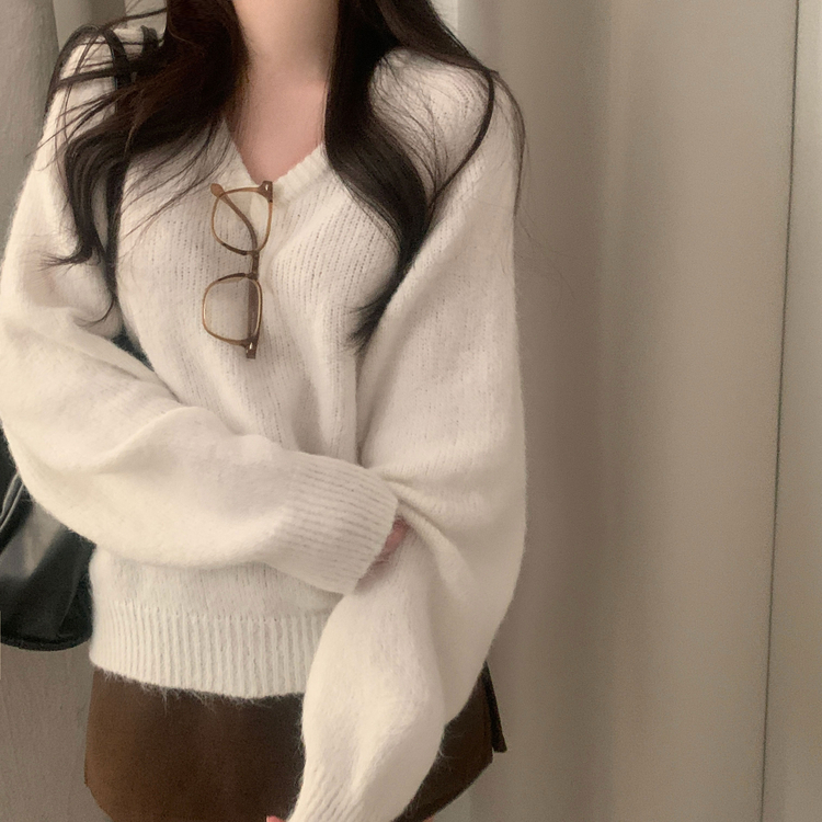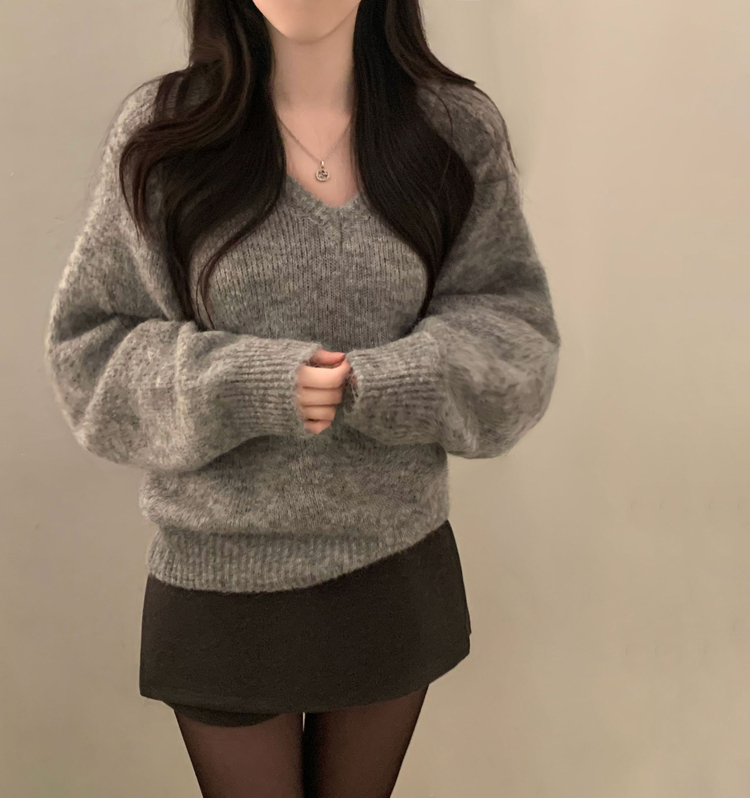 SNT34657 스웰 모헤어 브이넥 루즈핏 긴팔니트