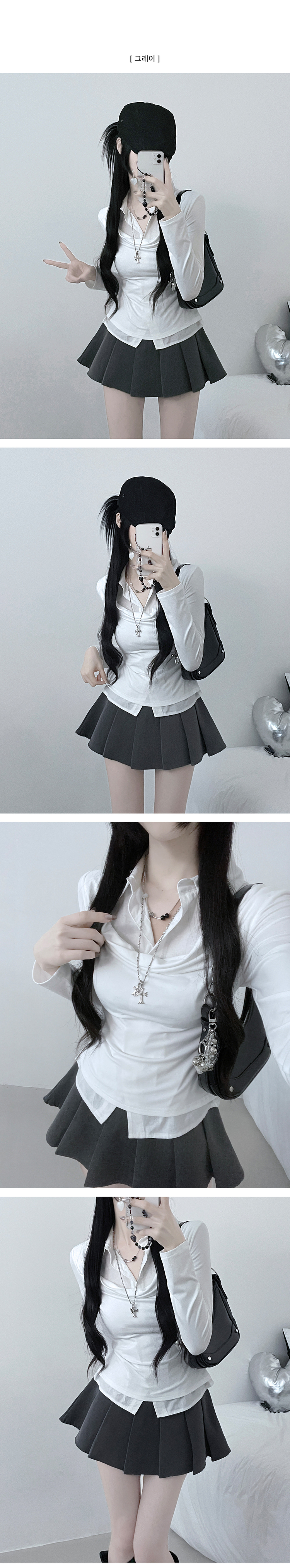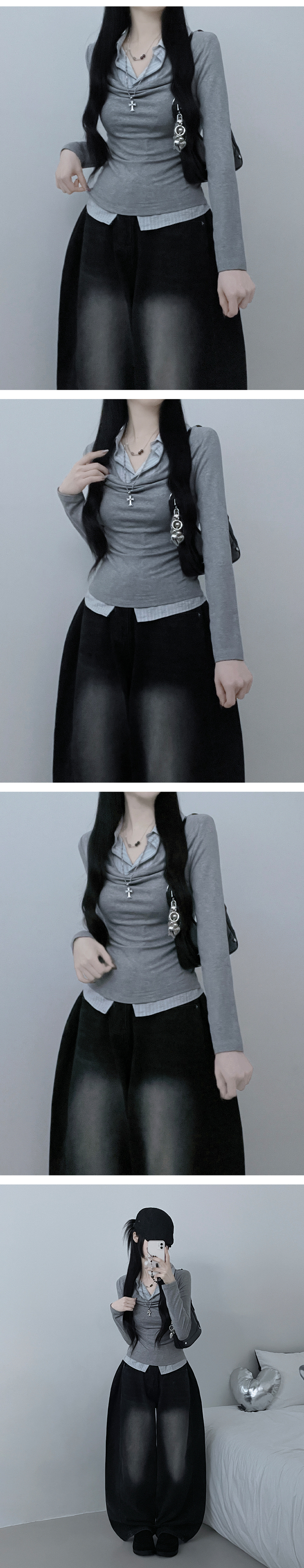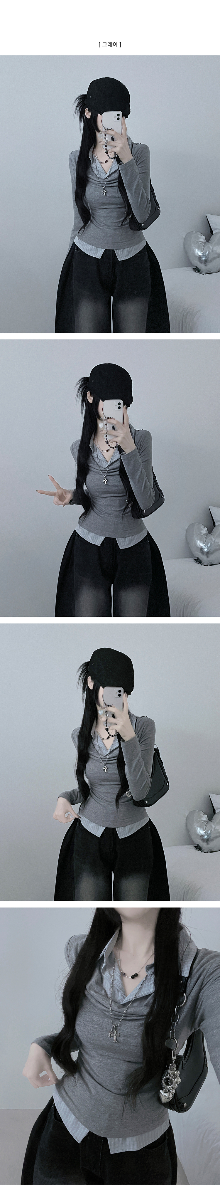 STS74521 루벤셔츠레이어드셔링드레이프슬림긴팔티