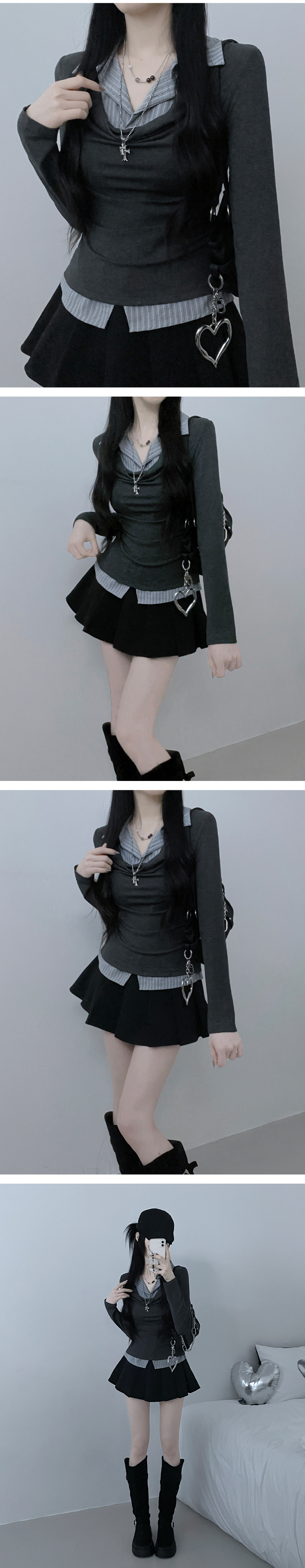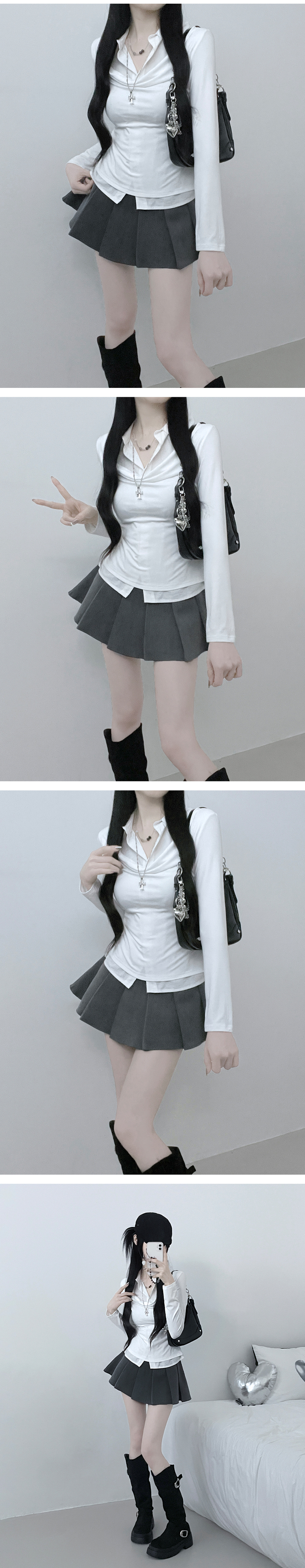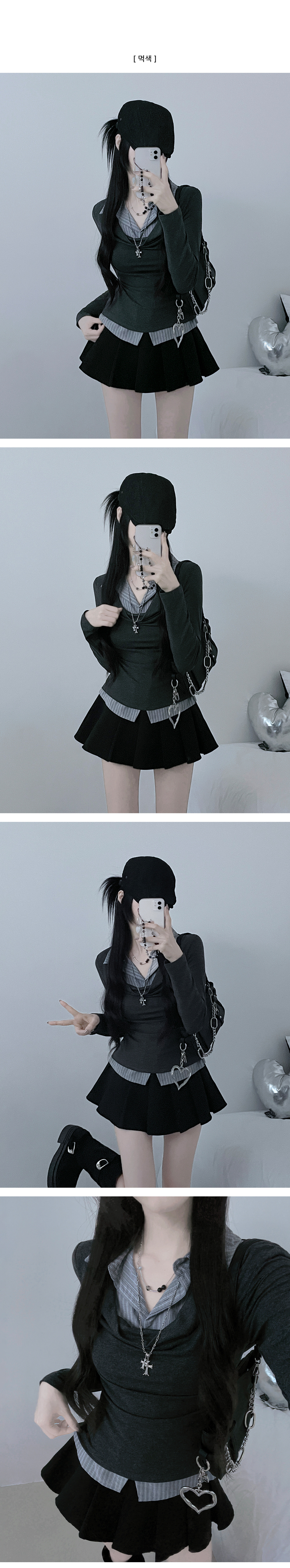 STS74521 루벤셔츠레이어드셔링드레이프슬림긴팔티