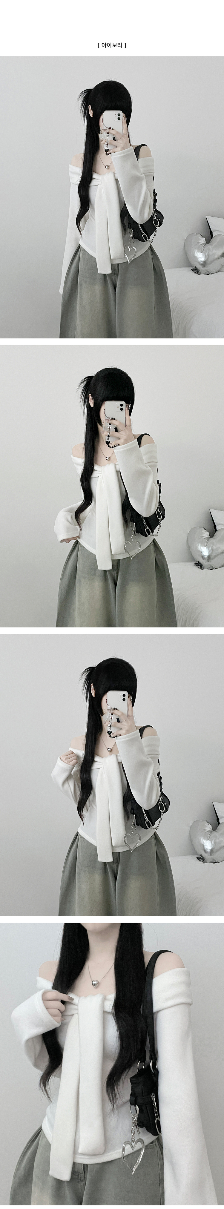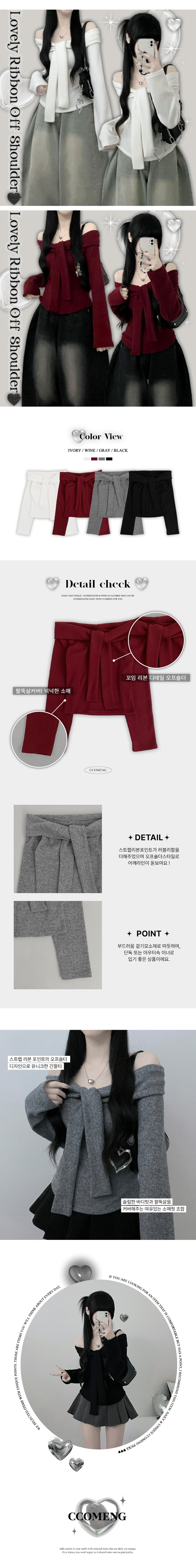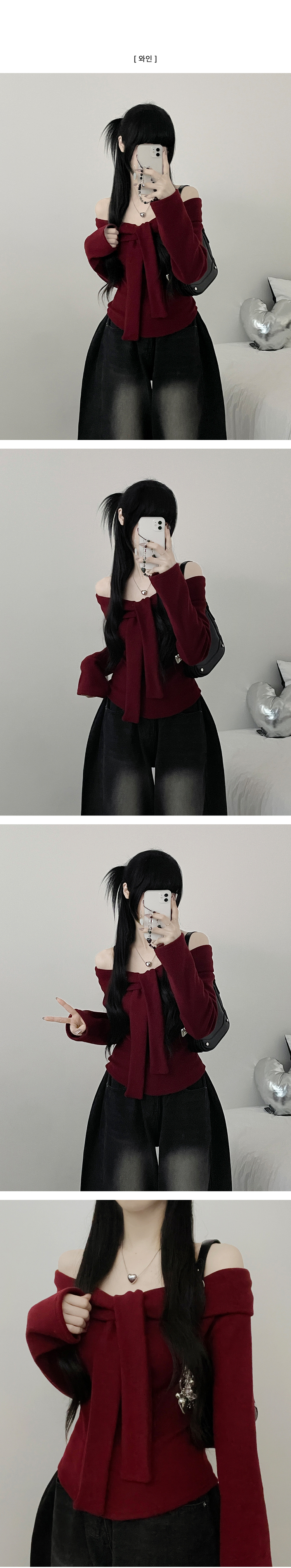 STS74551 디엘꼬임리본오프숄더기모긴팔티셔츠