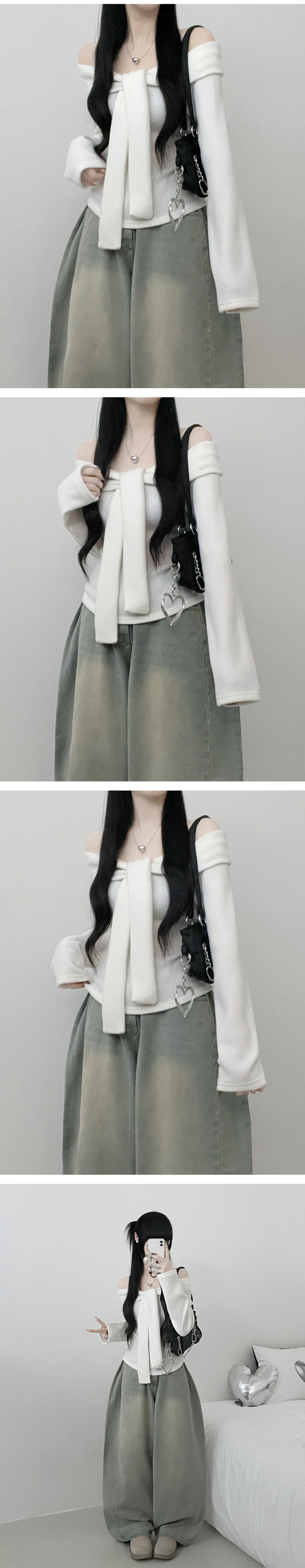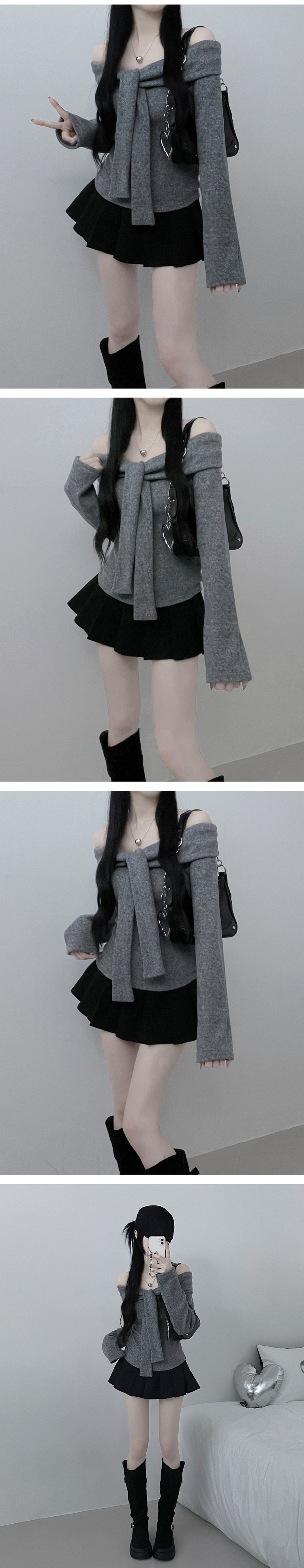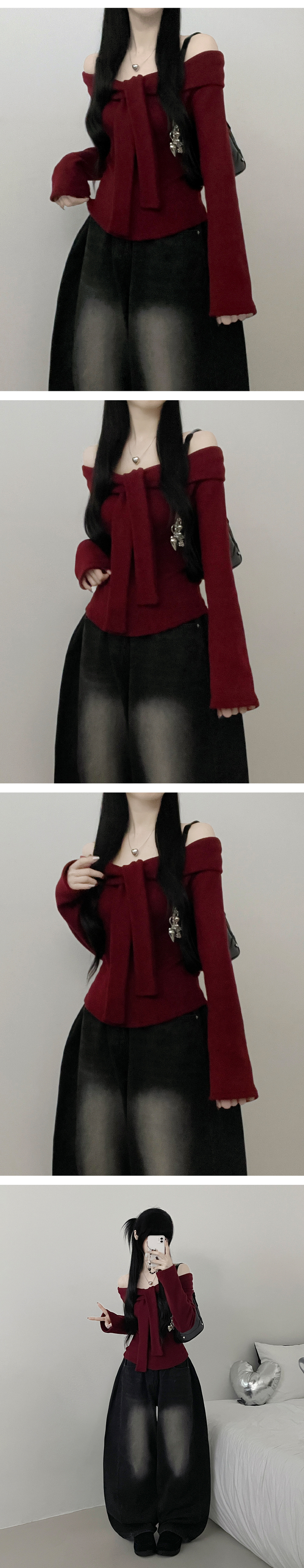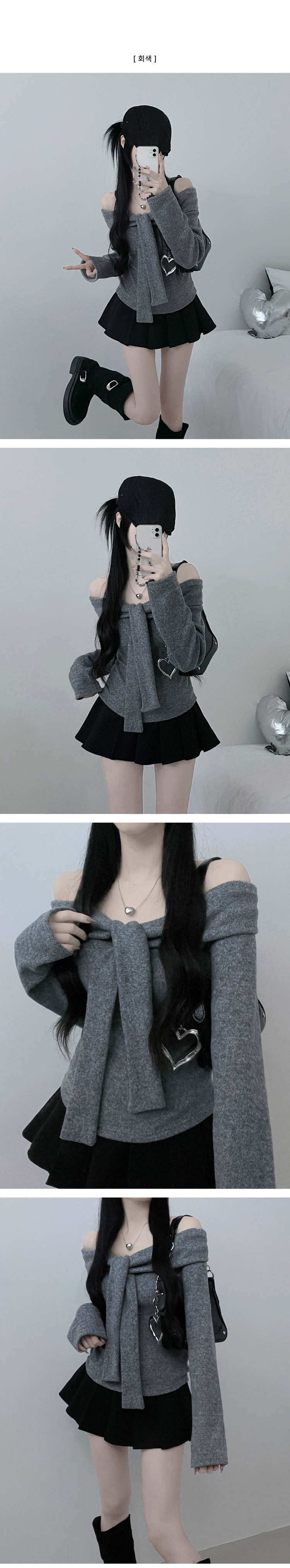 STS74551 디엘꼬임리본오프숄더기모긴팔티셔츠