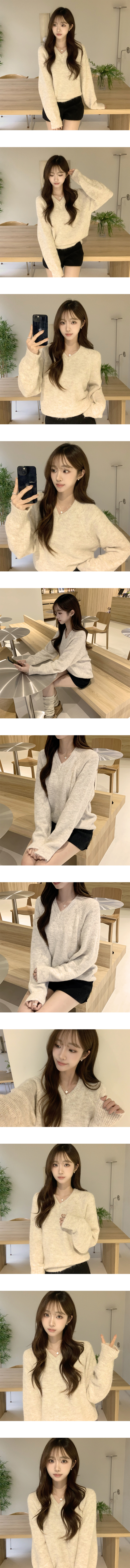 SNT34741 배배 브이넥 루즈핏 겨울 긴팔 울 니트 데일리 오버핏 기본 상의 6color