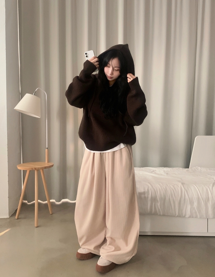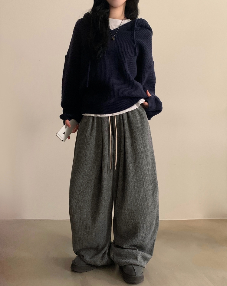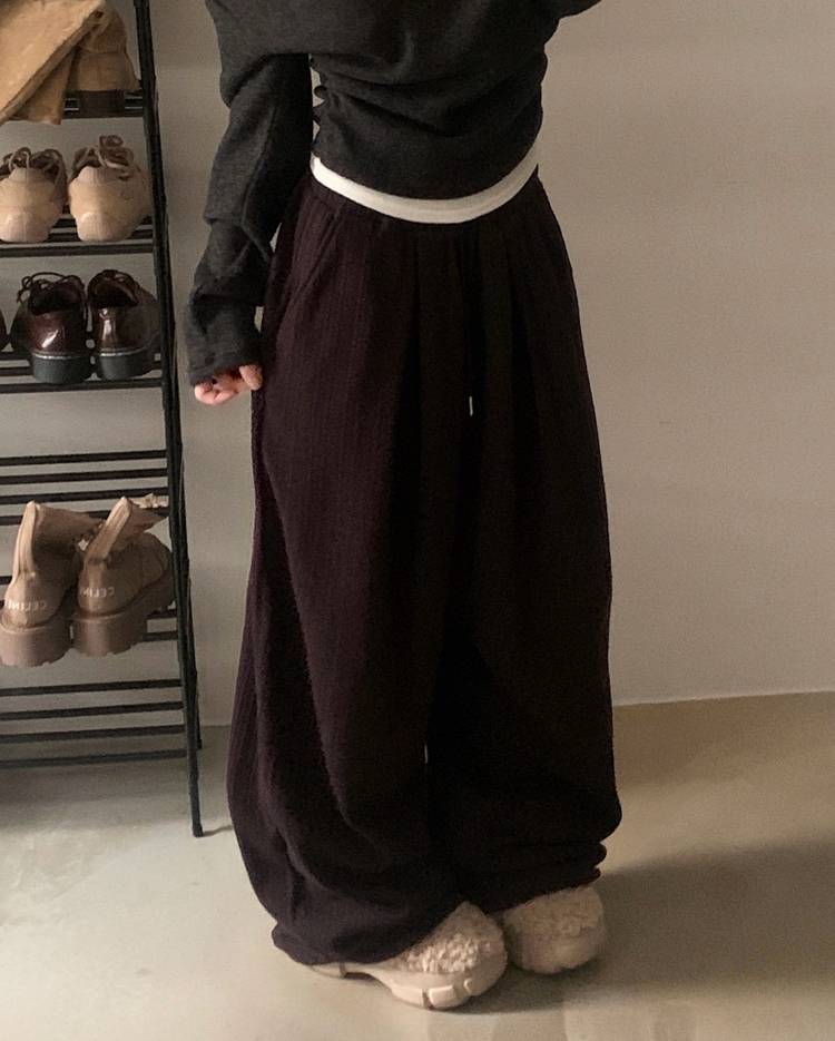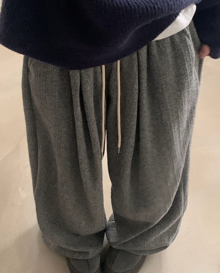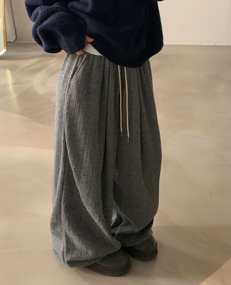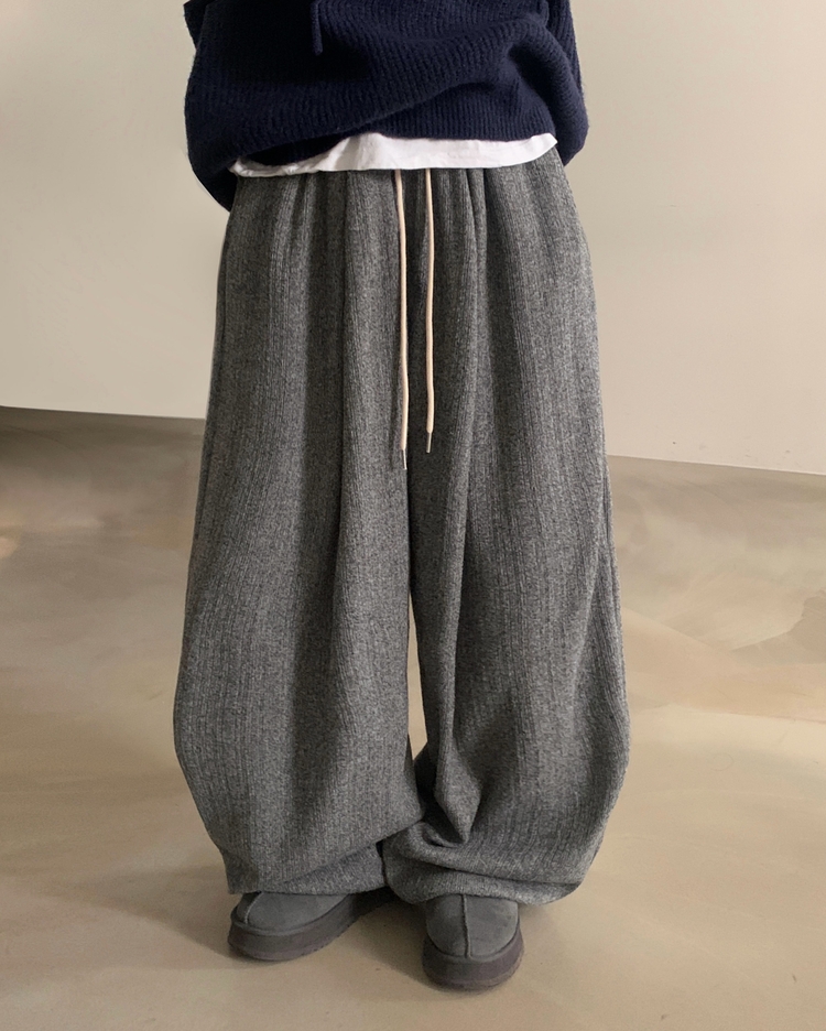 SPS38094 그레인 핀턱 골지니트 와이드 롱팬츠