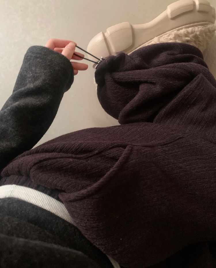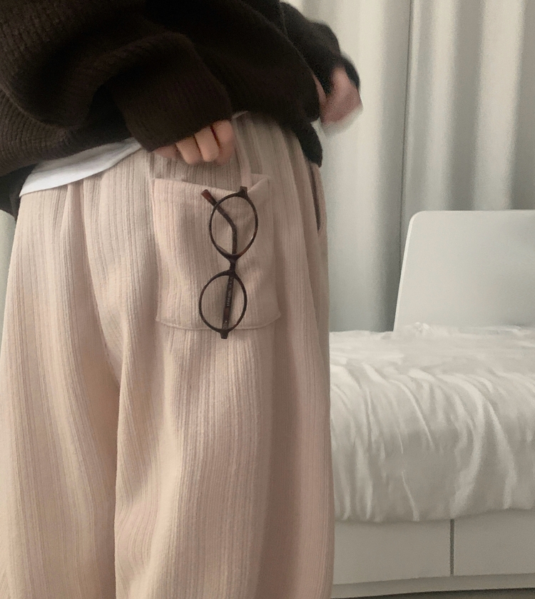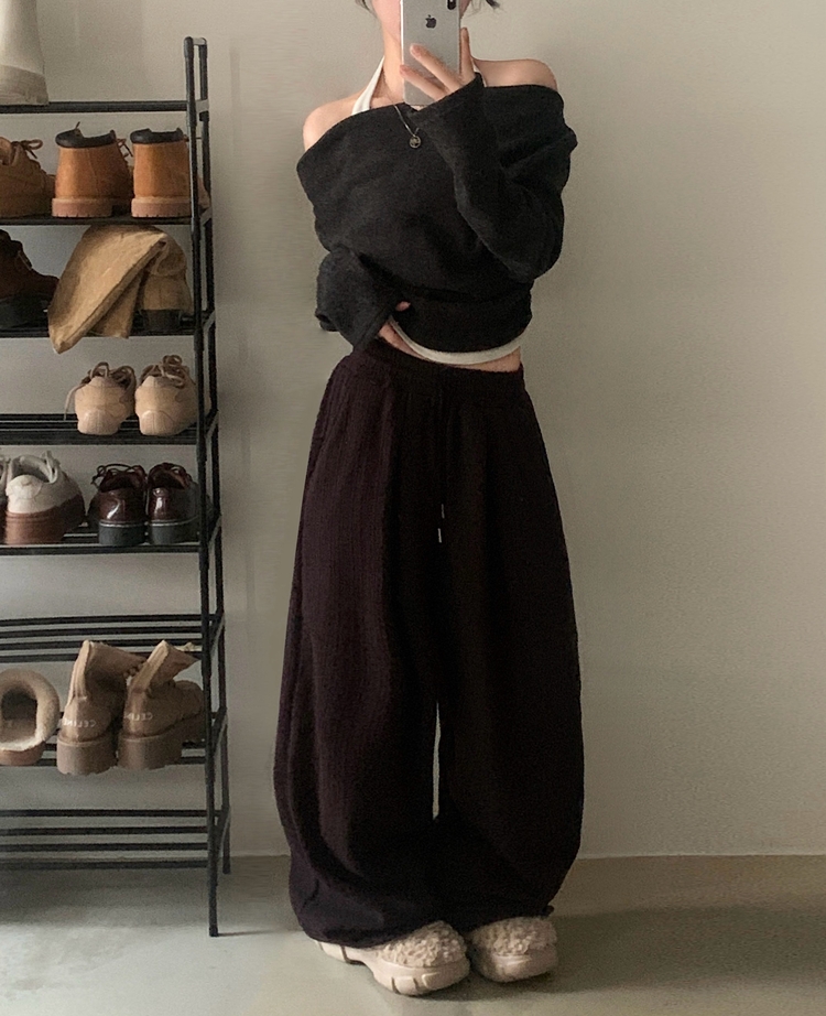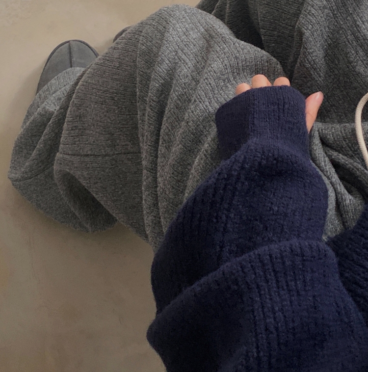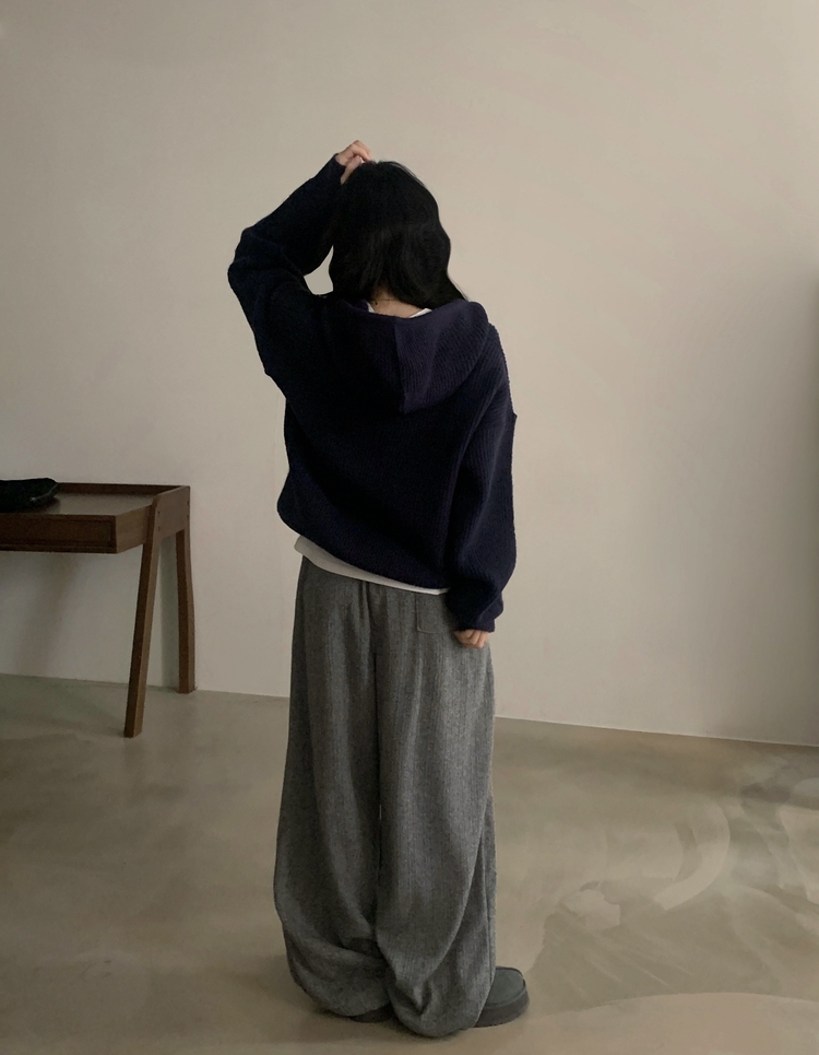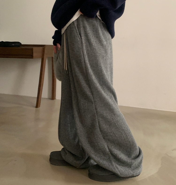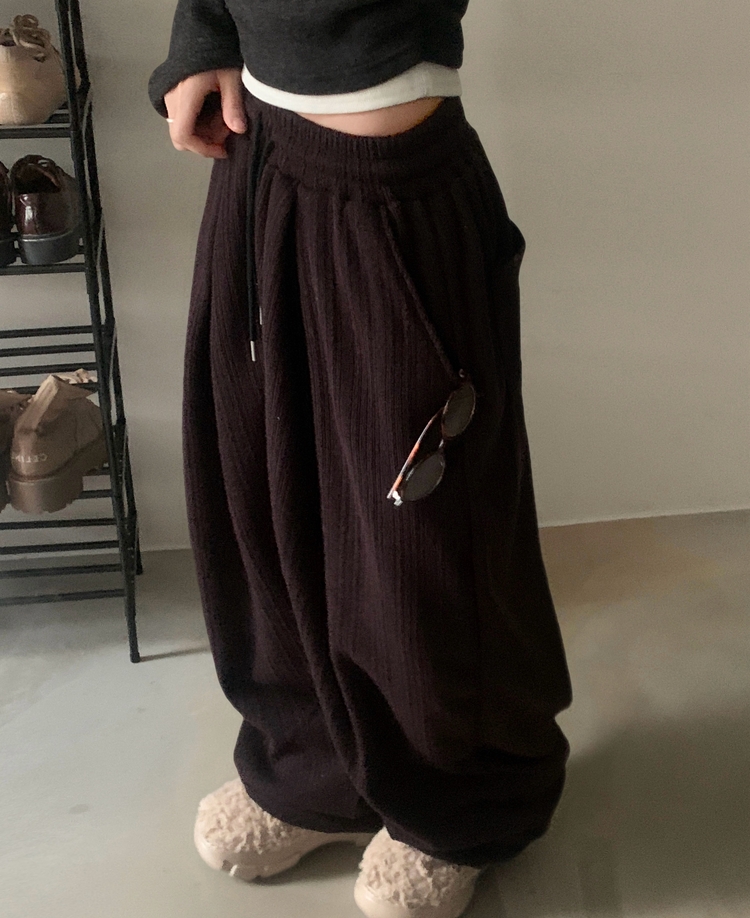SPS38094 그레인 핀턱 골지니트 와이드 롱팬츠