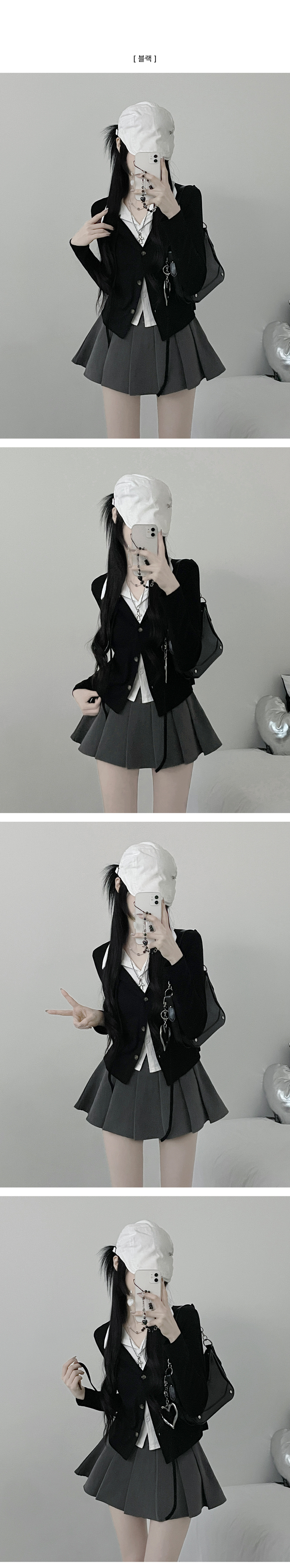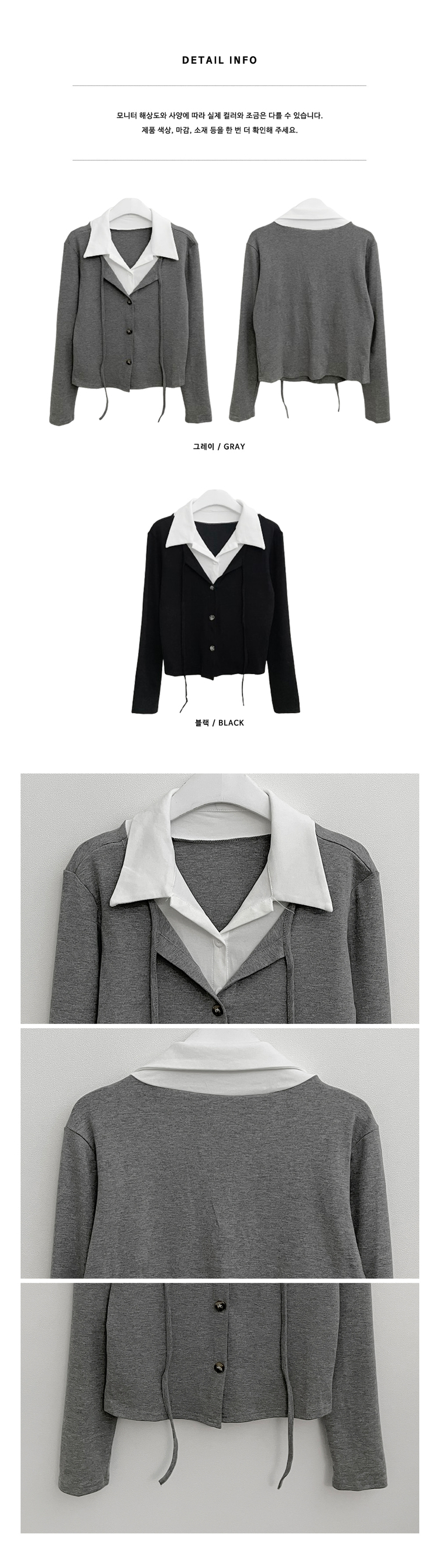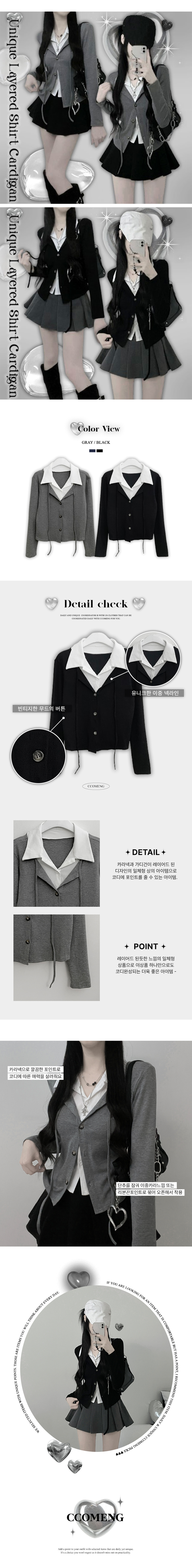 SGD30528 퍼빗카라셔츠레이어드배색리본가디건세트