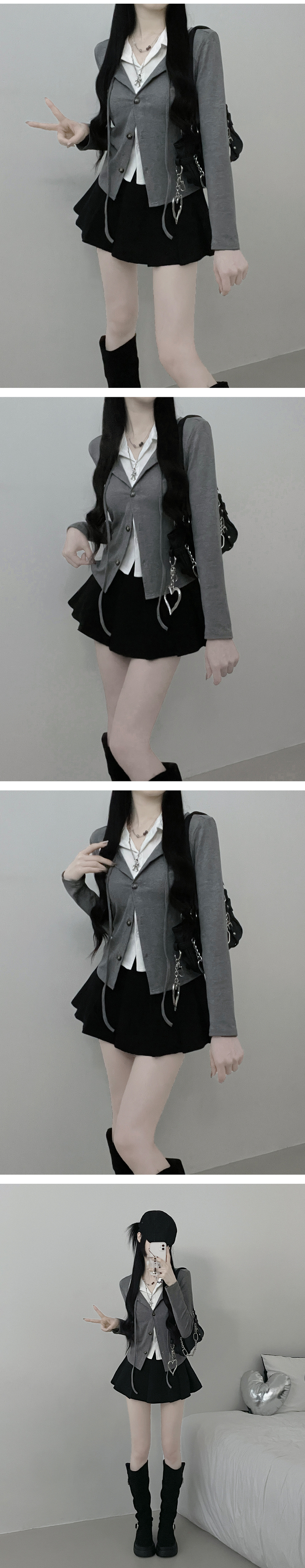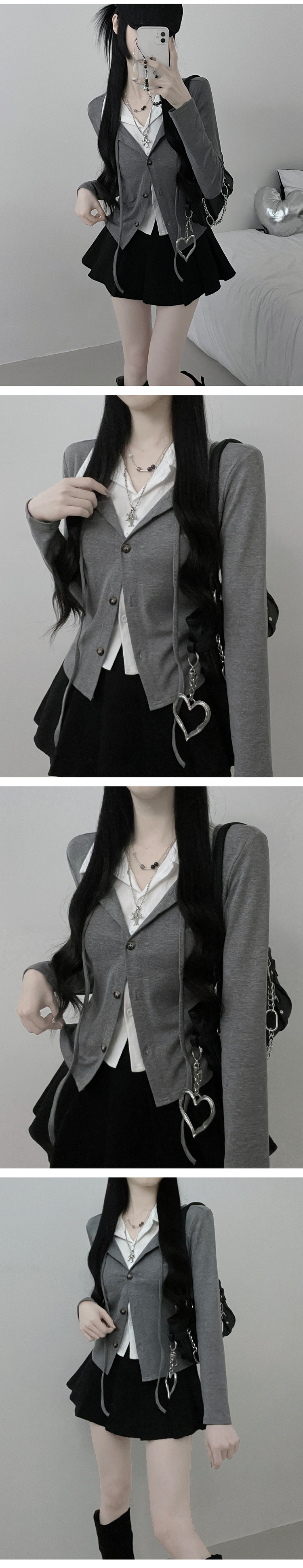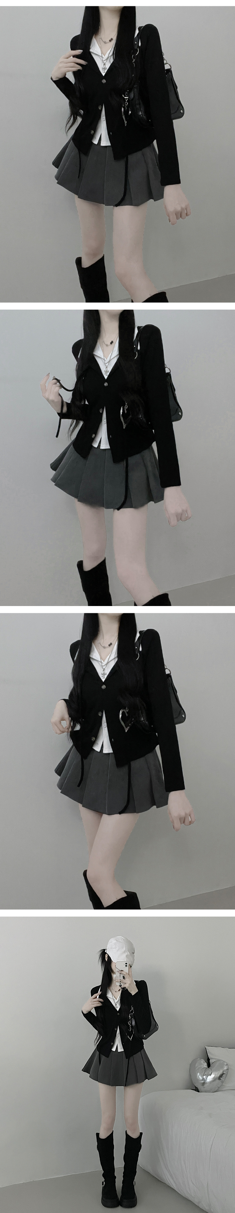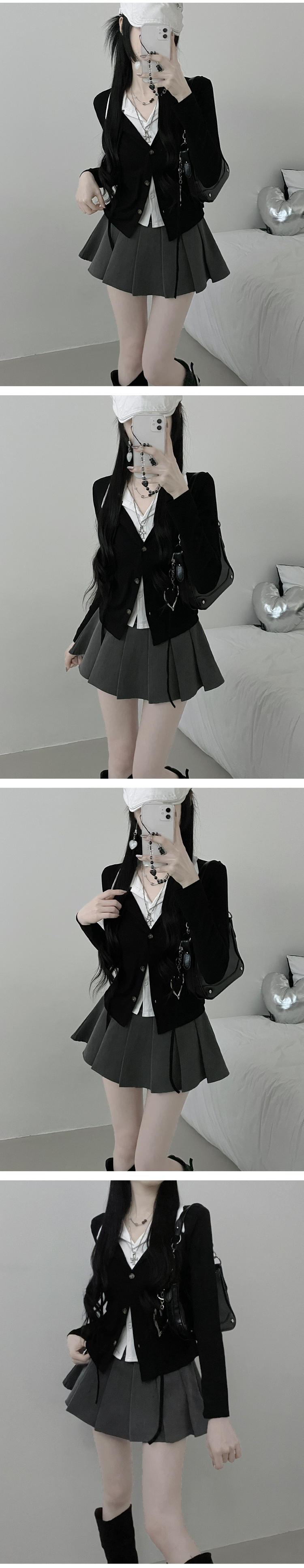 SGD30528 퍼빗카라셔츠레이어드배색리본가디건세트