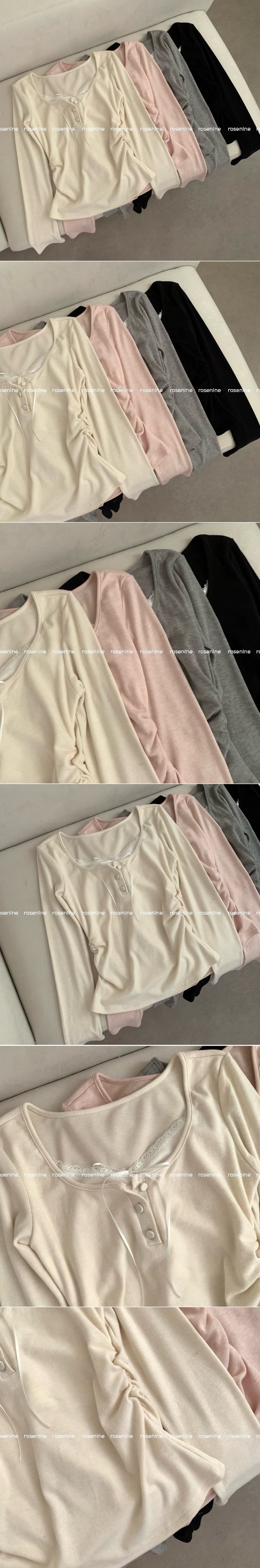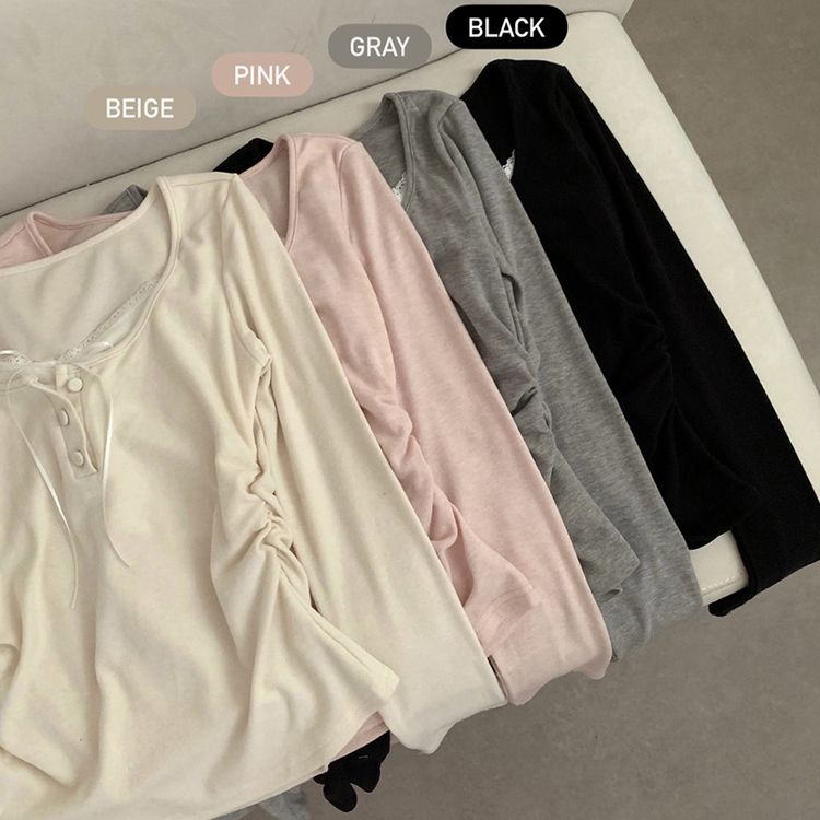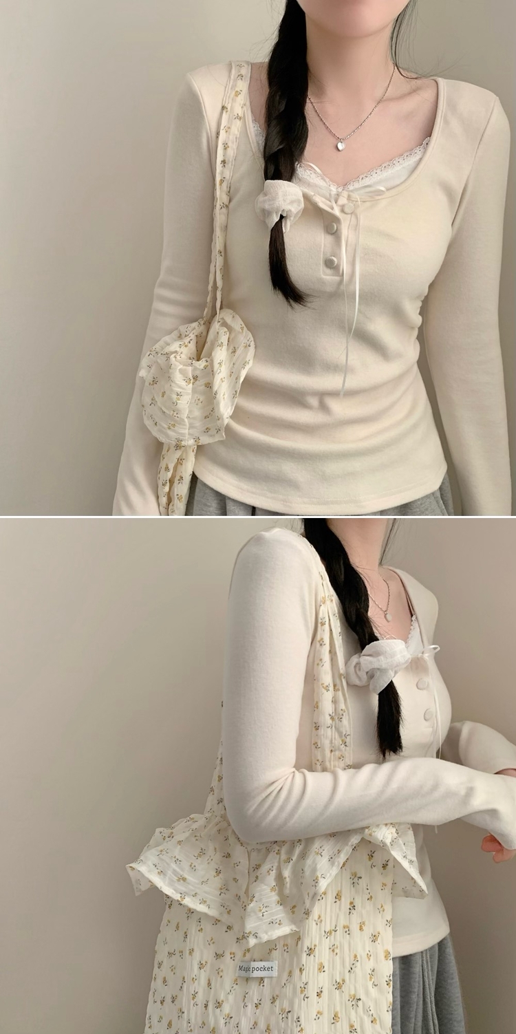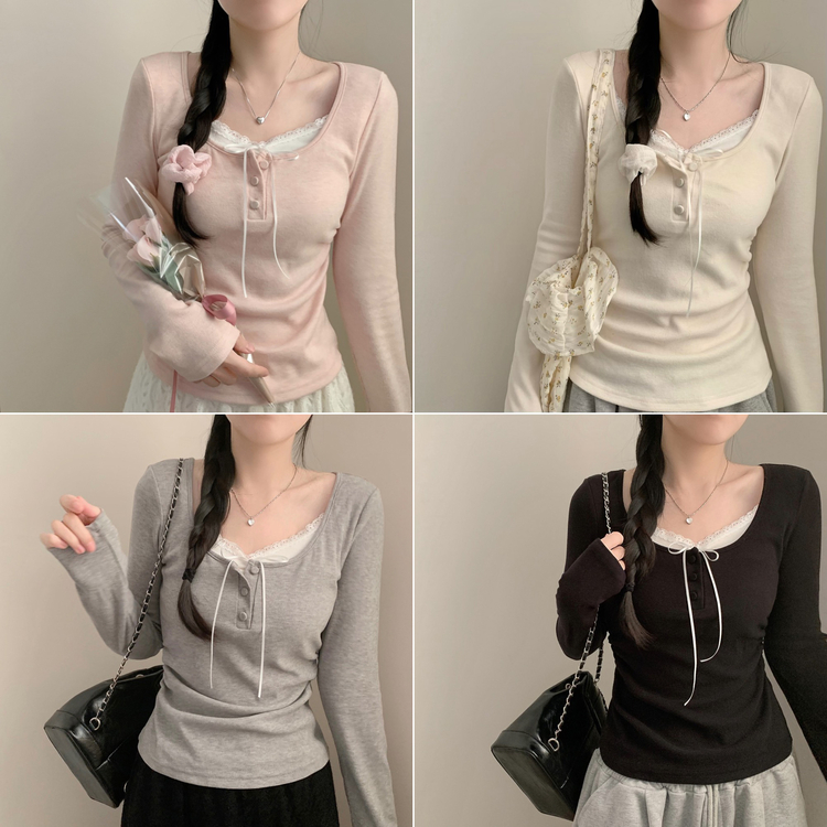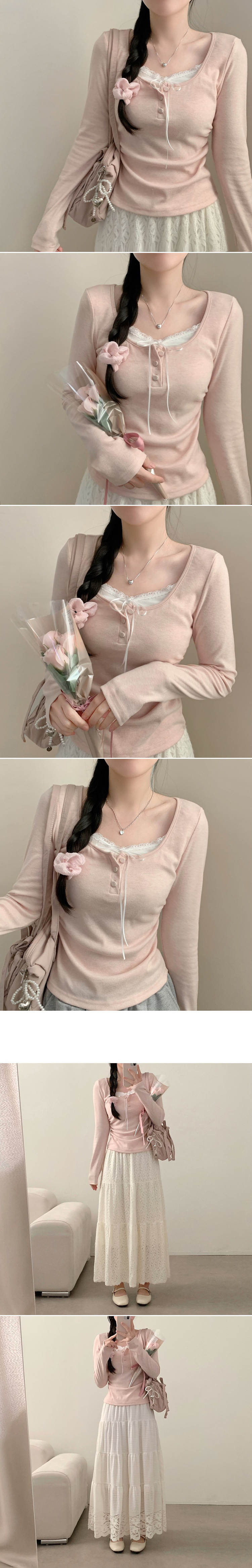 STS74670 코코 봄 레이어드 레이스 단추 리본 긴팔티 롱슬리브 봄옷 벚꽃 긴팔티 긴팔 봄 걸코어 청순 러블리