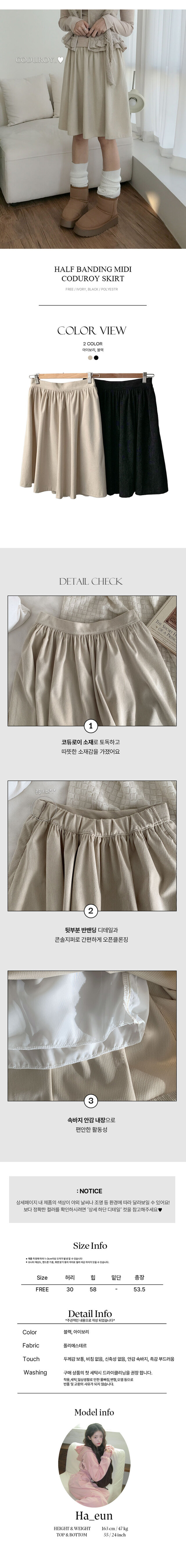 SSK25702 주주 골덴 코듀로이 A라인 뒷밴딩 속바지내장 플레어 미디 스커트