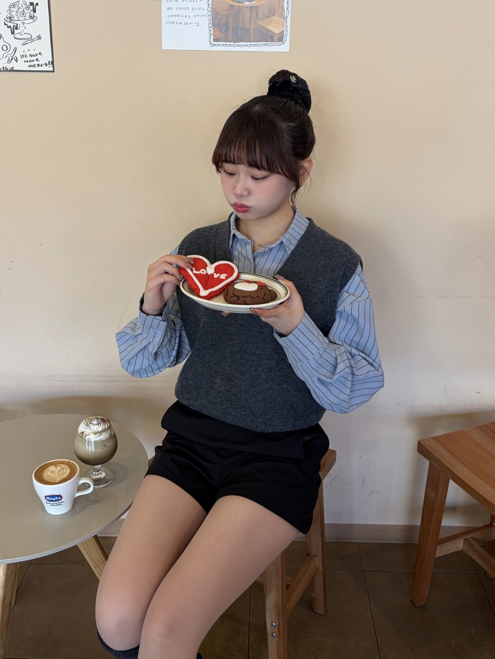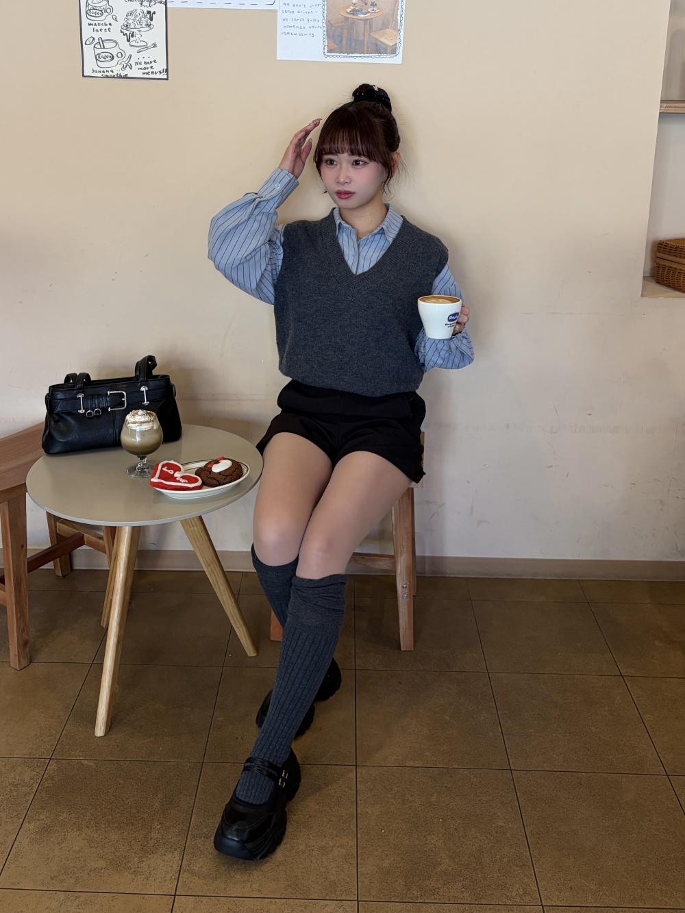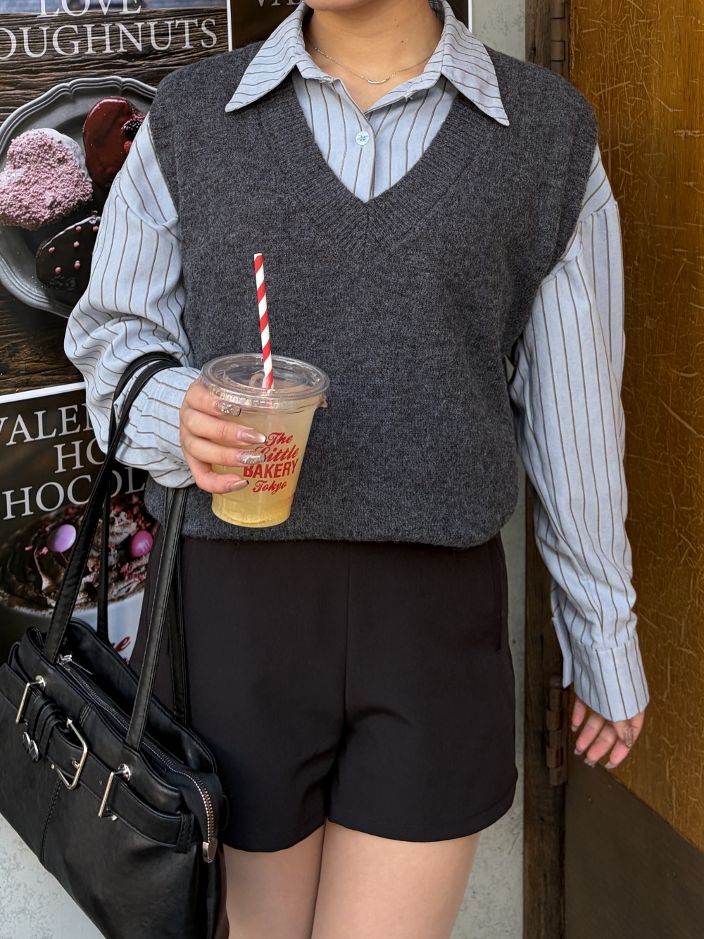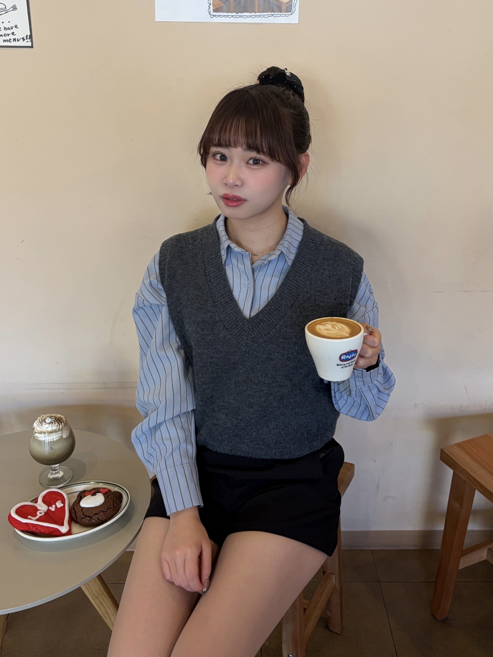 STR5657 【SET】스트라이프 셔츠 니트 조끼 세트
