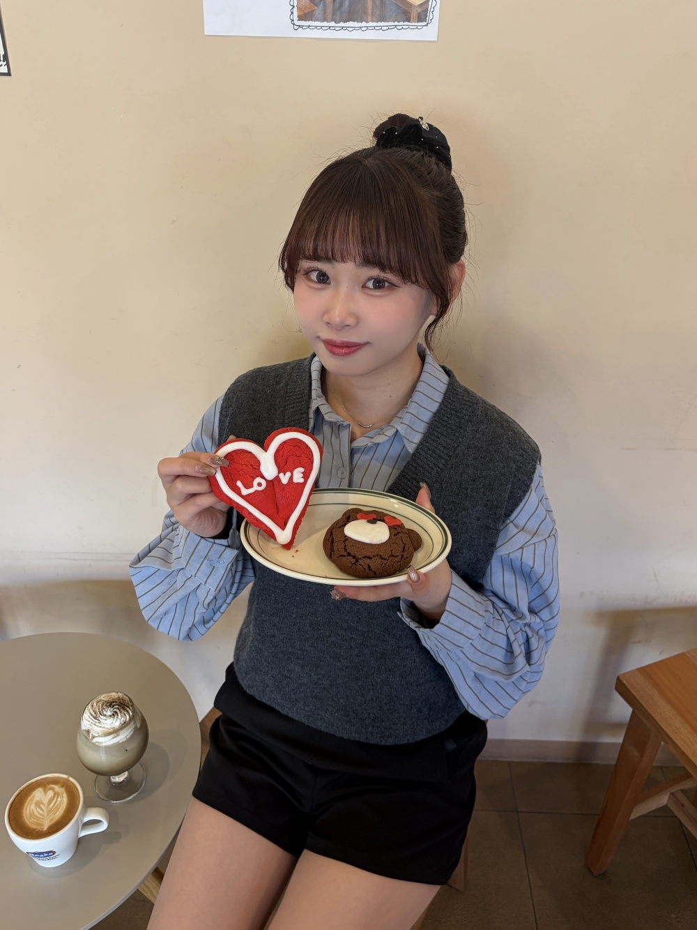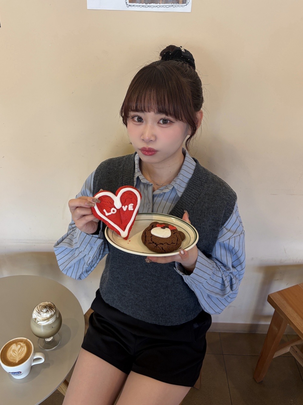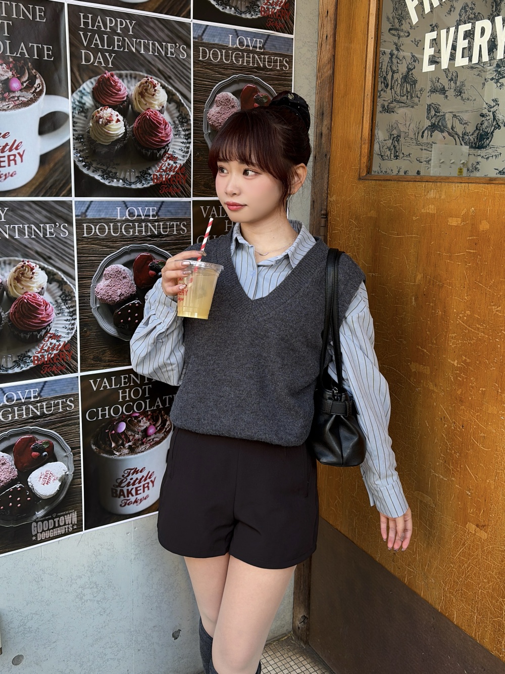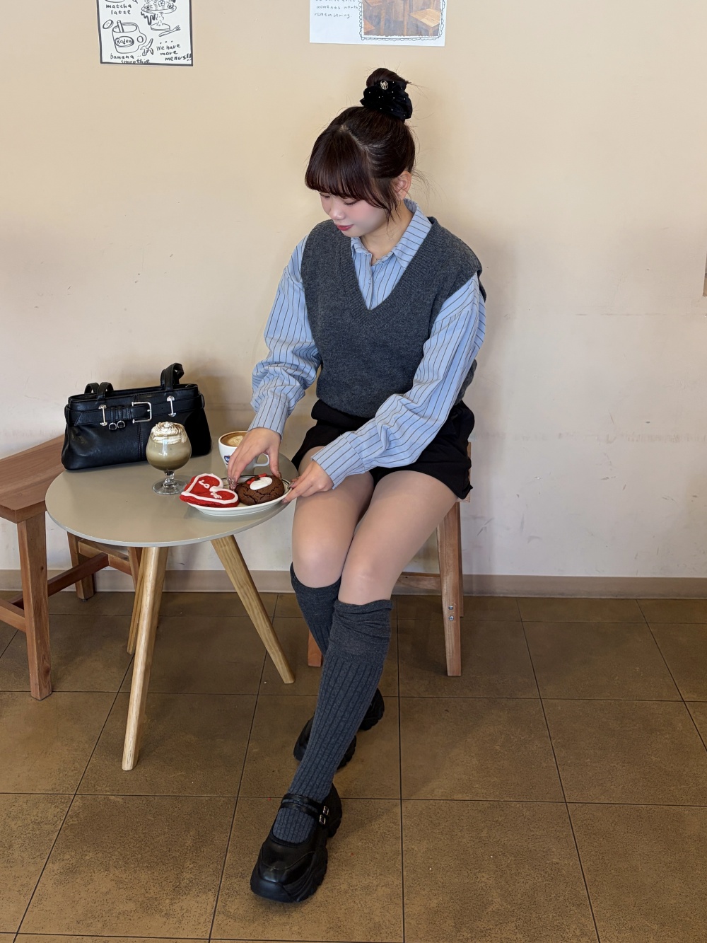 STR5657 【SET】스트라이프 셔츠 니트 조끼 세트
