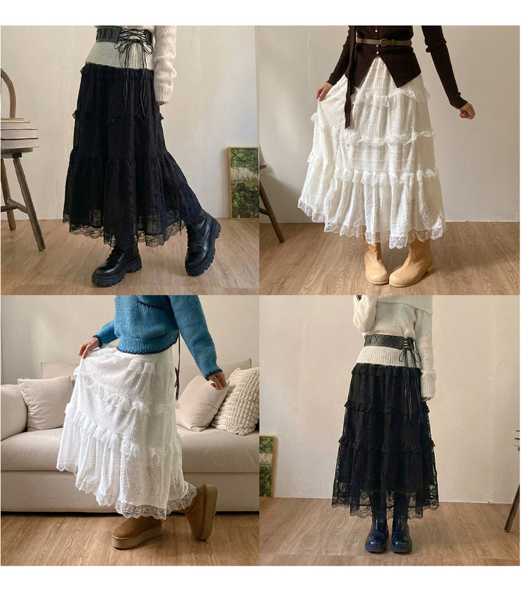 SSK25718 달콤 레이스 빈티지 프릴 캉캉 모리걸 롱 스커트
