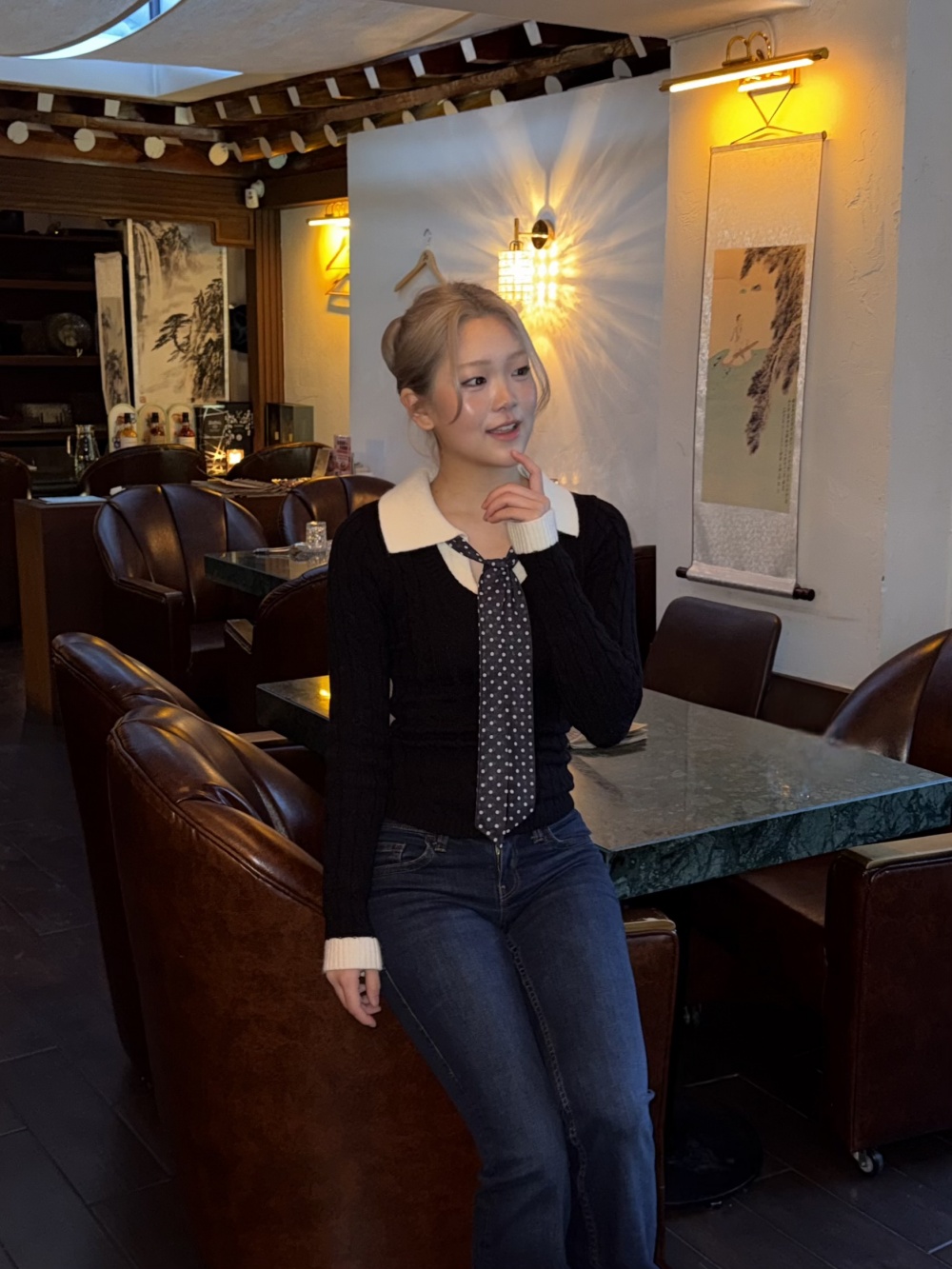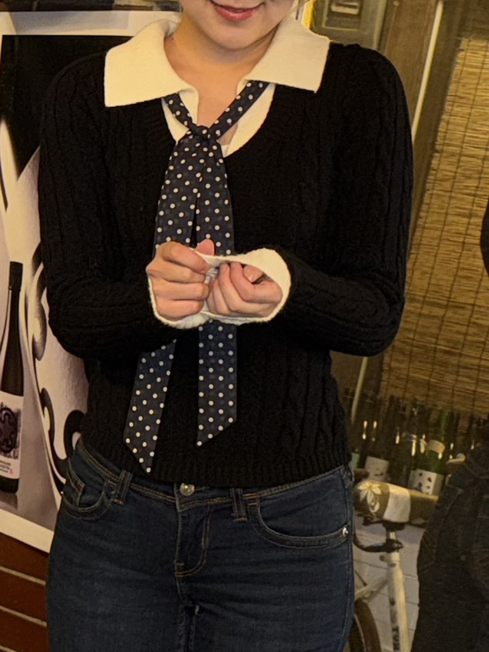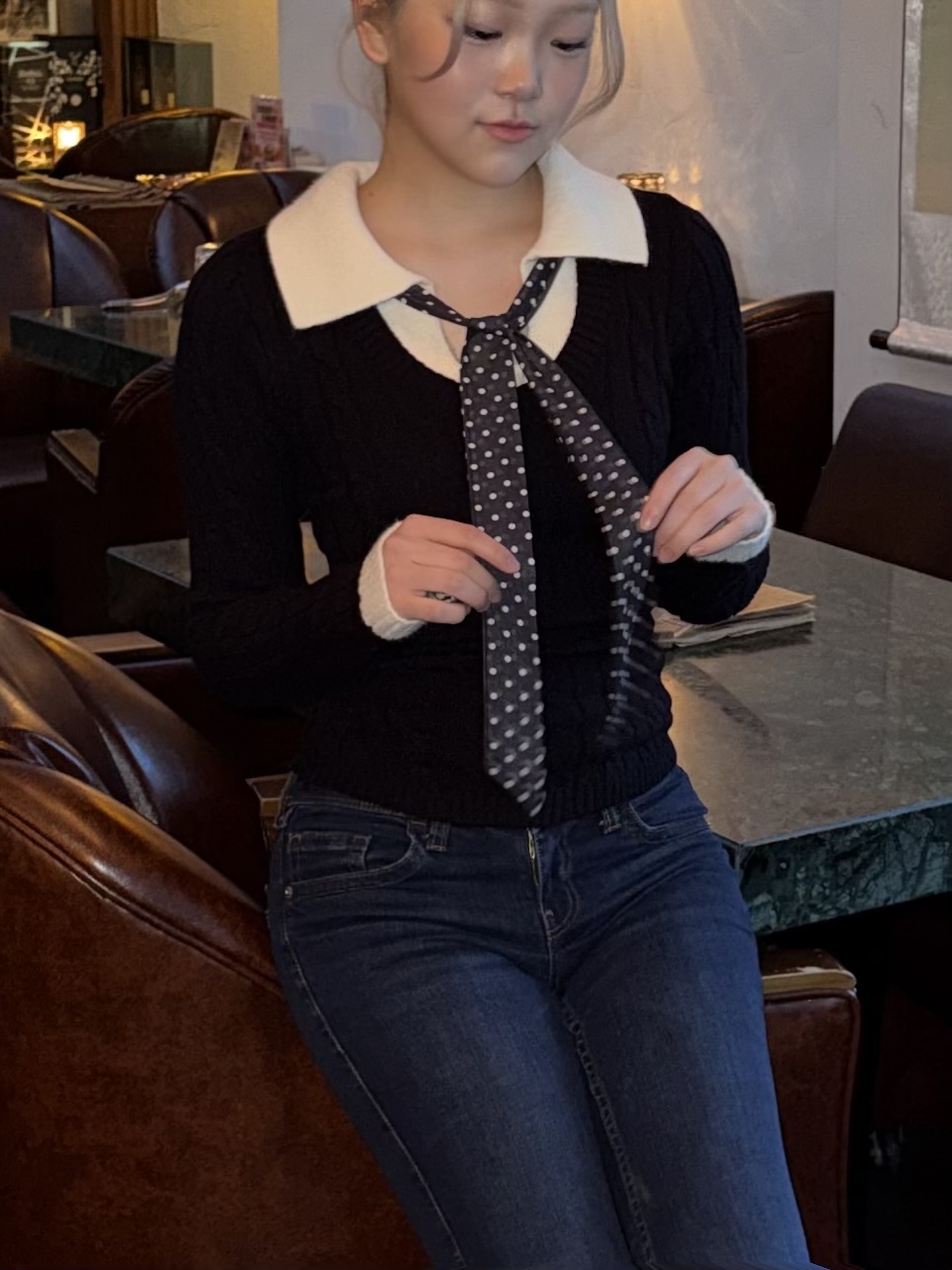 SNT34901 (세트)도트 타이 니트