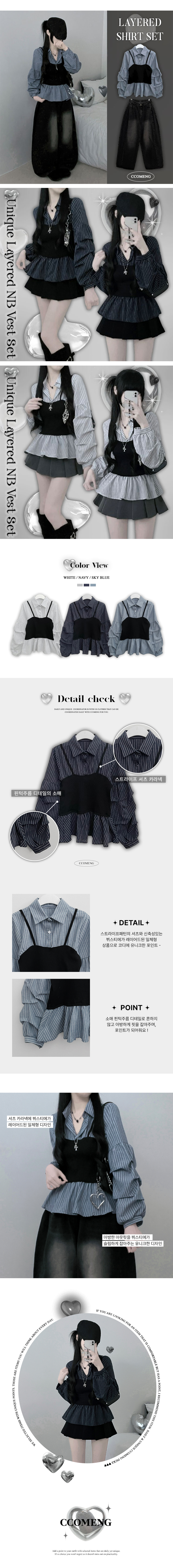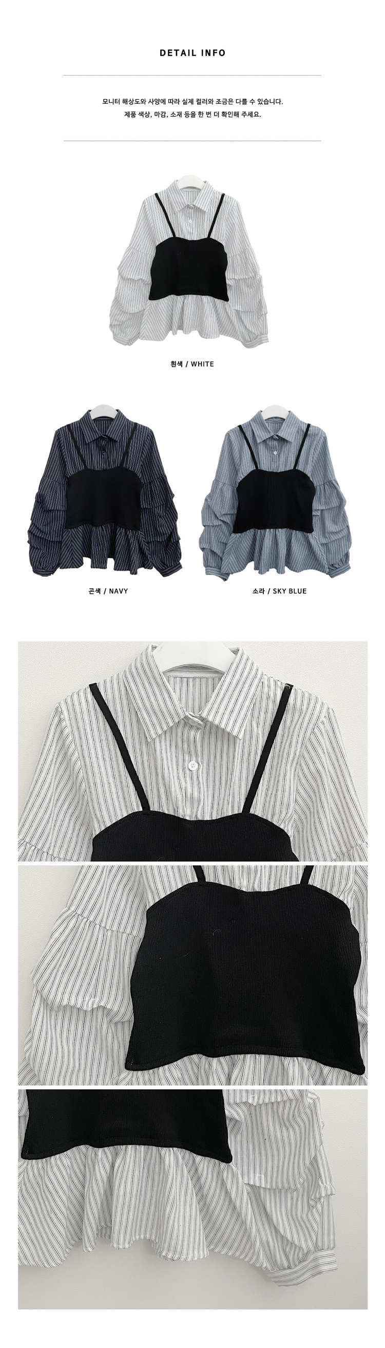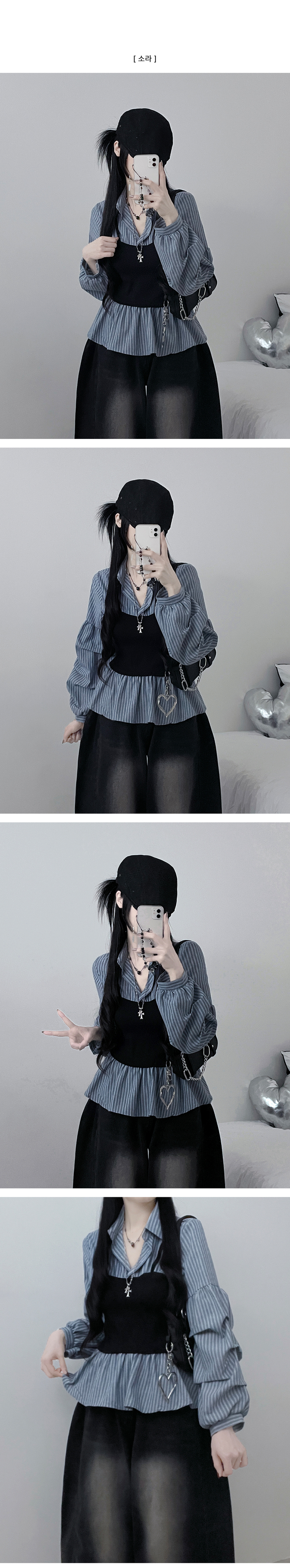 SBS30446 스트라이프뷔스티에레이어드주름핀턱셔츠남방