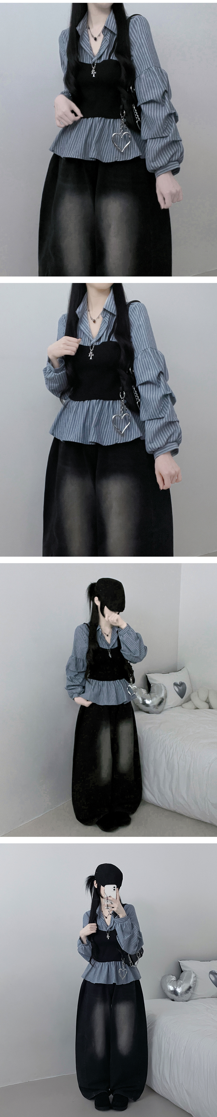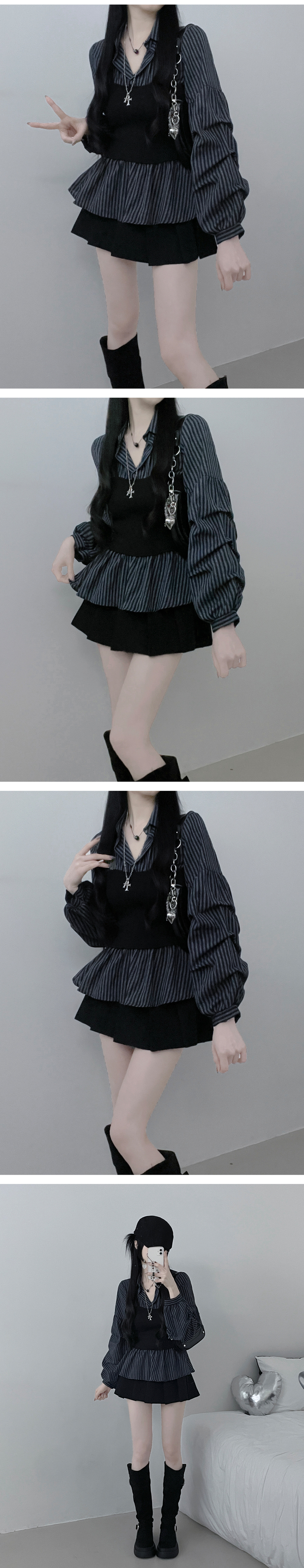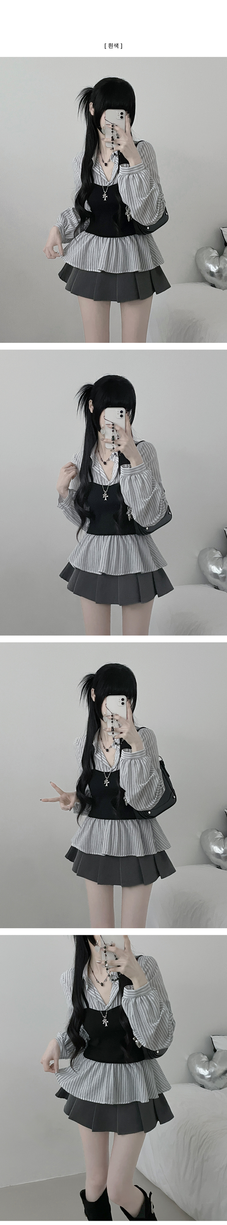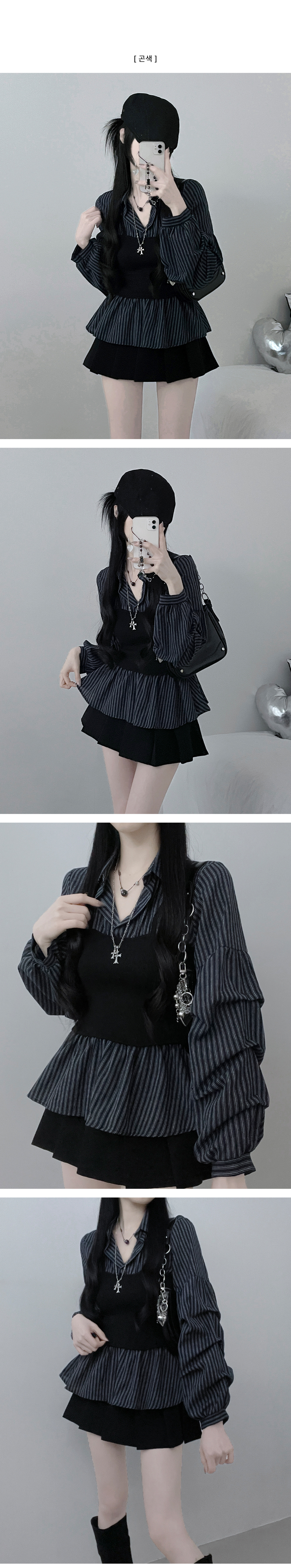 SBS30446 스트라이프뷔스티에레이어드주름핀턱셔츠남방