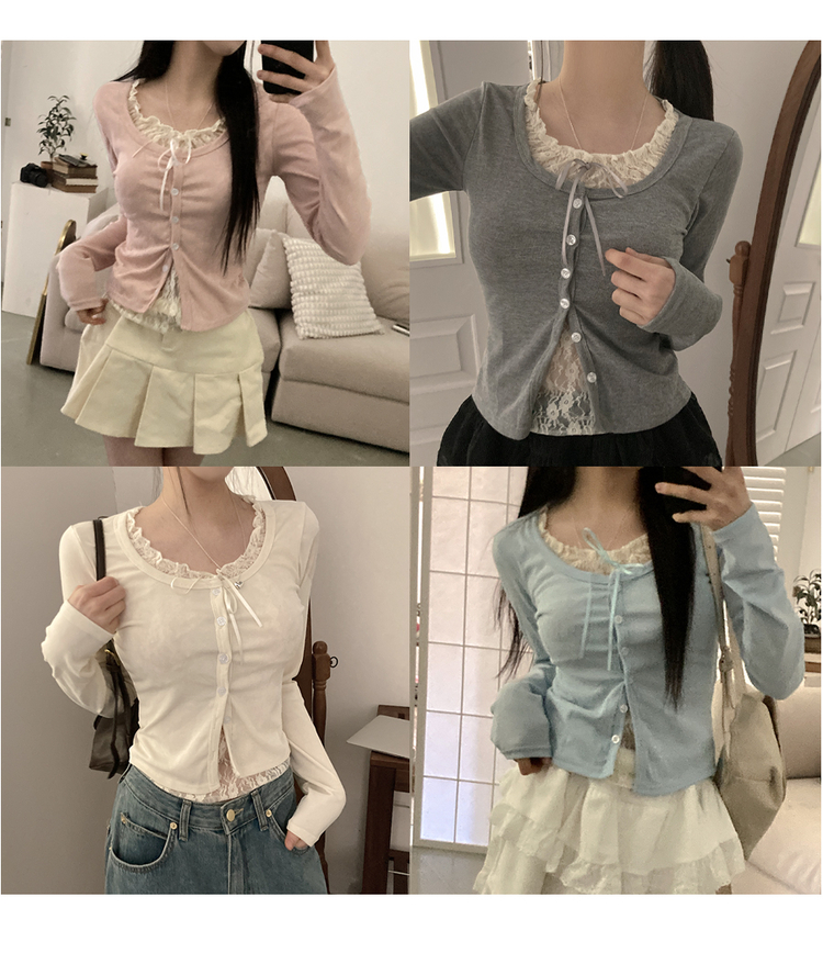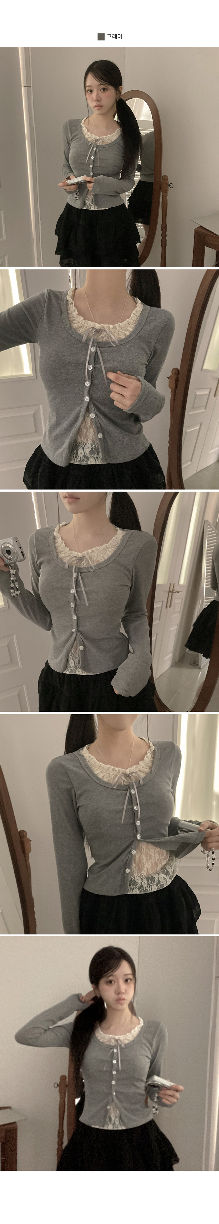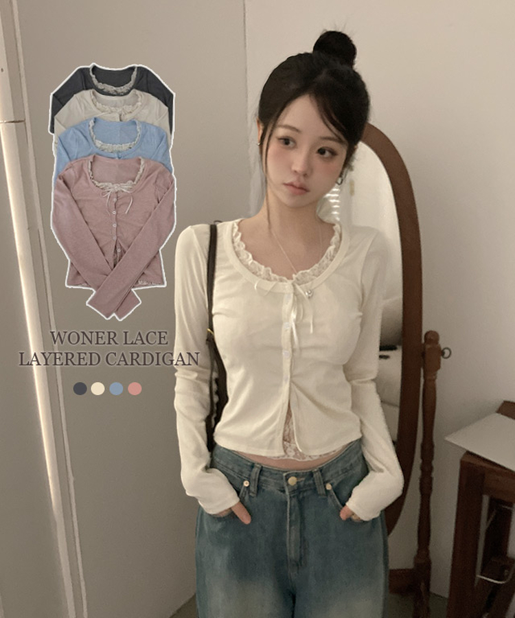 SGD30591 원더 레이스 레이어드 리본 발레코어 가디건