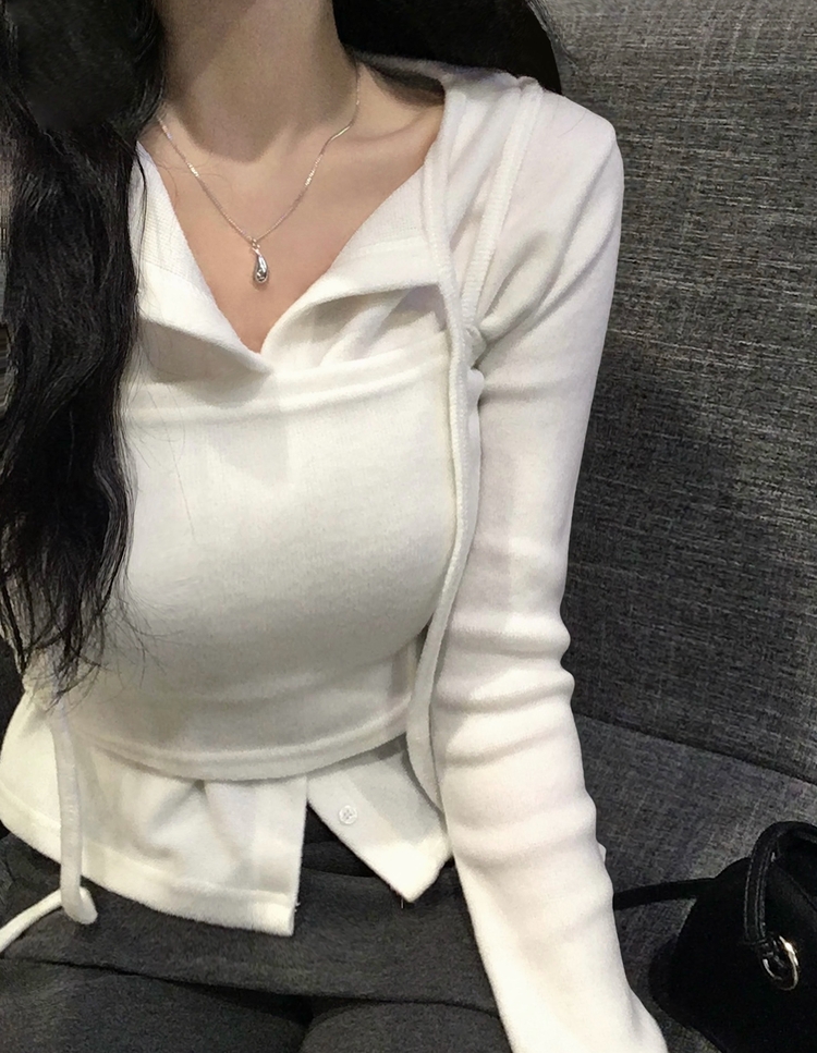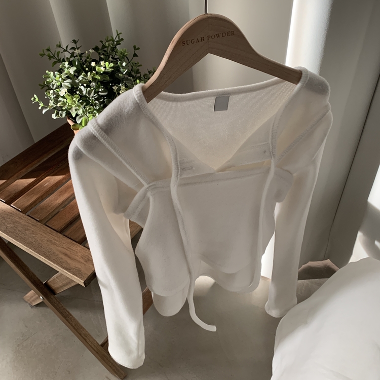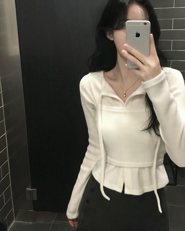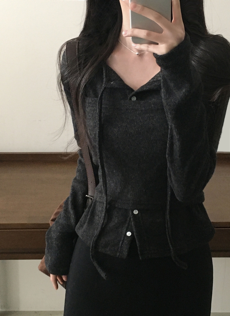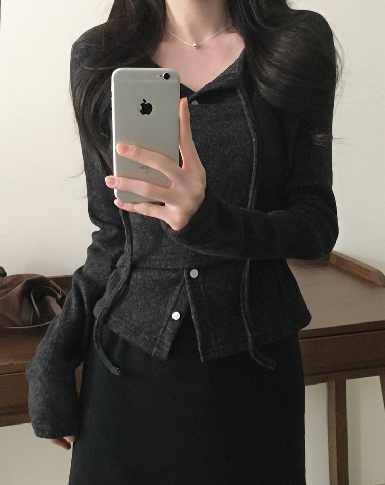 SGD30650 세컨드 기모 끈 레이어드 여리핏 니트탑 버튼 가디건 세트