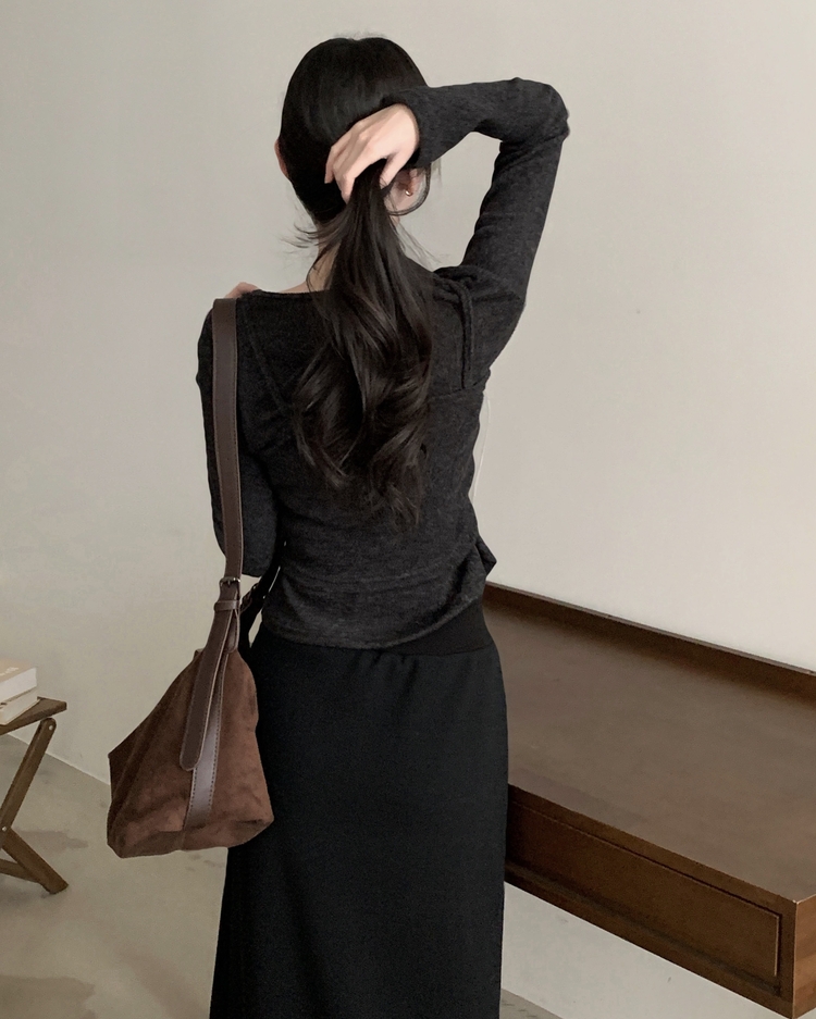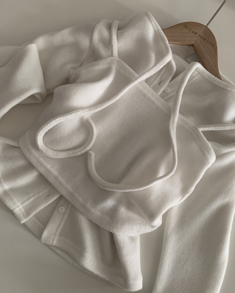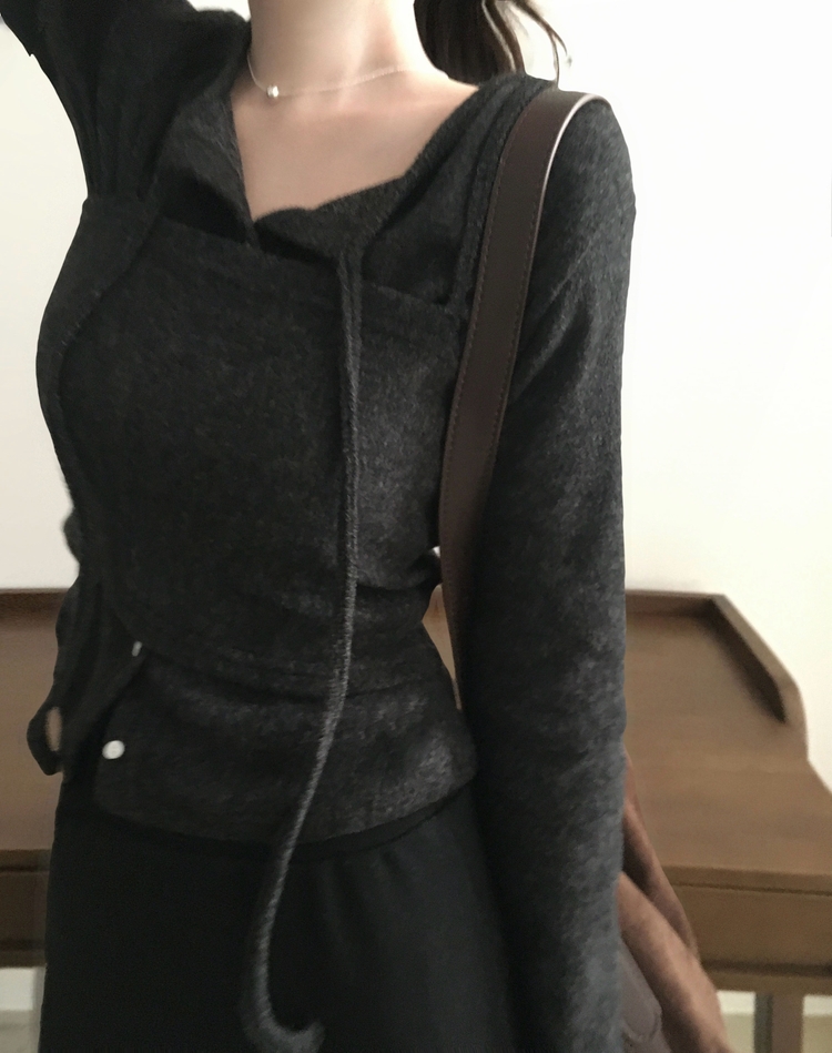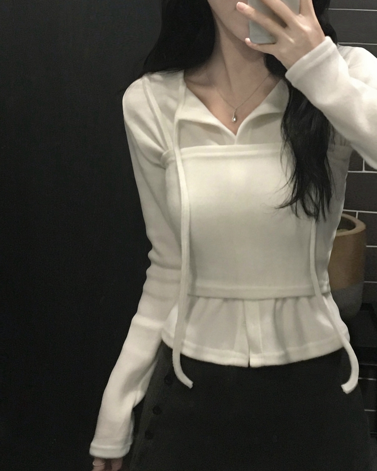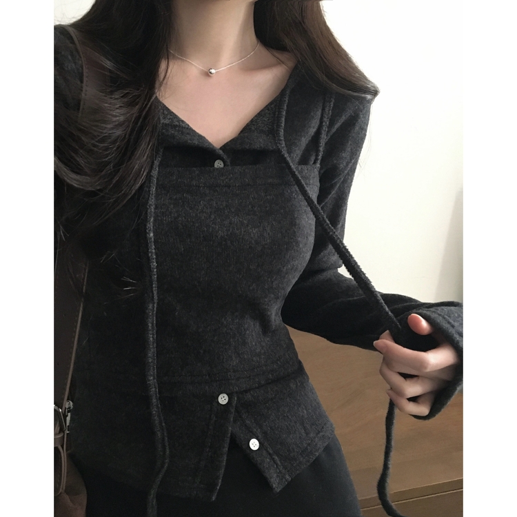 SGD30650 세컨드 기모 끈 레이어드 여리핏 니트탑 버튼 가디건 세트