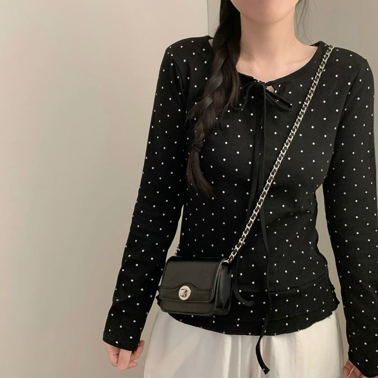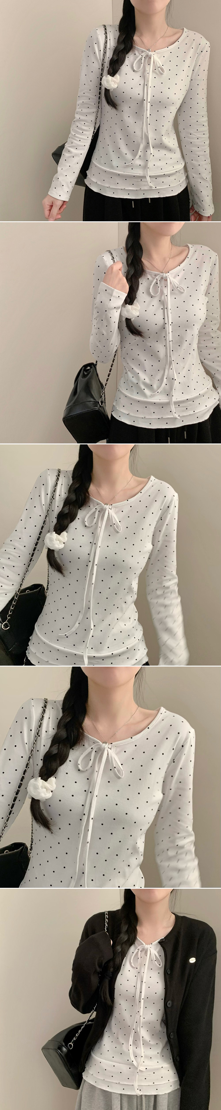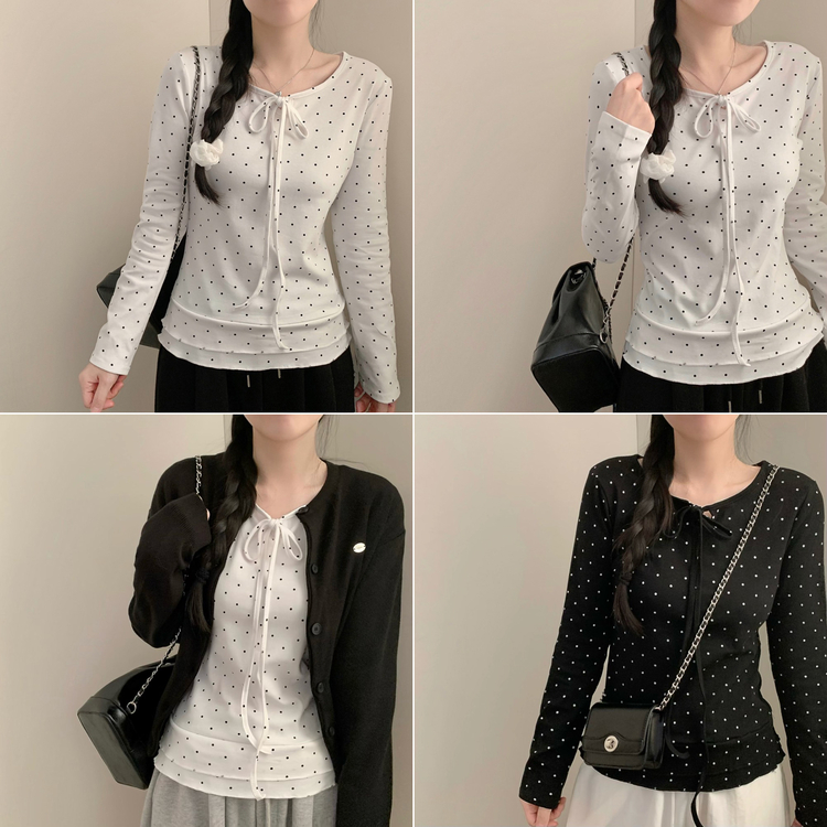 STS74799 삐삐 도트 캉캉 라운드넥 긴팔 티셔츠 롱슬리브 긴팔티 봄 봄옷 레이어드 모리걸